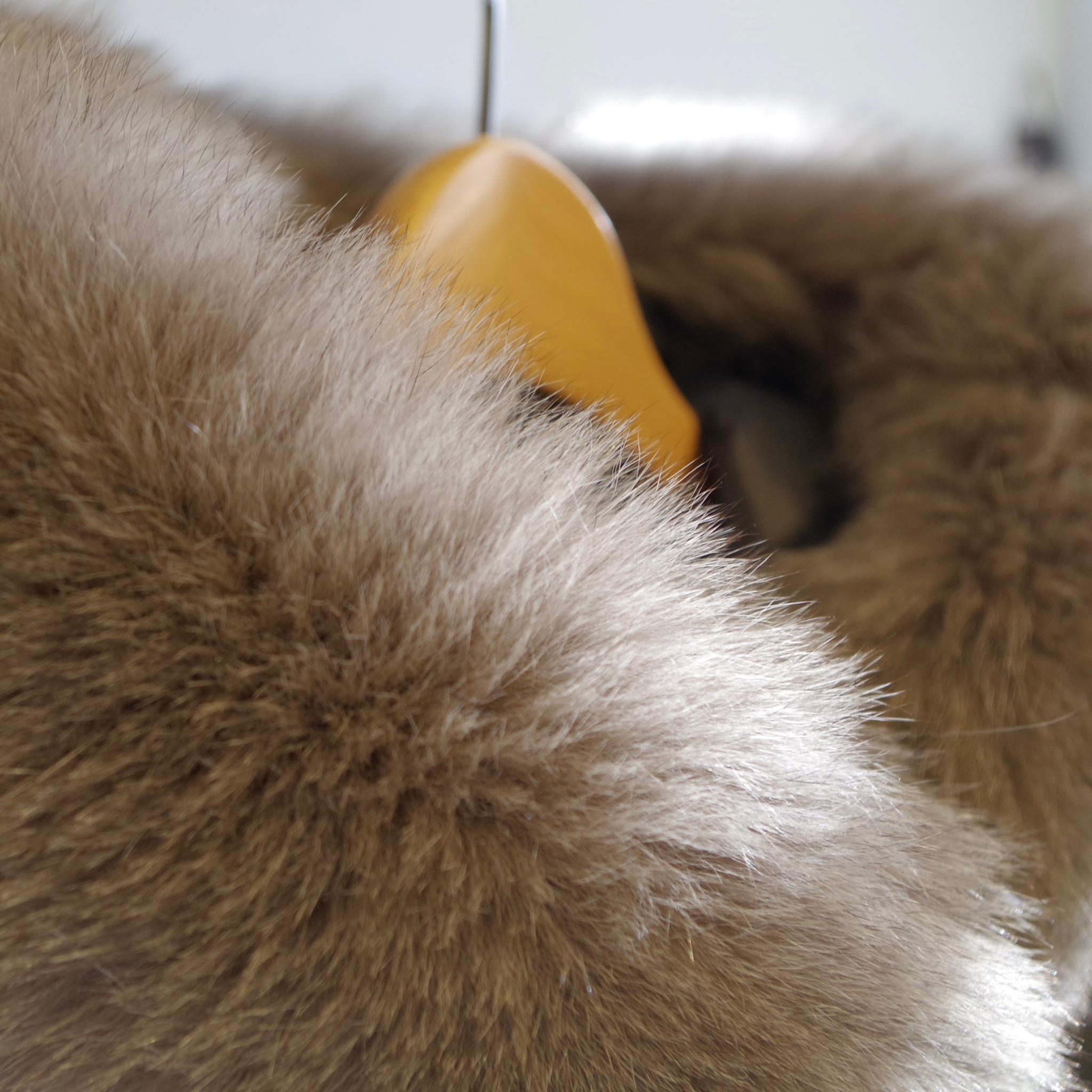 ラップコートのように包み込むアシンメトリーなデザイン、左身頃だけに並ぶミリタリーテイストな4つのループボタン、着ぶくれ感を抑えたスタイリッシュなAラインシルエット、首元を温かく包み込んでくれるラグジュアリー感漂うFOXファーはそのままに、表素材により耐久性が高く上品なマット感のポリエステル素材を使用。