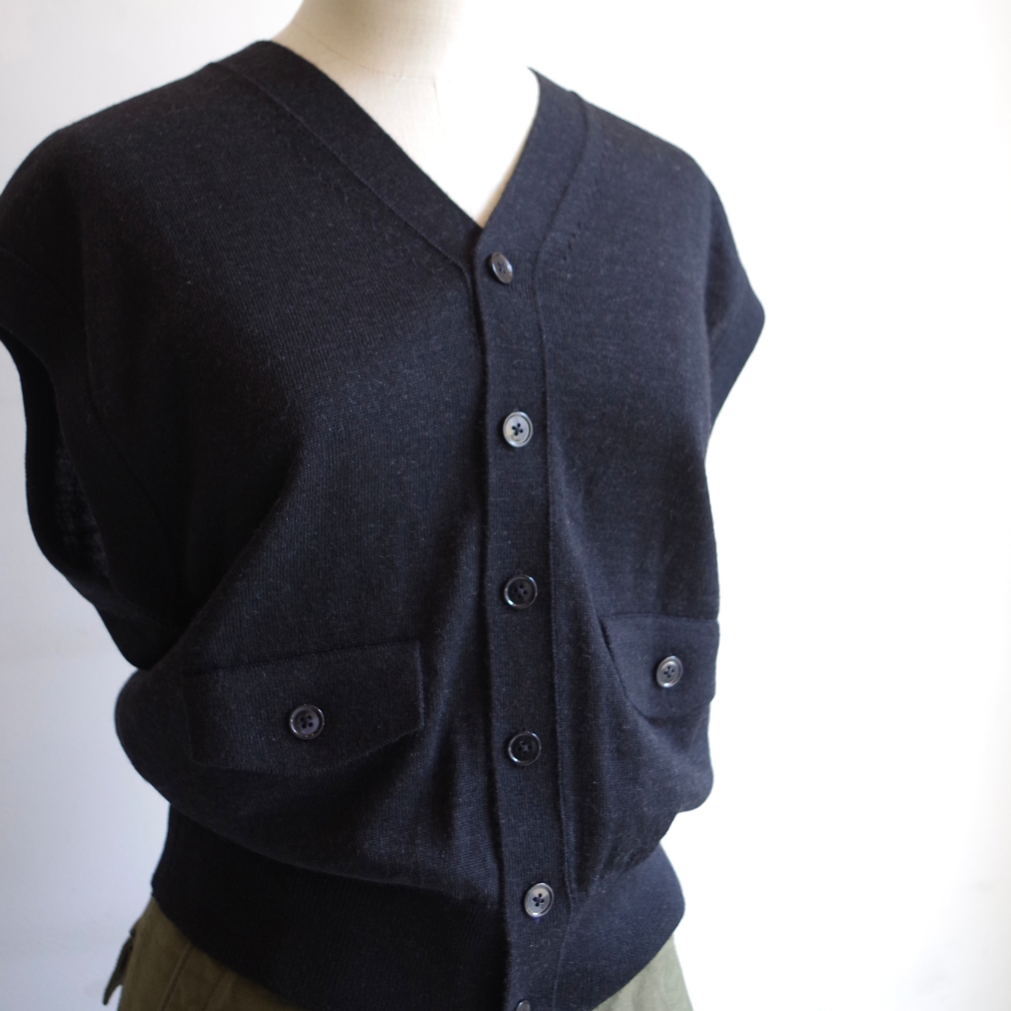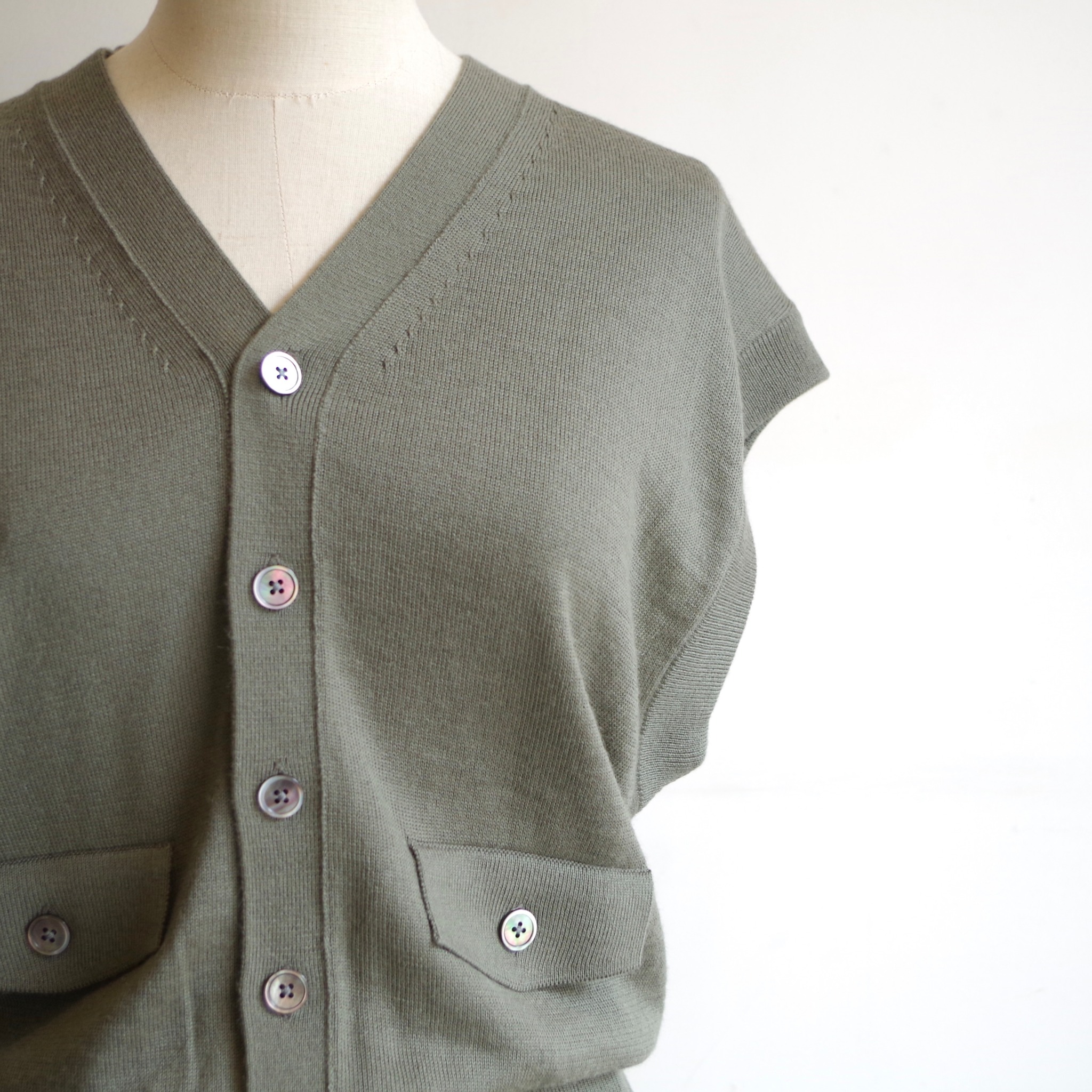 ドライタッチな風合いのウール梳毛でおつくりしたVネックニットベスト。