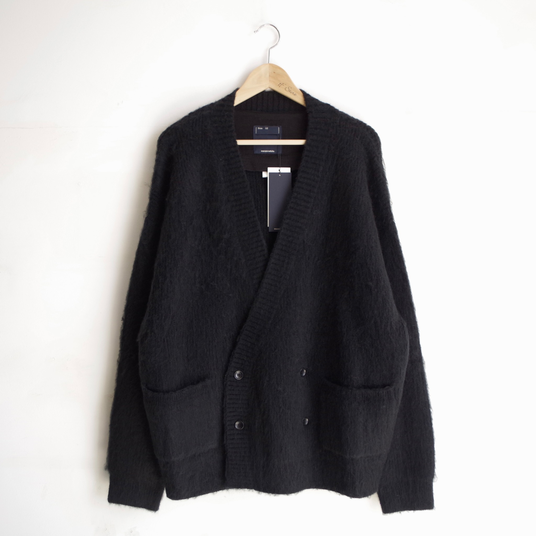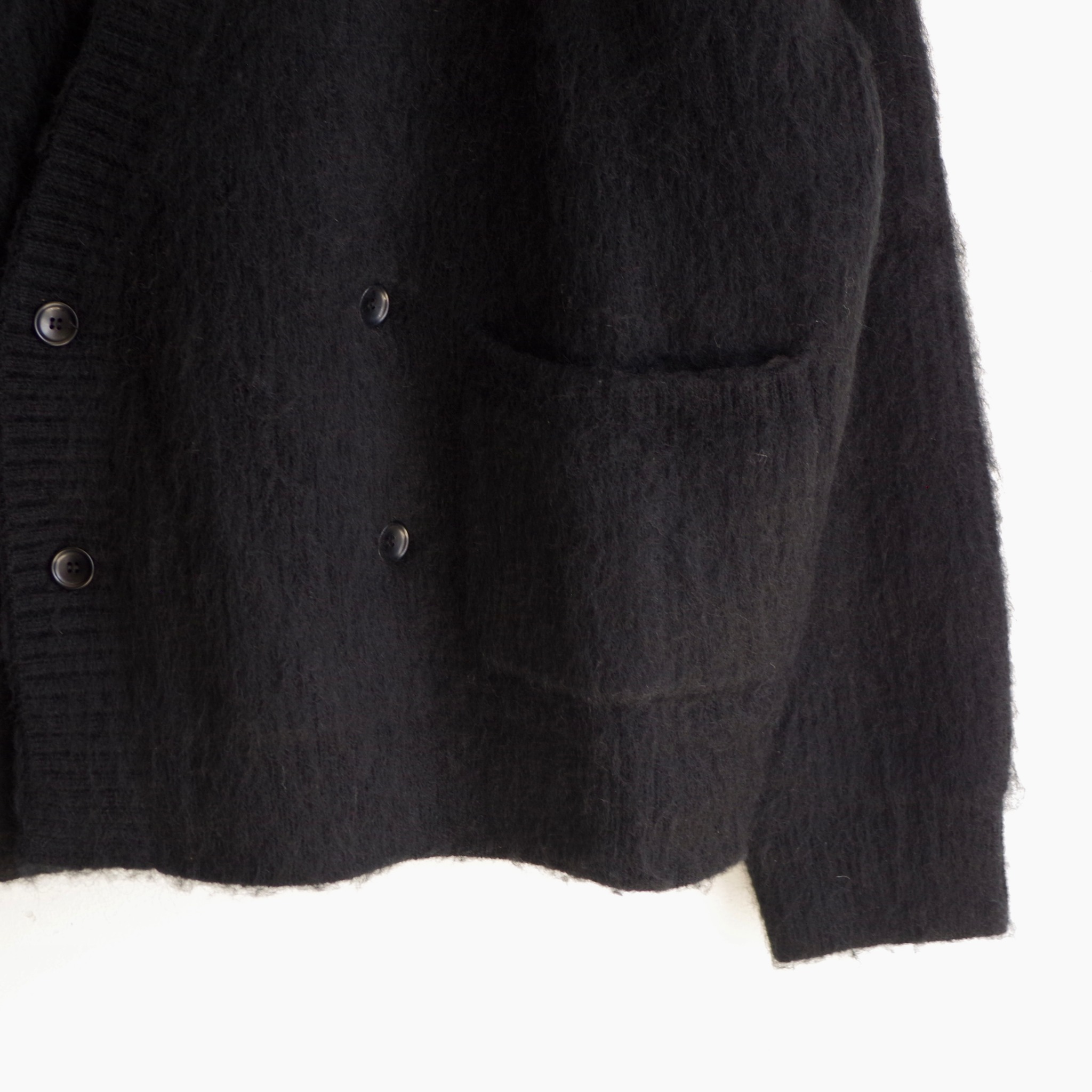 ダブルフロントデザインを採用したモヘアニットカーディガン。