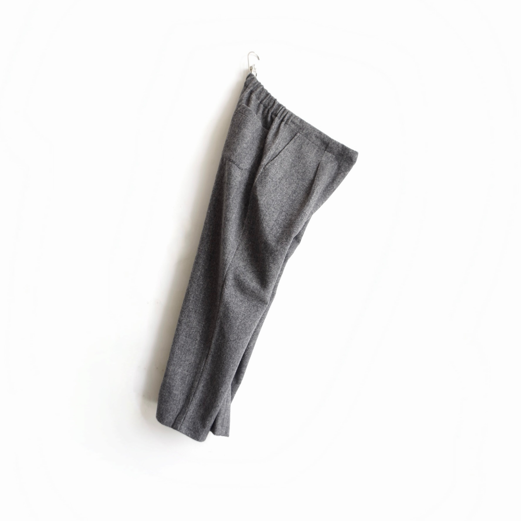 オーストラリア・ジロン地方で採れる上質なジロンラムを贅沢に使用し、しっかりと縮絨をかけたメルトン生地で仕立てたイージーパンツ。