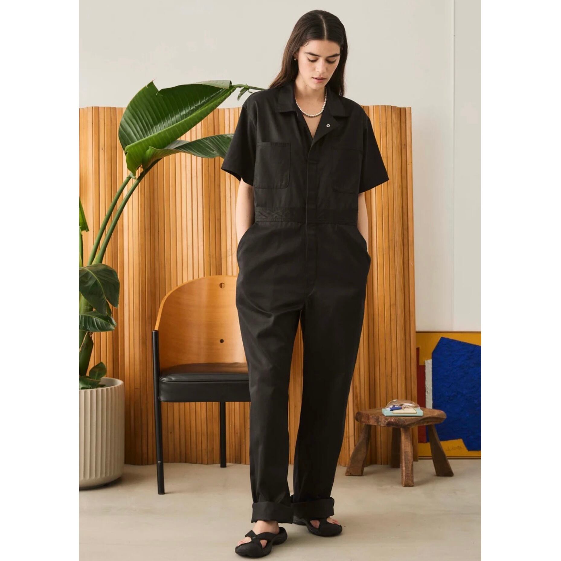 ジャンプスーツの魅力はなんと言っても一枚でスタイルが決まること。