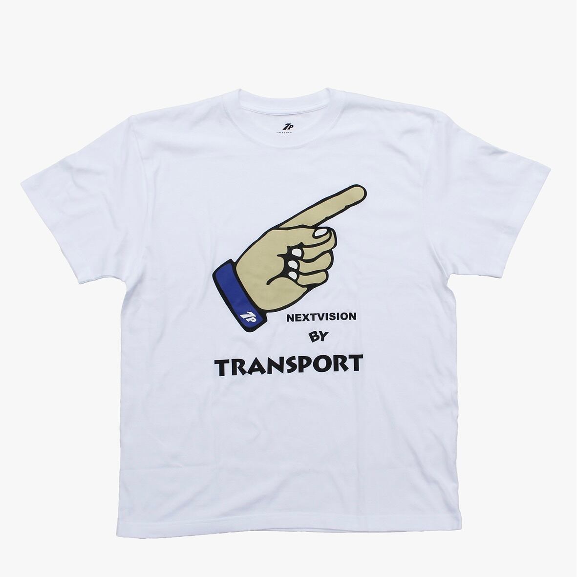 フロントに大きくハンドサインのプリントが施されたTシャツ。