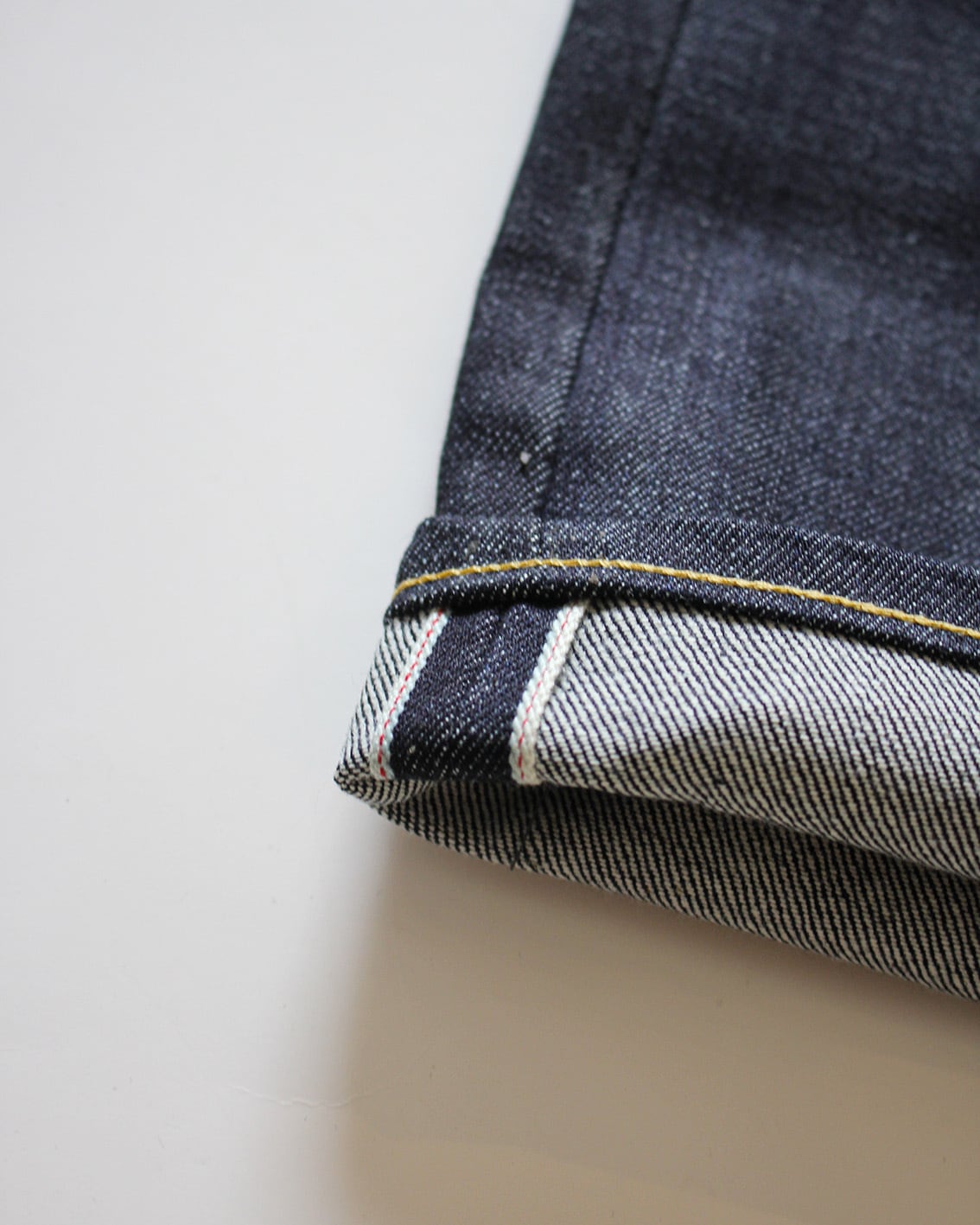 14オンスのセルビッチデニムを使用したデニムパンツ。