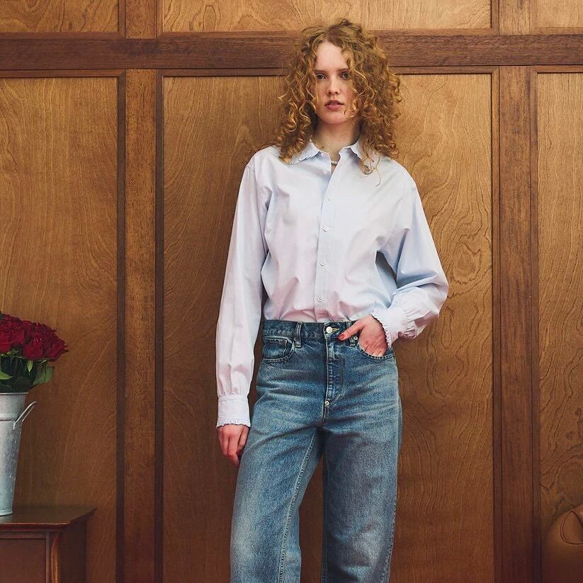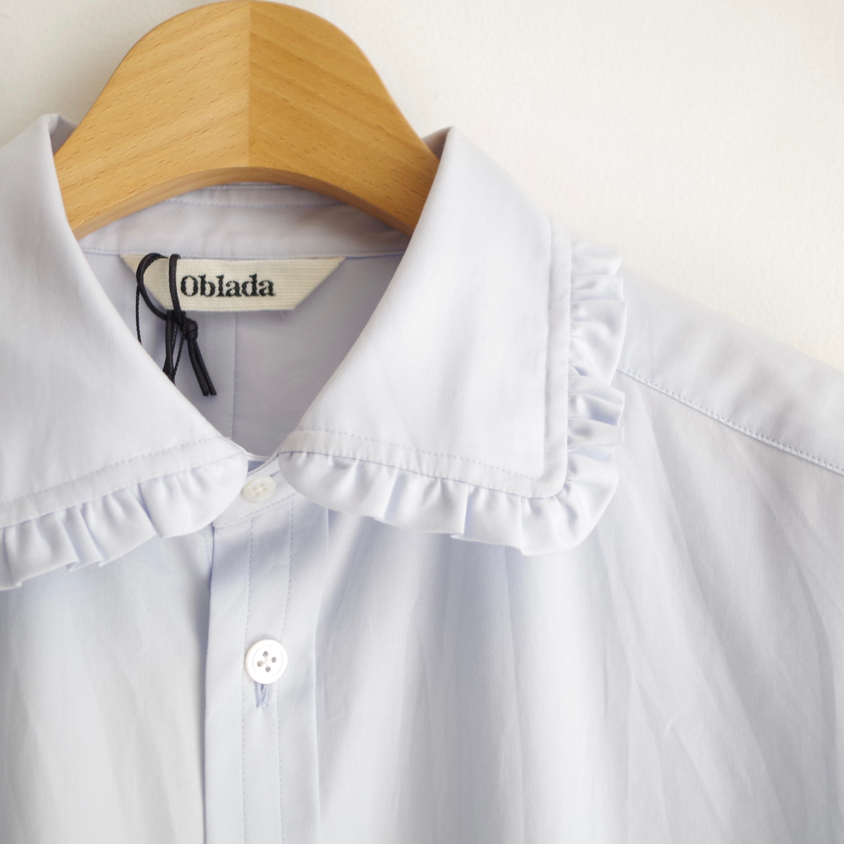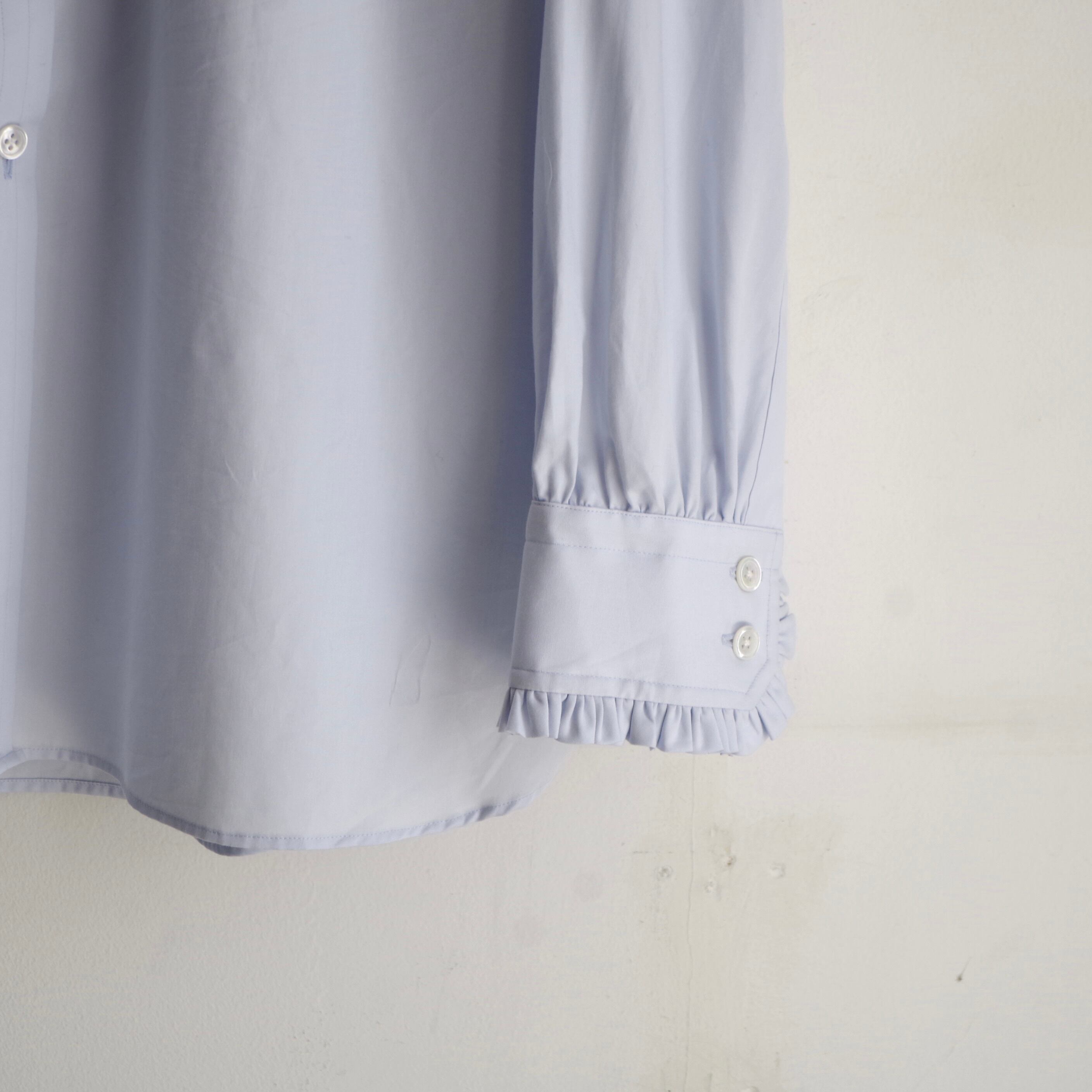 襟と袖口のフリルが特徴のGLANCE SHIRT 。