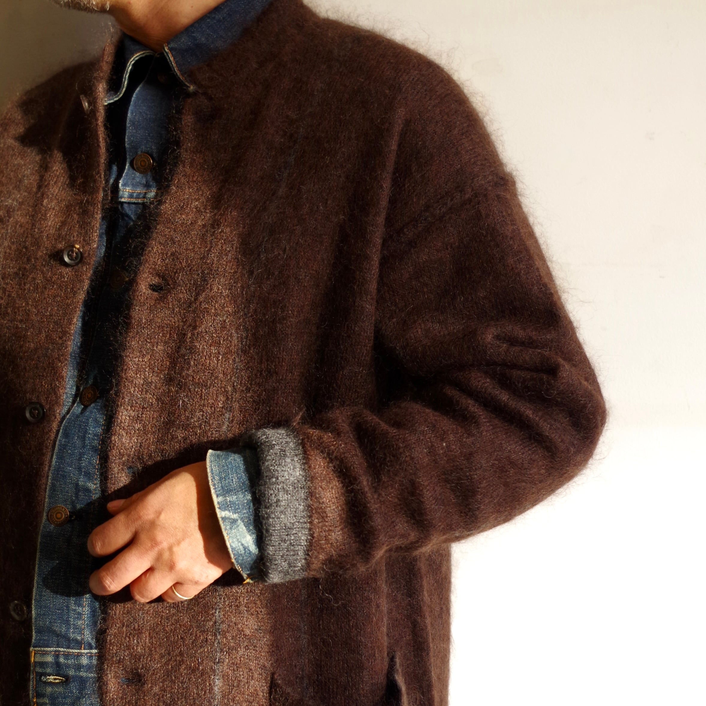 毛足の⻑いキッドモヘアを使用することで、上品で適度なボリューム感、着心地も◎