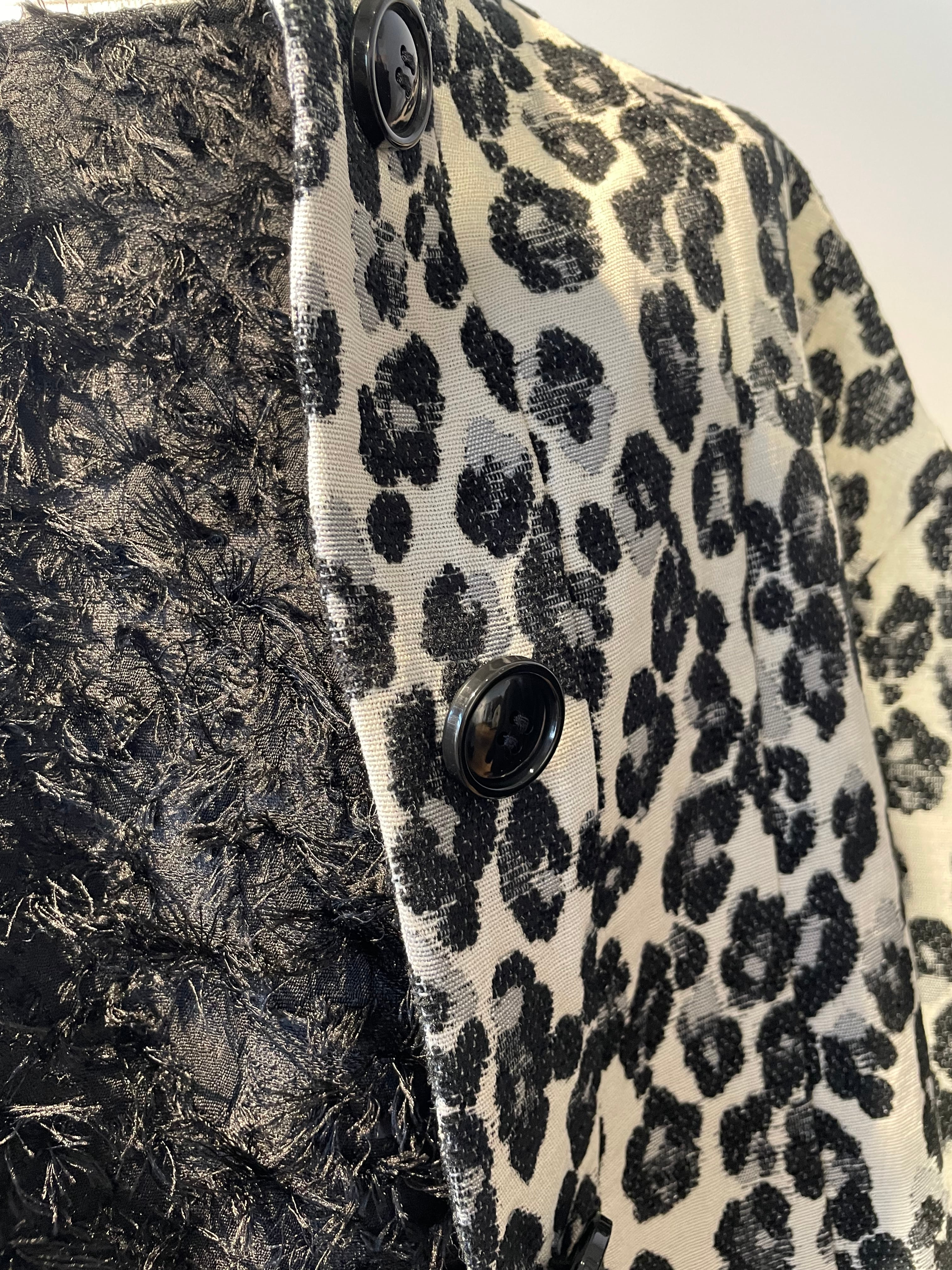 上質な生地を使用した、立体感のあるレオパード柄ジャカード織。