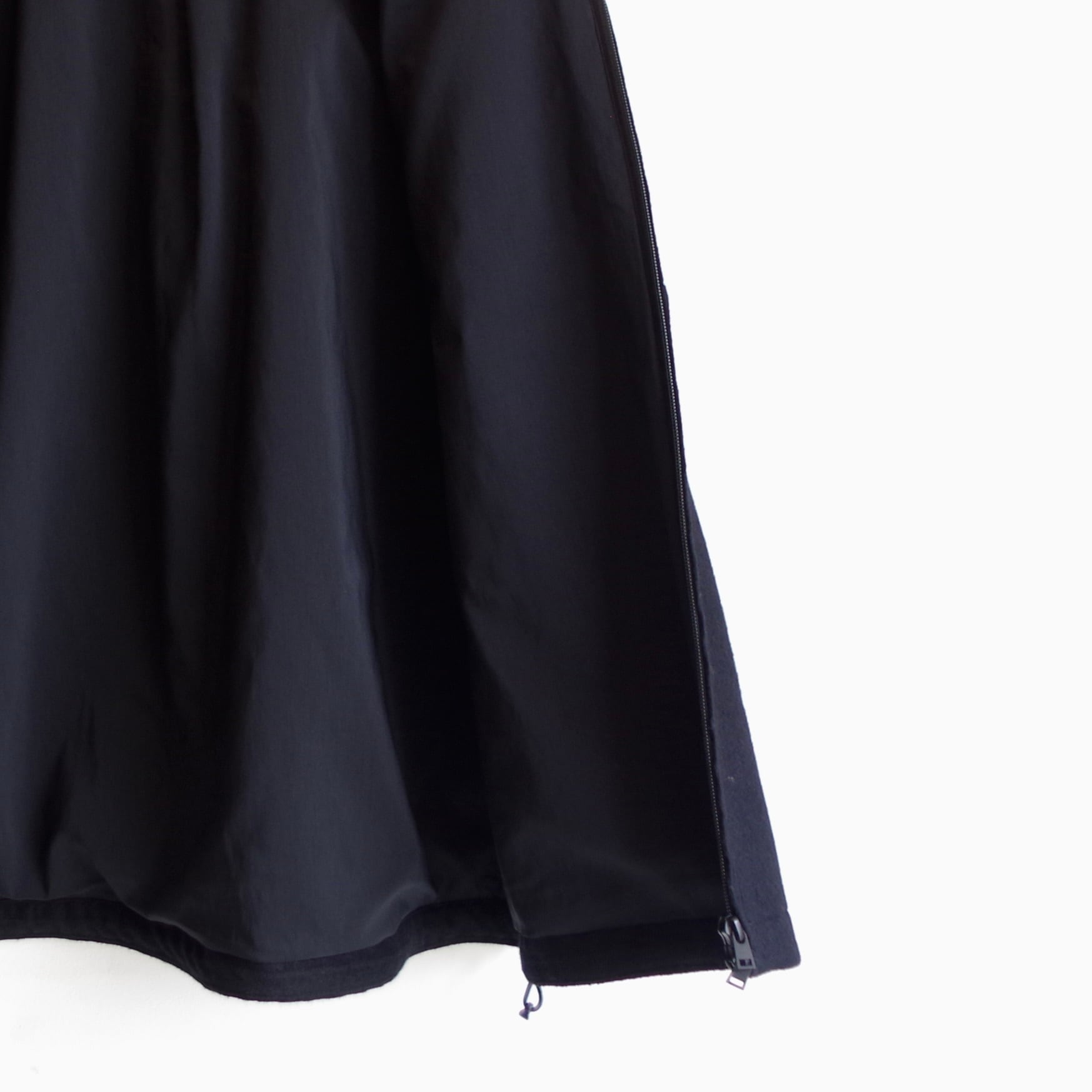 裾のドローコードでシルエットを変えたり、中央の切り替えまでジップを下げてプルオーバー風に着てみたり。
