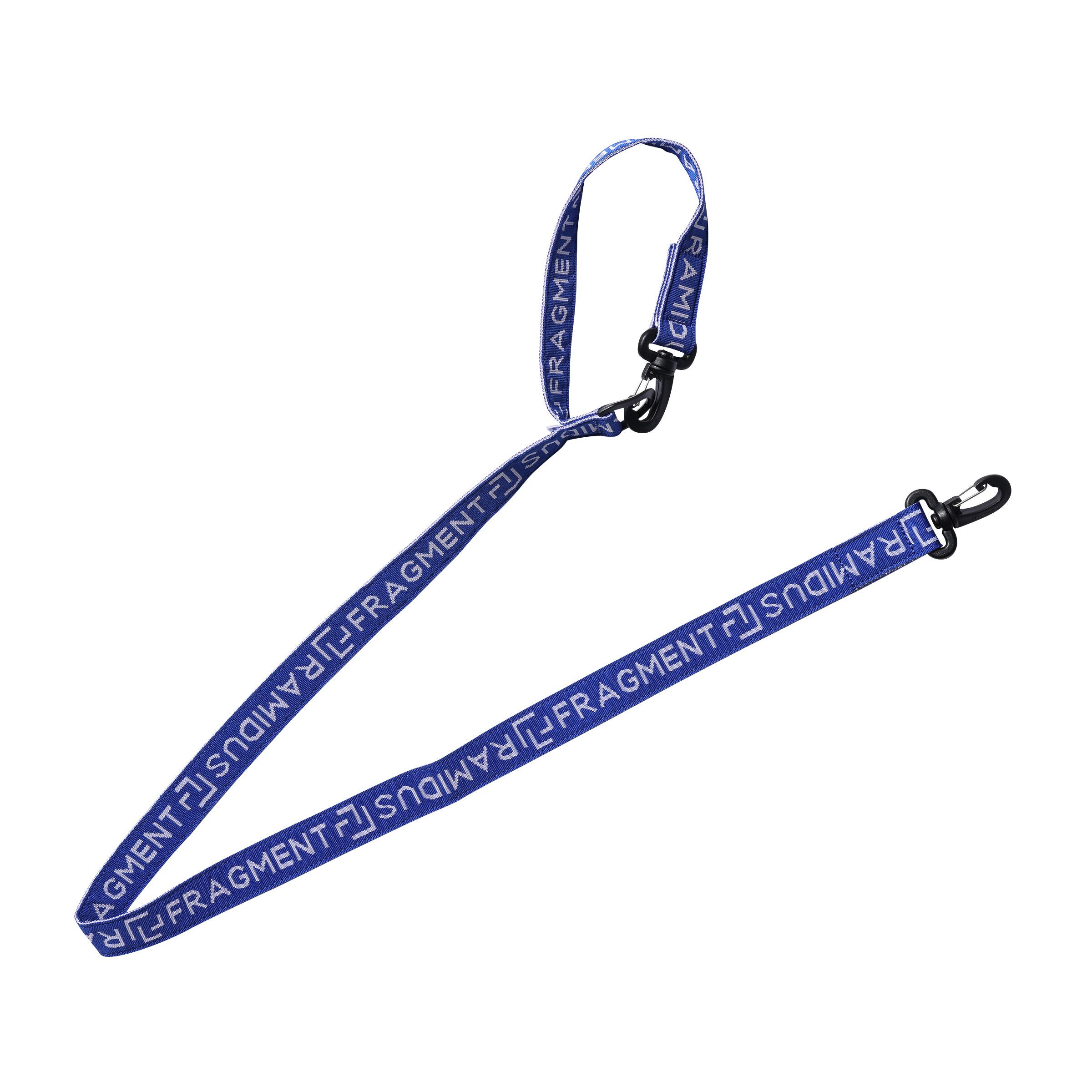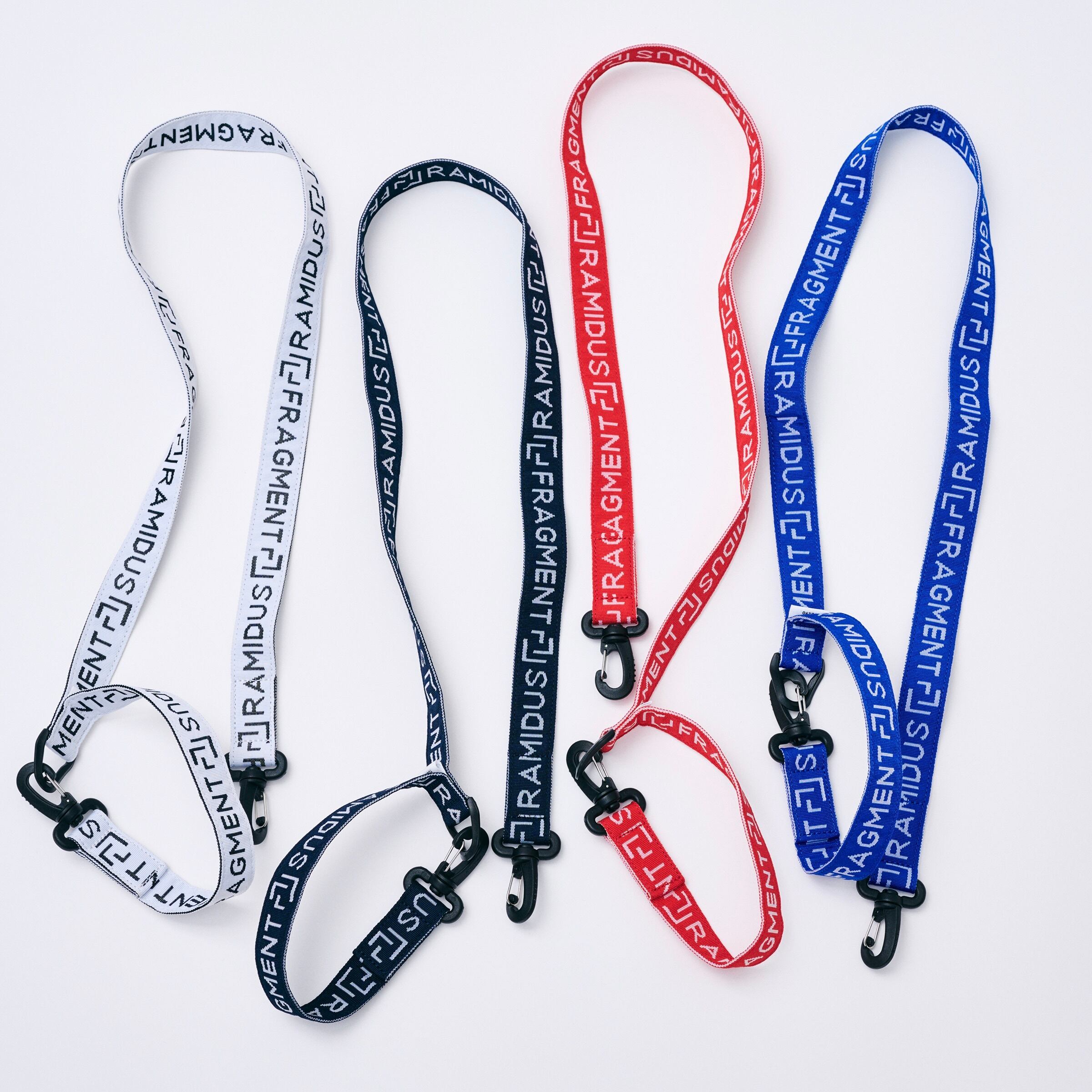 fragment design x RAMIDUS コラボレーションコレク ションに使用されているアイコニックなロゴ入りジャ ガード織りのテープをモチーフにした犬用のリード。