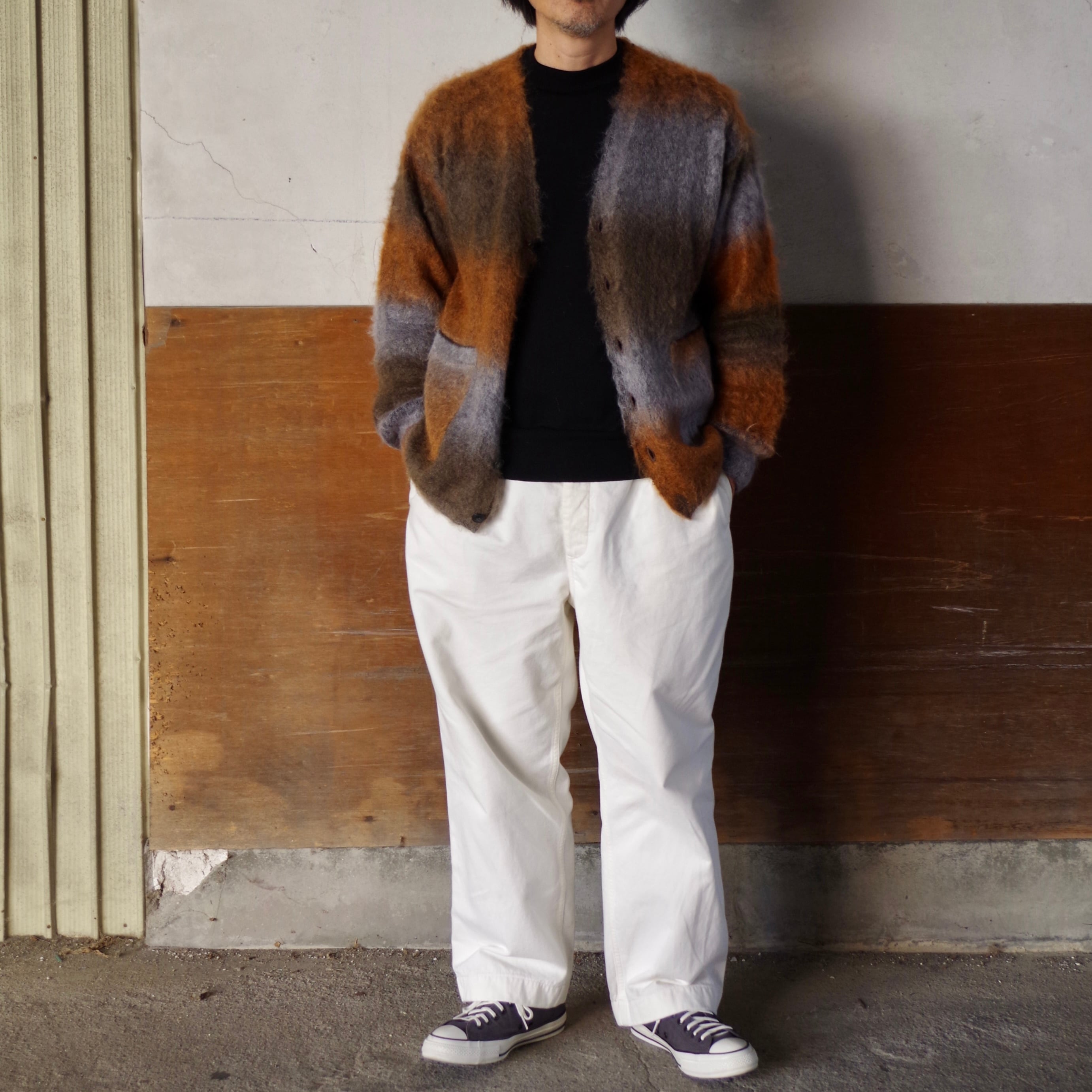 1点ごとに異なる配色が魅力の、唯一無二のカーディガンです。