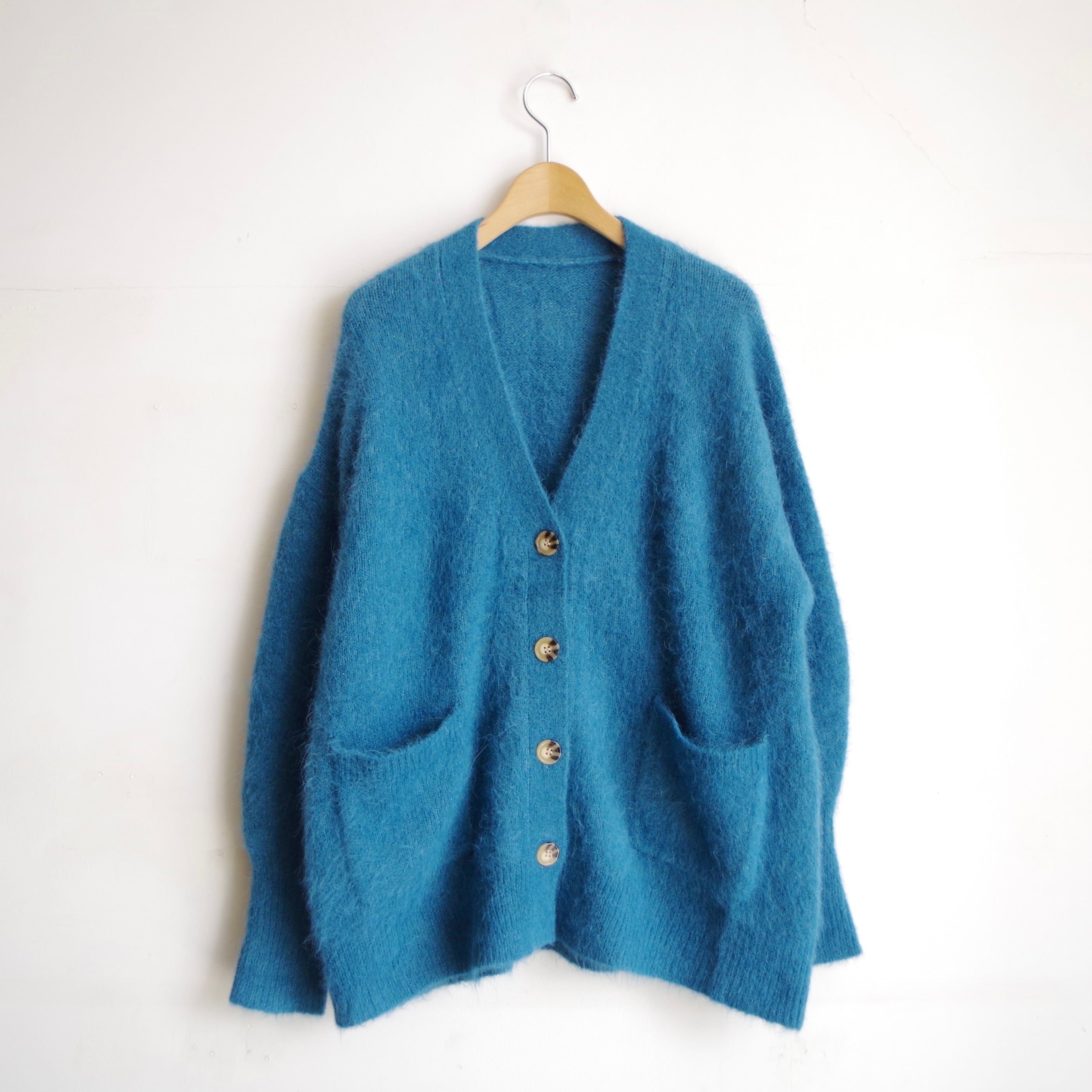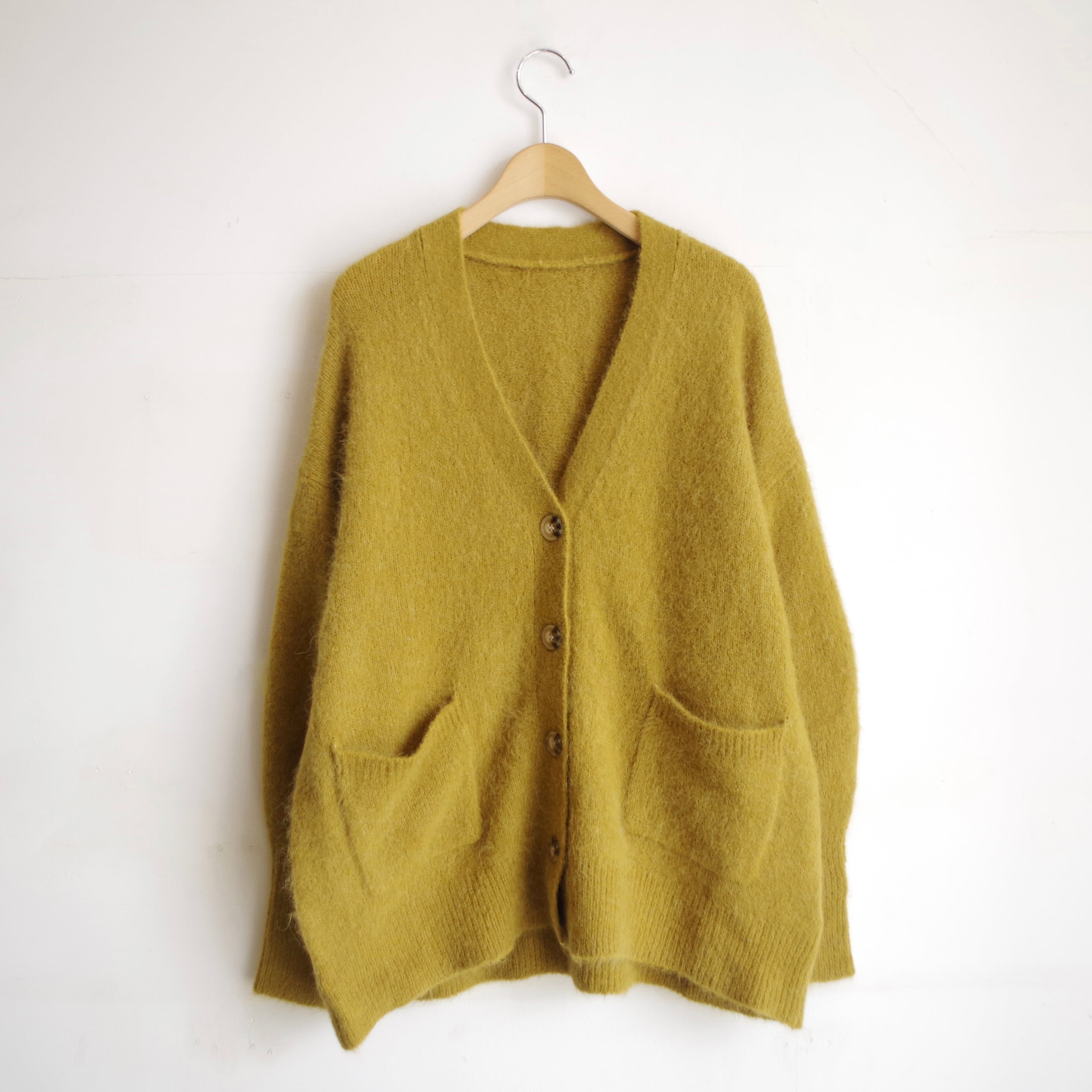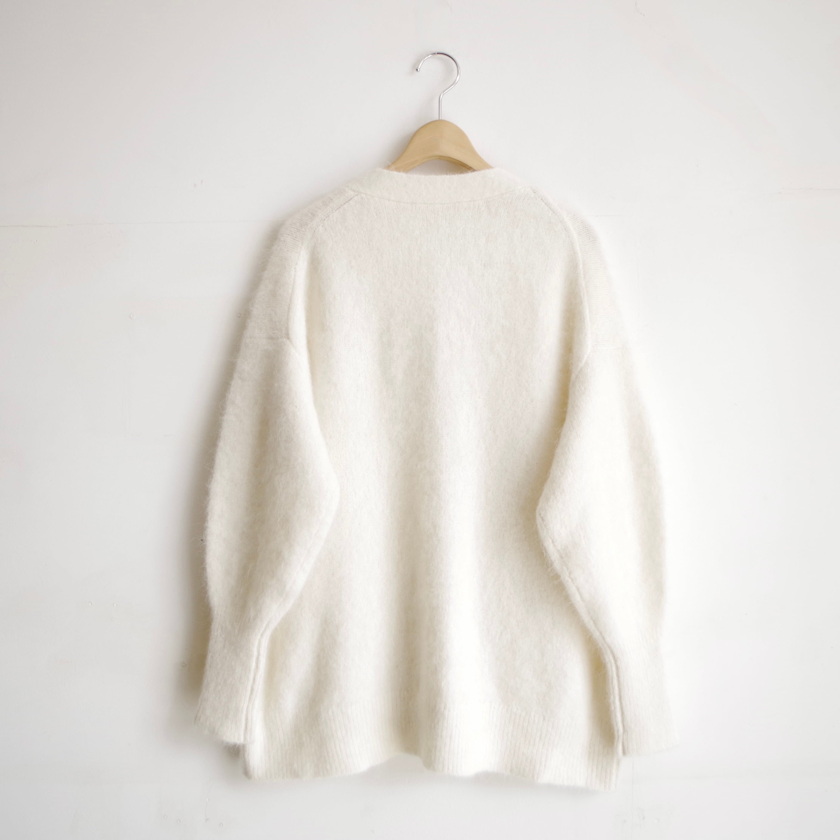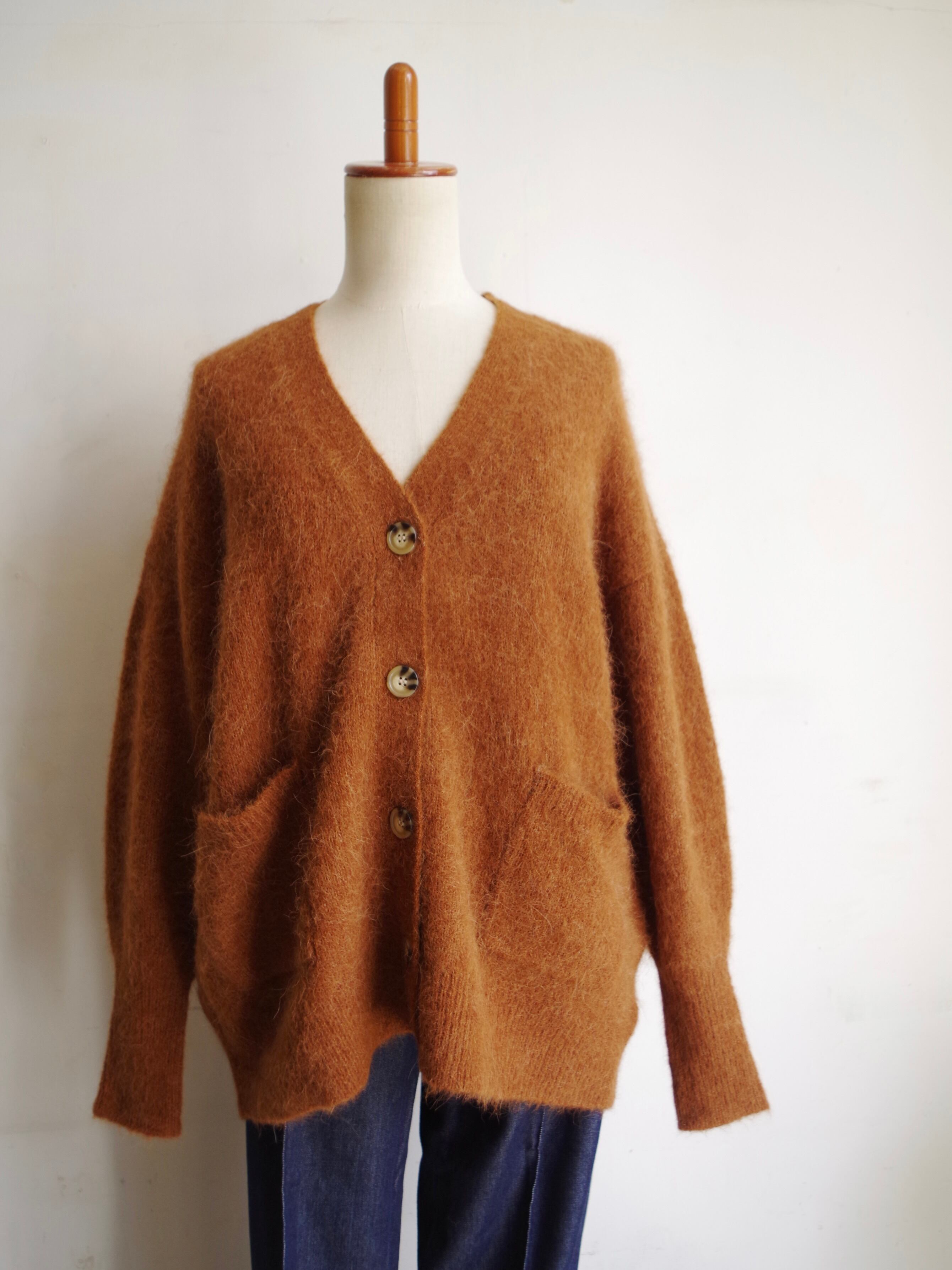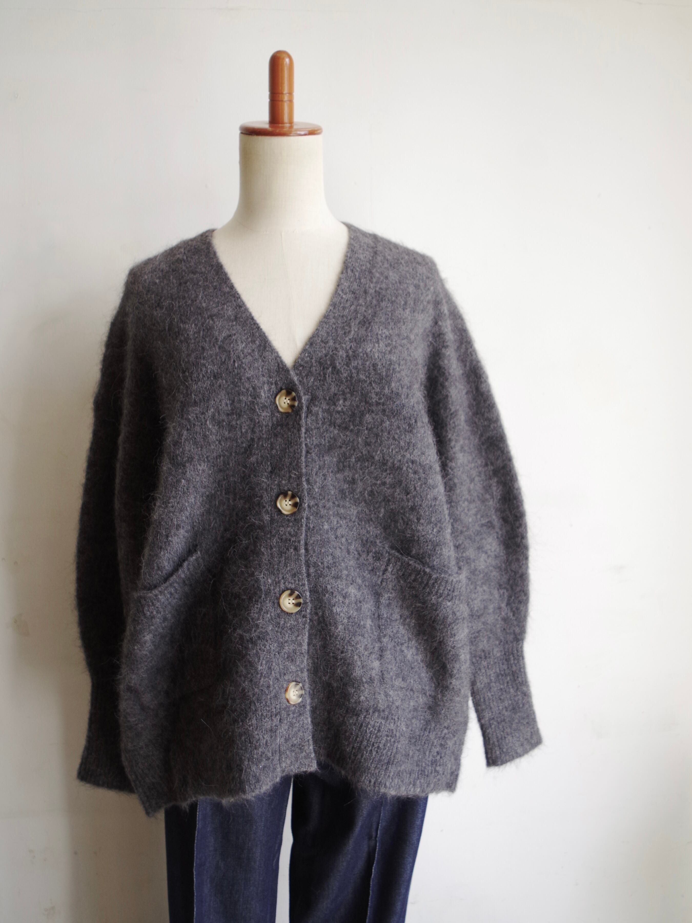 ふんわりと柔らかい肌触りが心地よい、アルパカ混のVネックカーディガン。