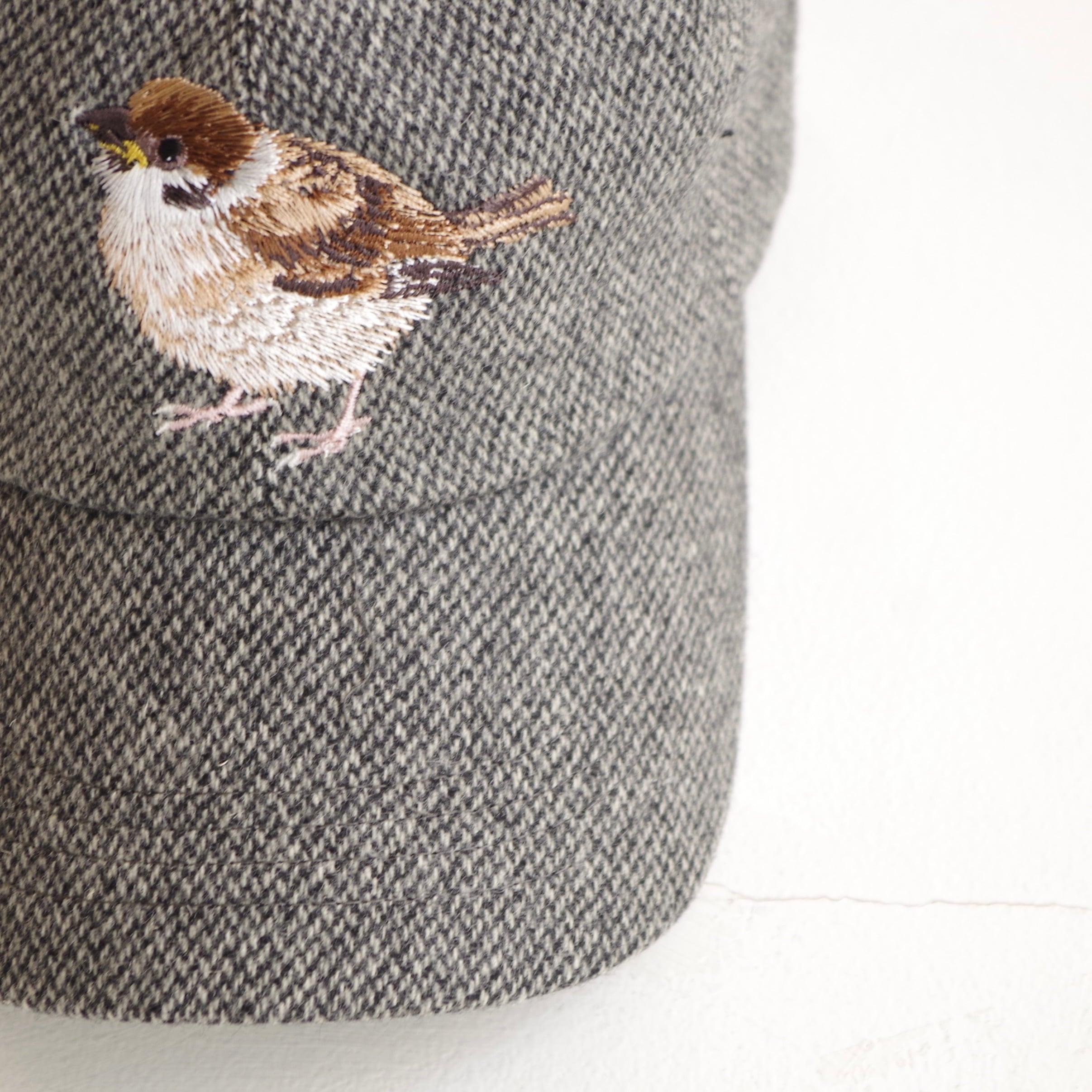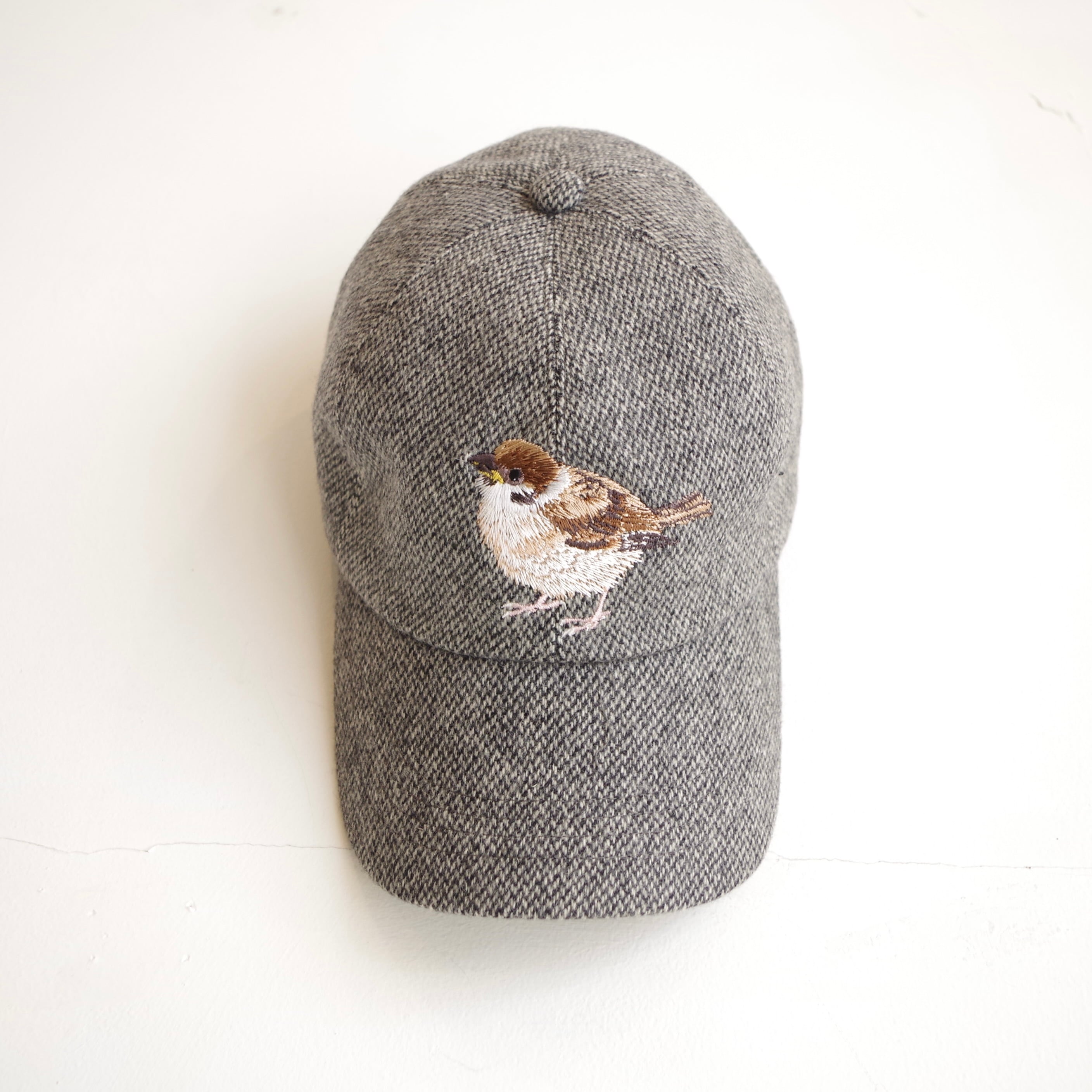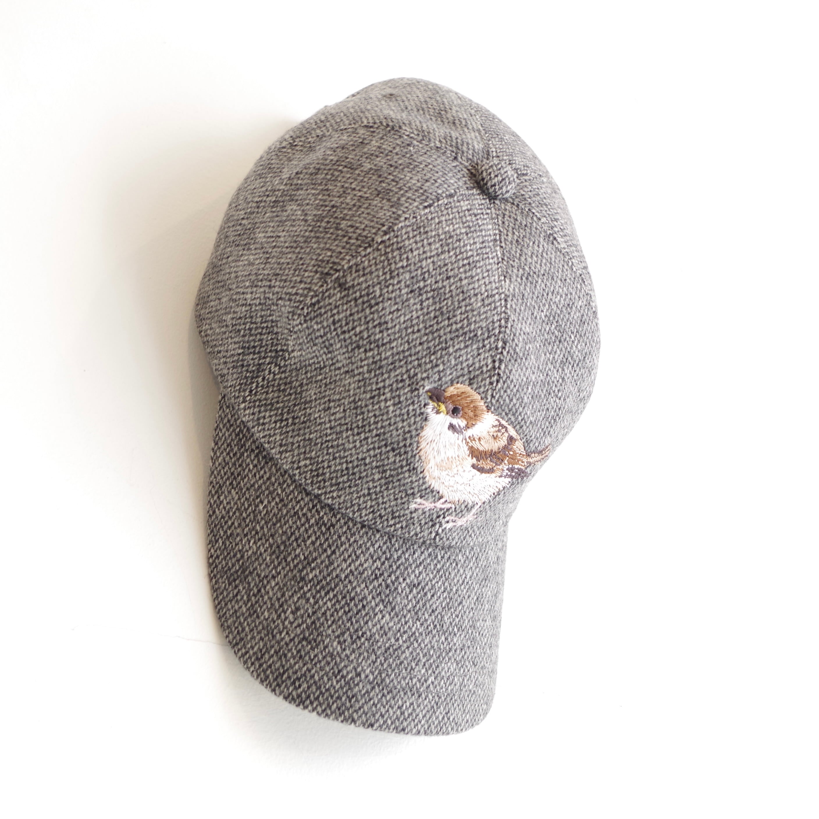 まるでプリントかのようなリアルな雀刺繍が上品で優し気な印象のベースボールキャッ プ。
