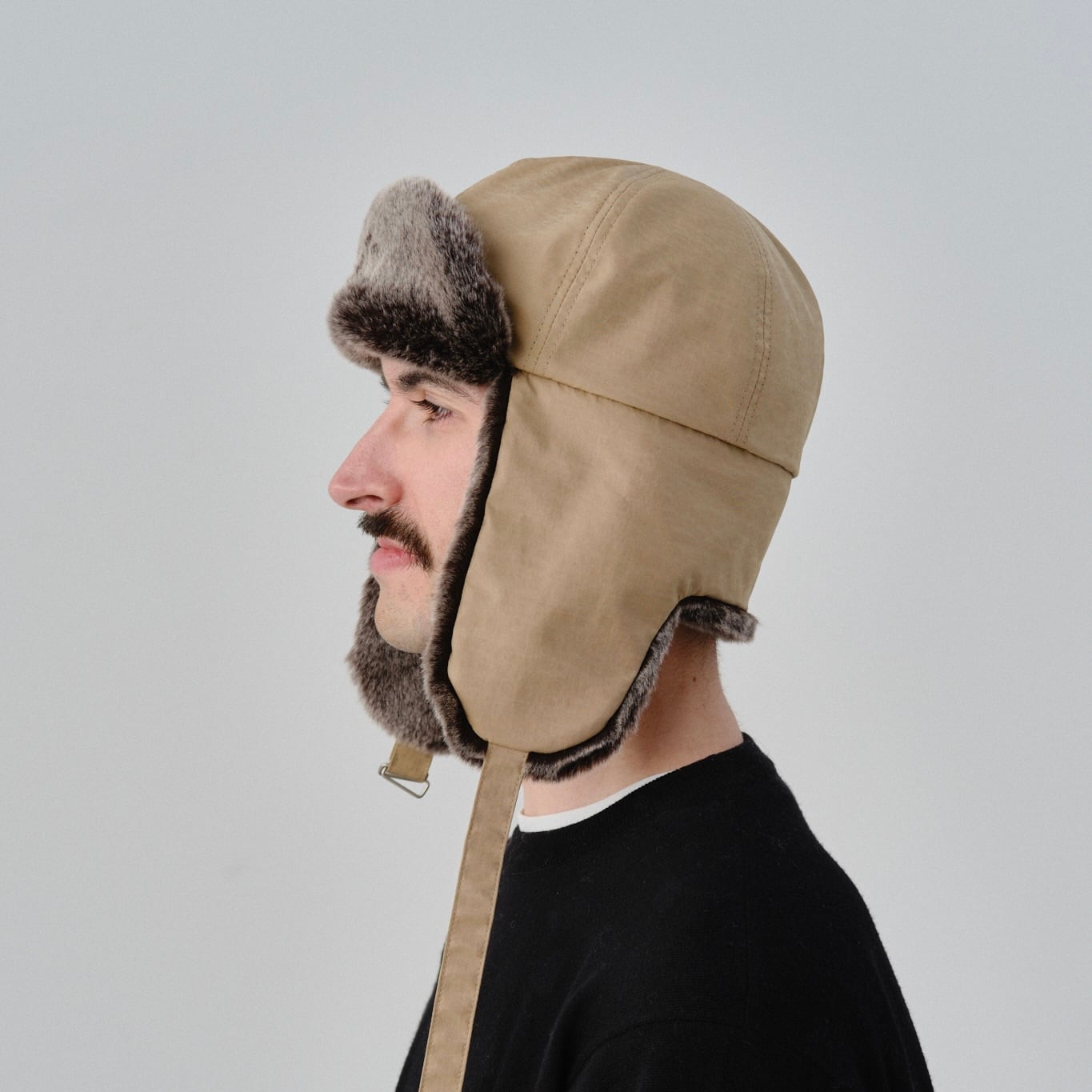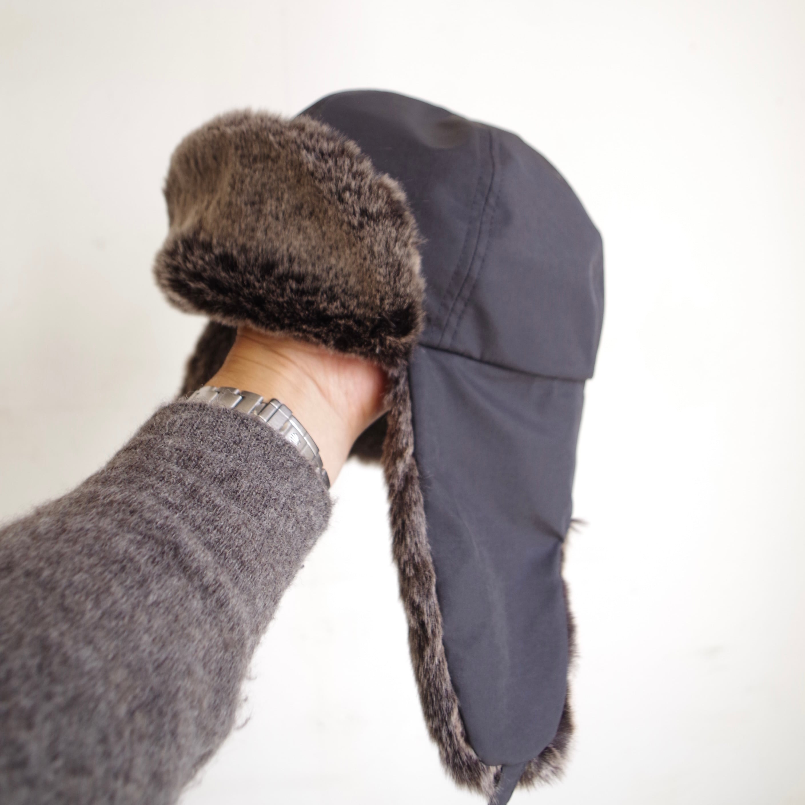 ボリュームのある重厚なファーが上品なフライトキャップ。