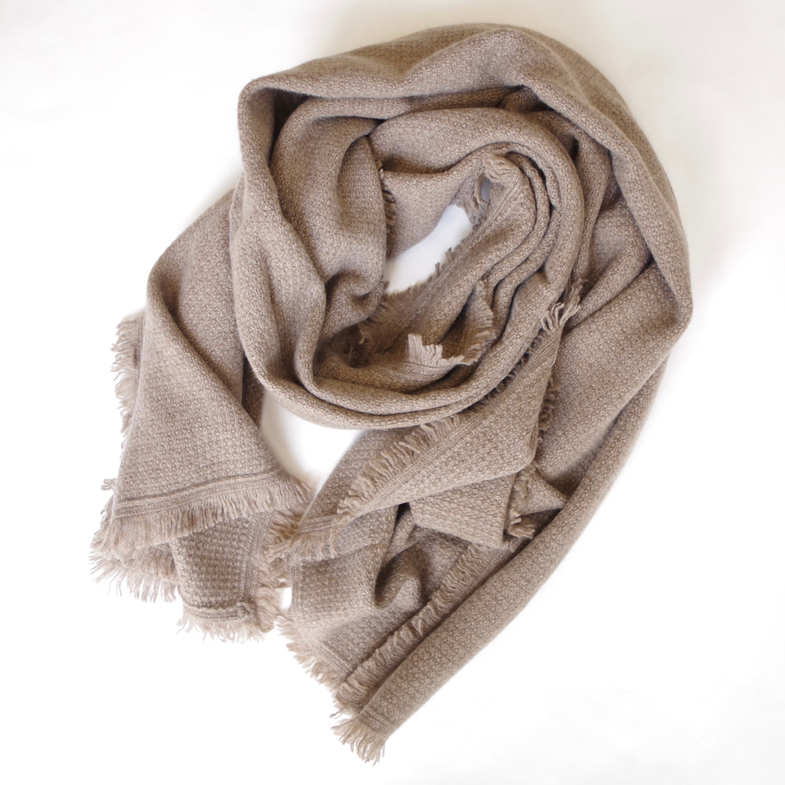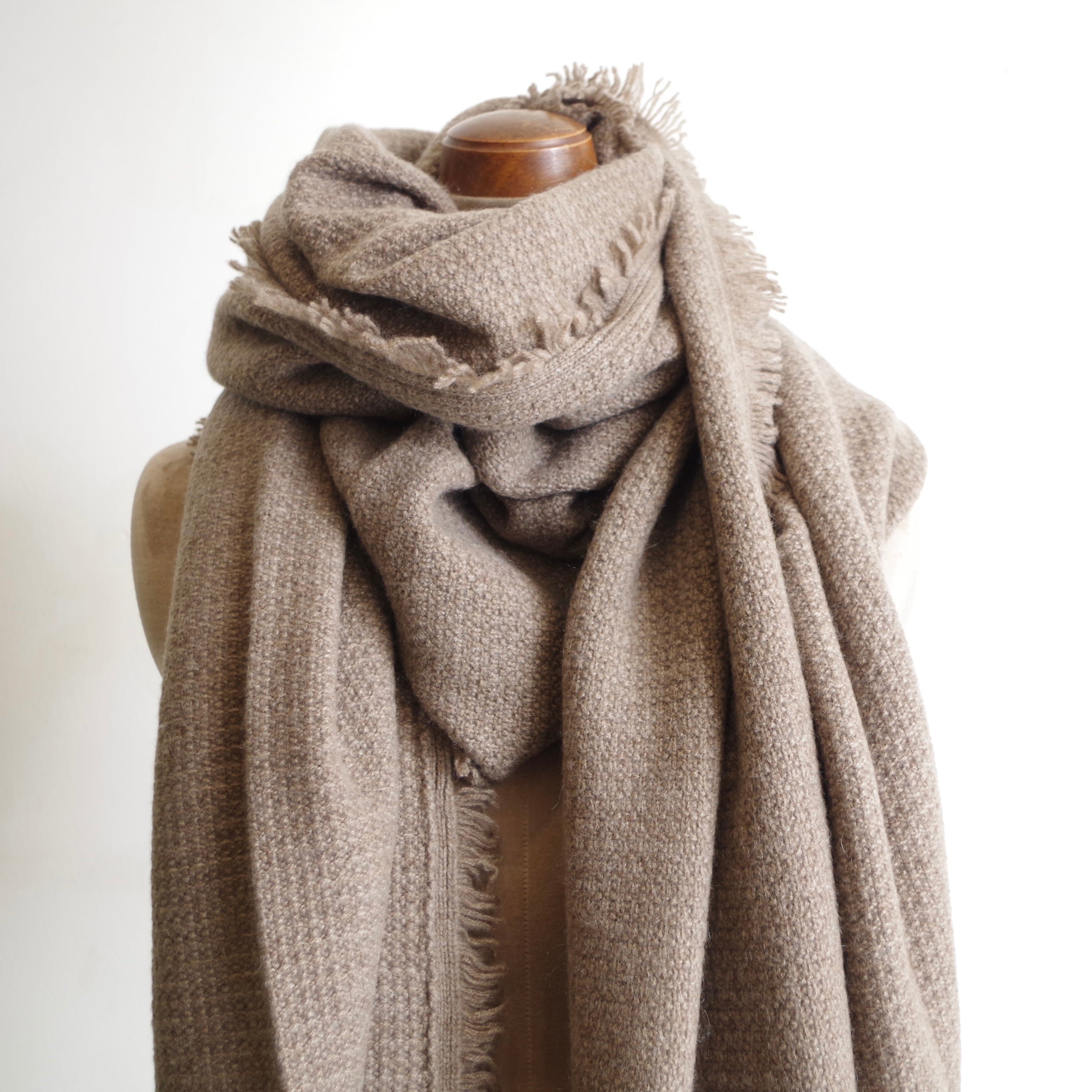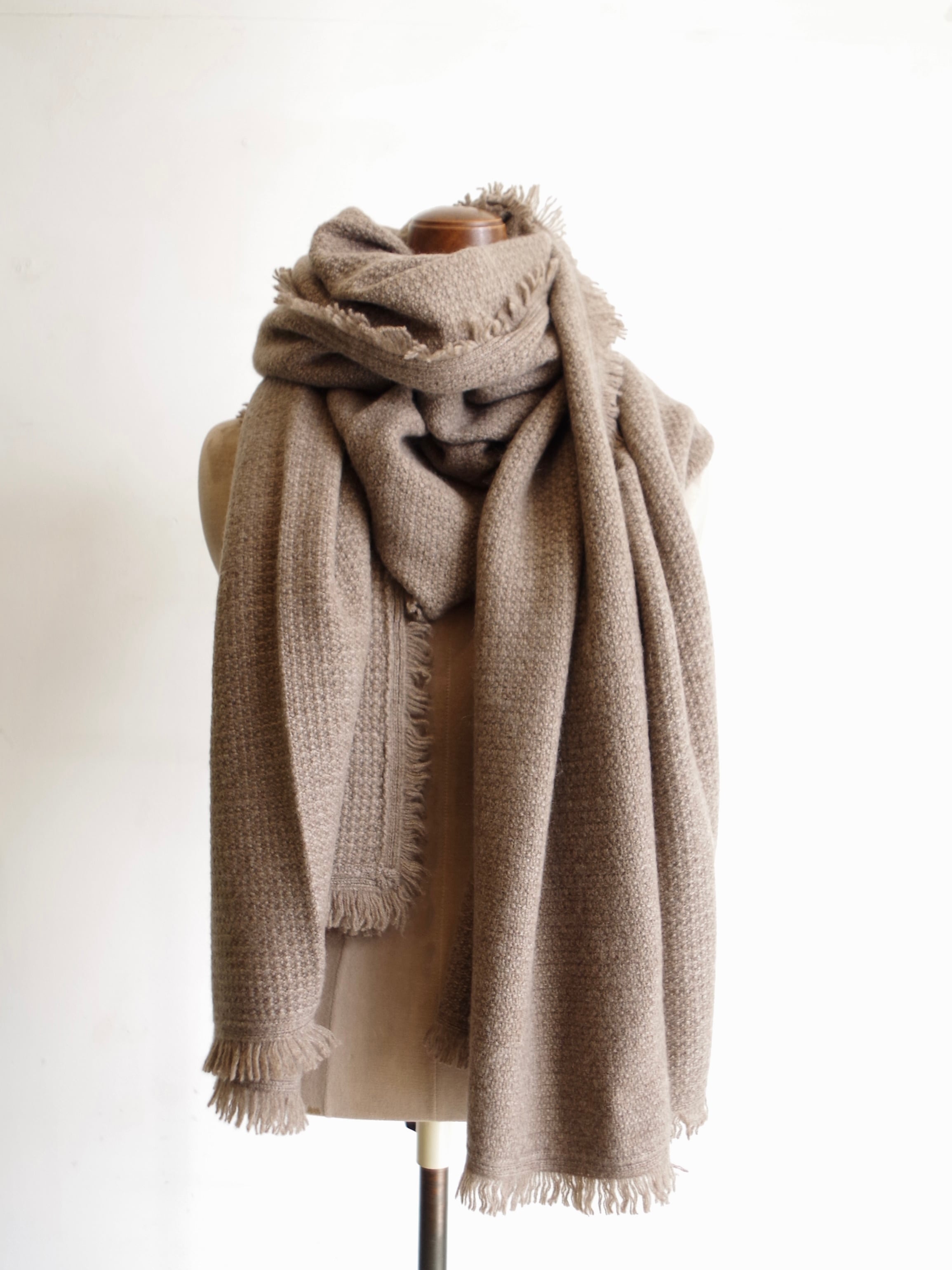立体的な細かい編み方は、糸に空気を含む面積を増やすことでストールを巻いている時のあたたかさをより高めてくれます。