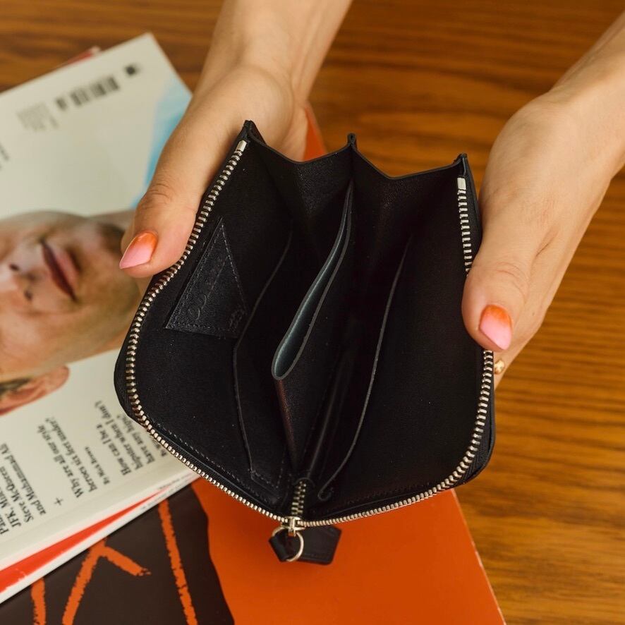 Steady Bagと同素材のカウハイドレザーを使ったL字型ウォレット。