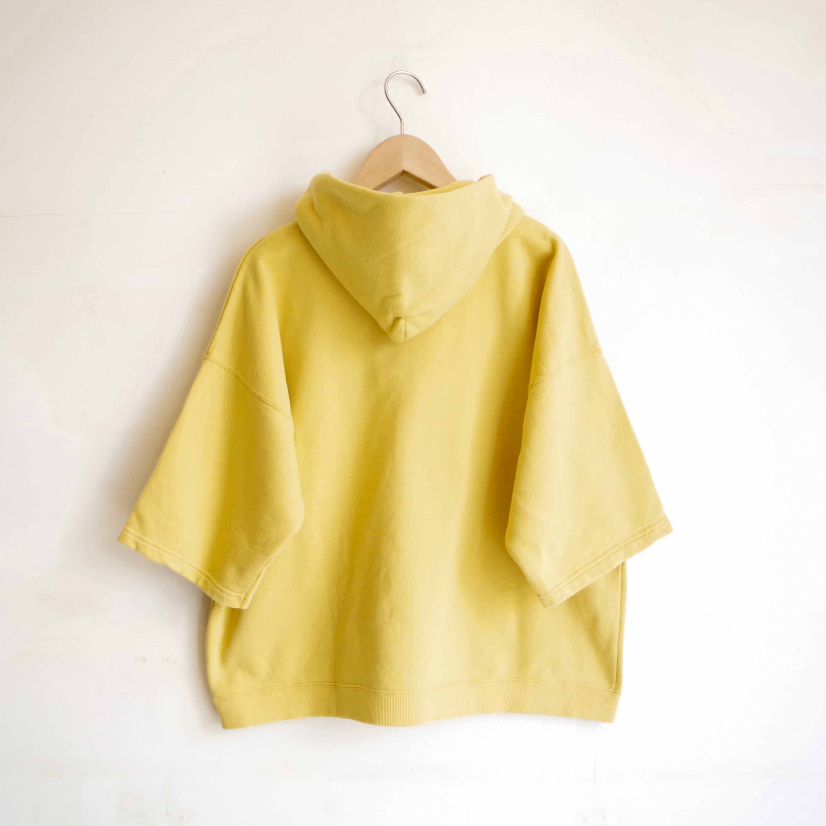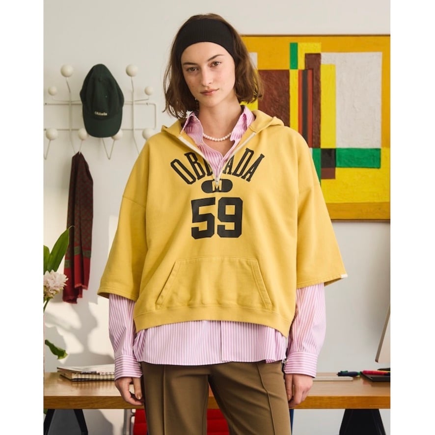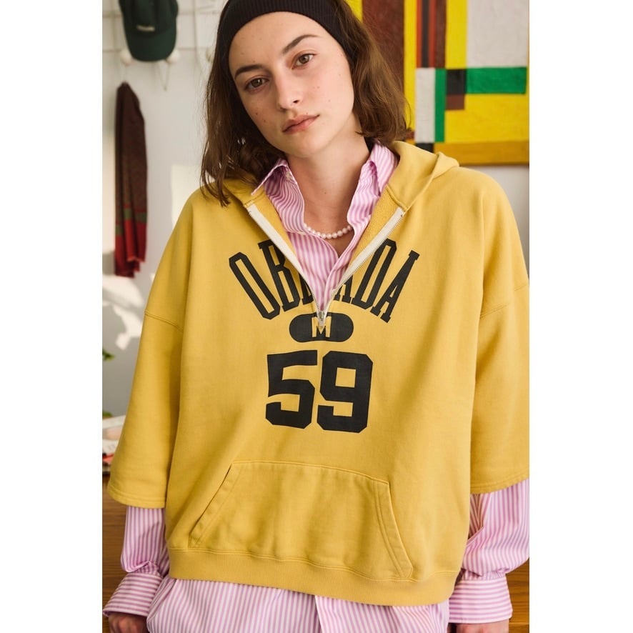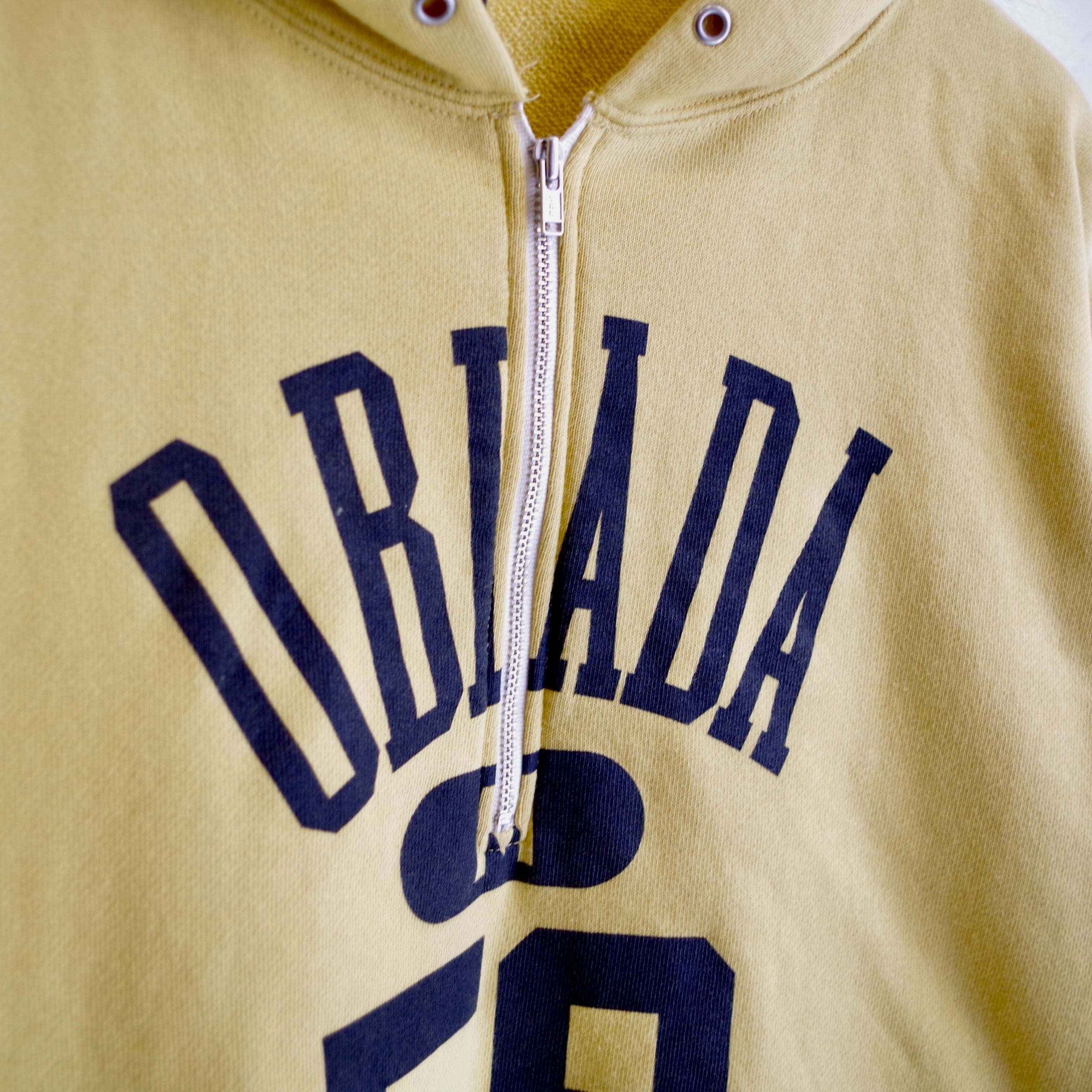 古着のスウェットをリメイクしたような雰囲気の、ハーフジップフーディー。