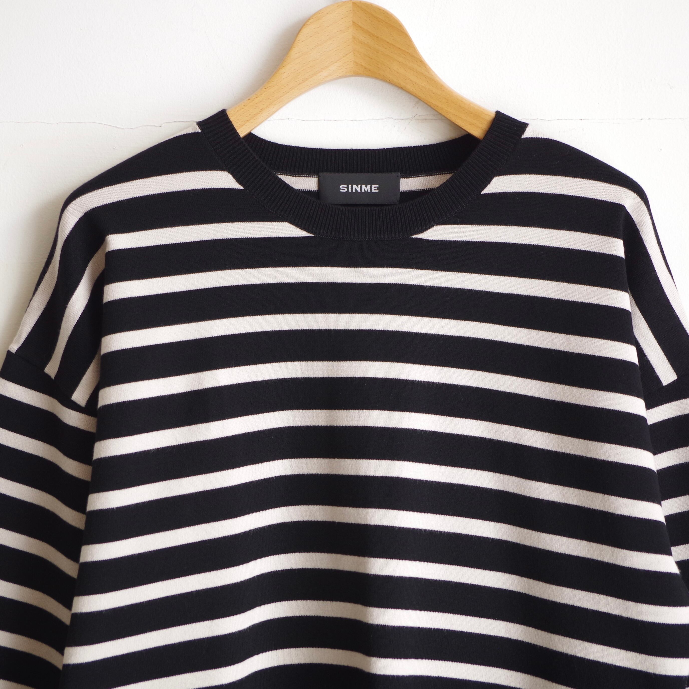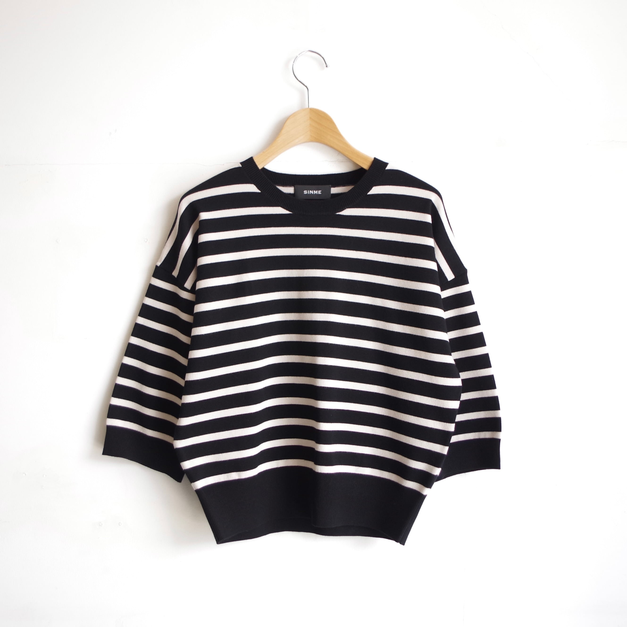 SINME ボーダーハーフスリーブニット ブラックボーダー