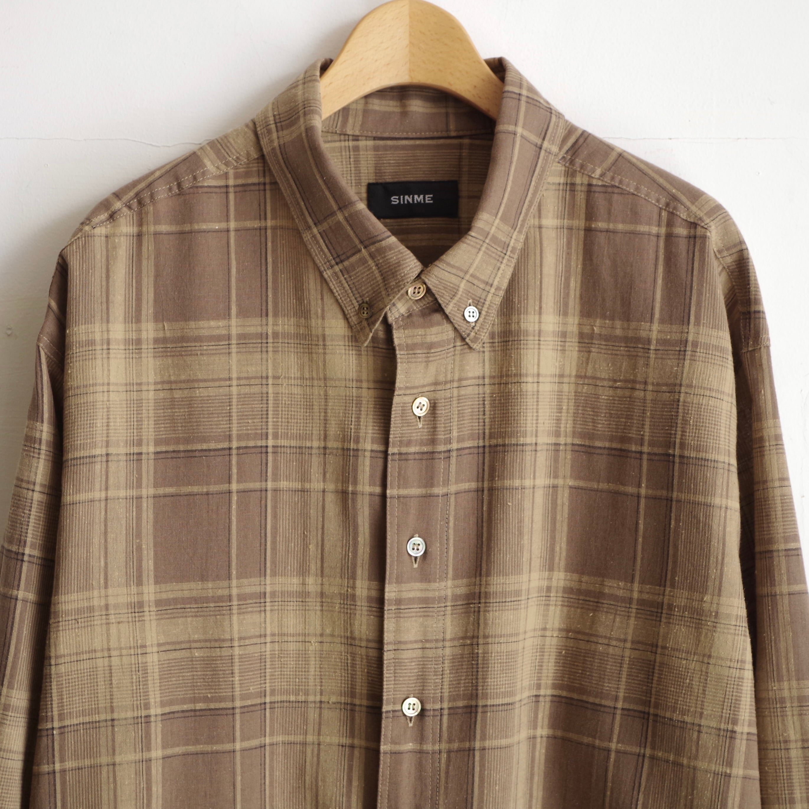 SINME リネンチェックオーバーサイズシャツ