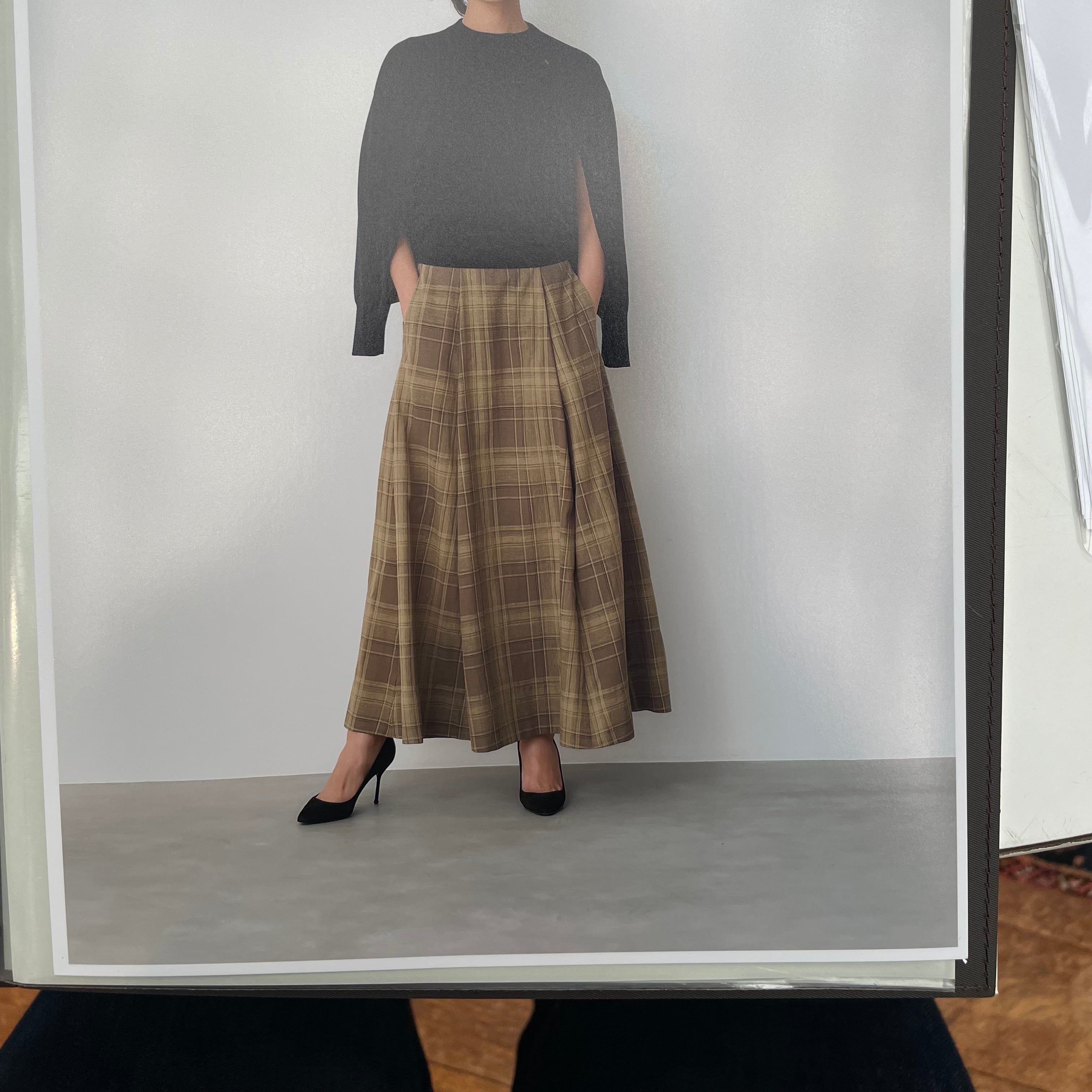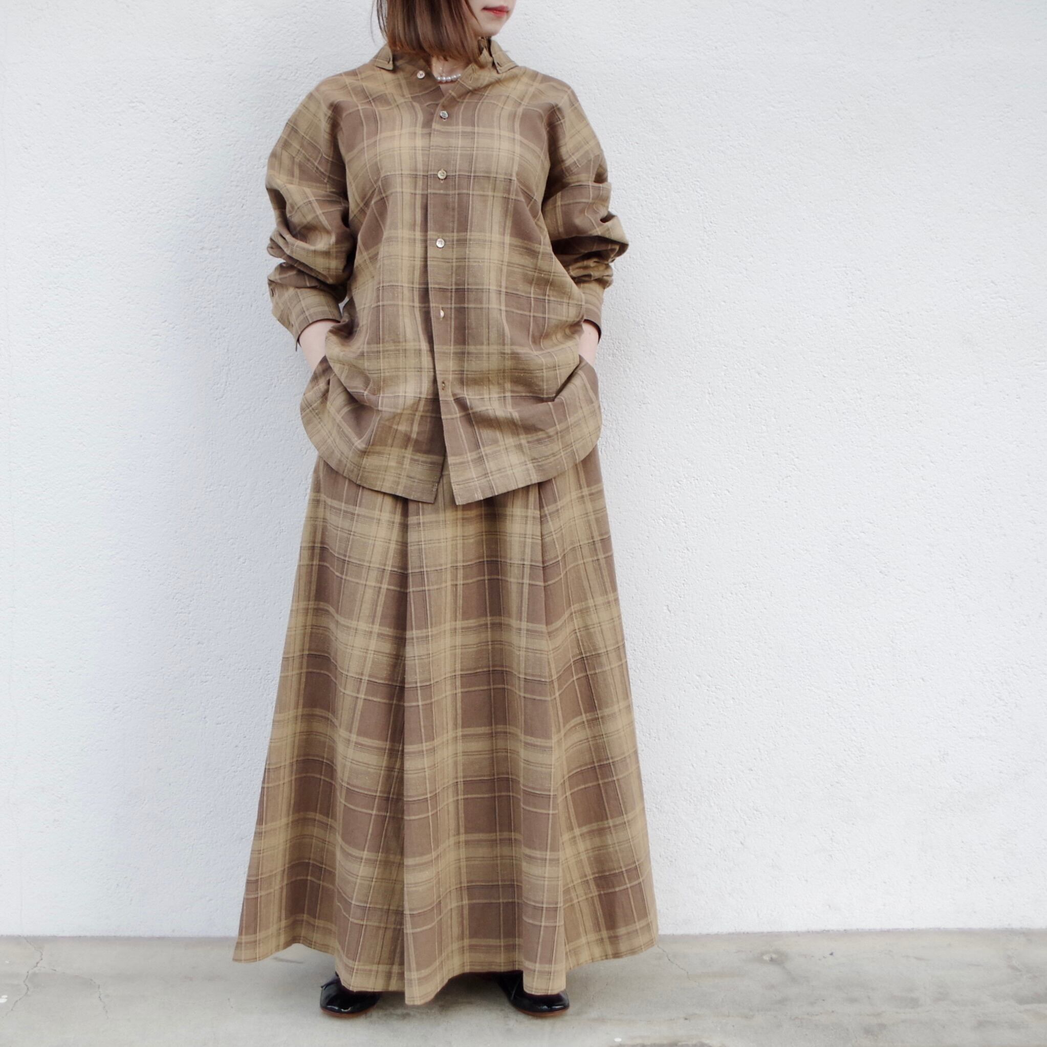 フロントのタックが立体感を生み、動きのあるシルエットに。