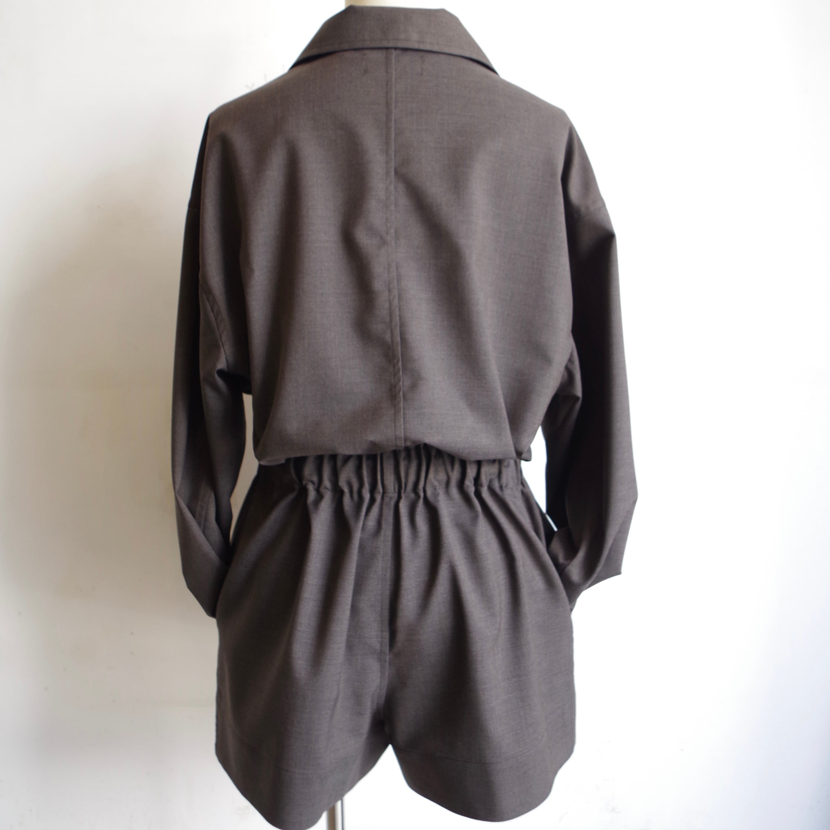 スキッパーのようなデザインが印象的な襟元と、軽快なショーツ丈。