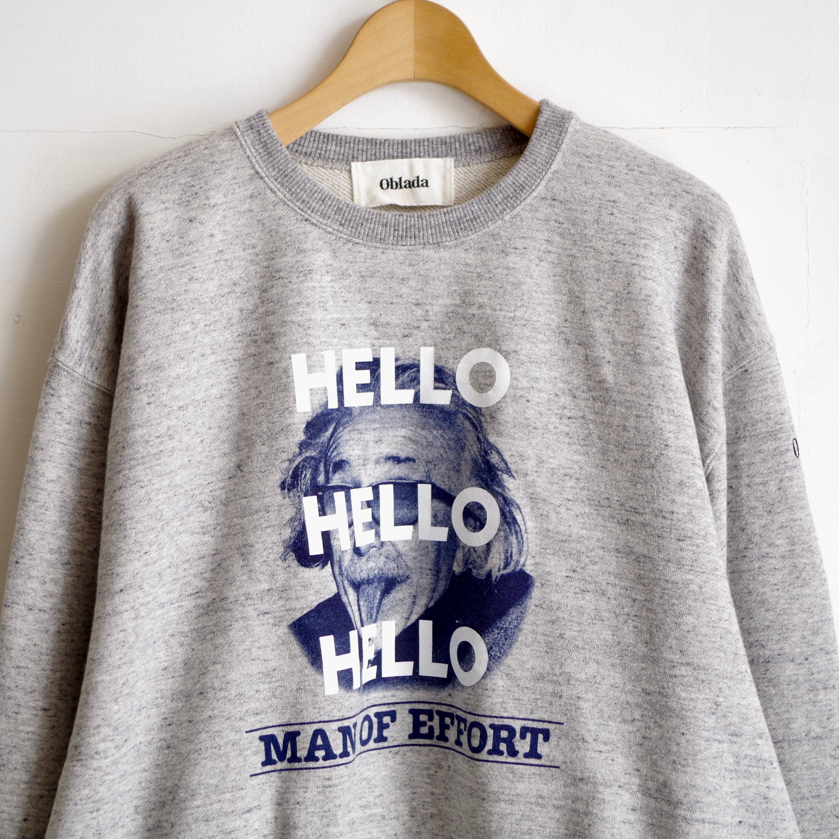 Obladaの人気のあるスウェットの上にHELLOをオーバープリントしてアップデイトした一枚です。