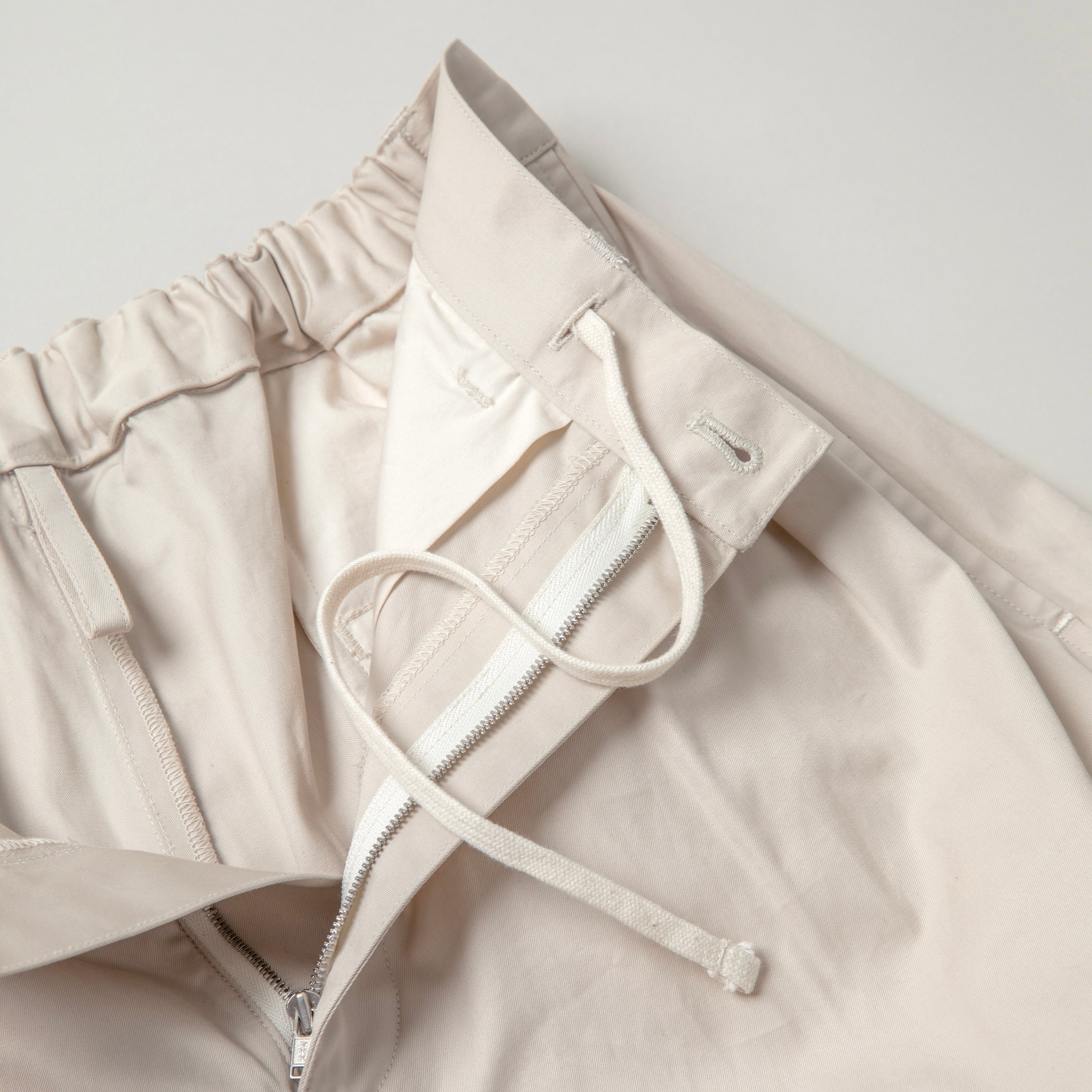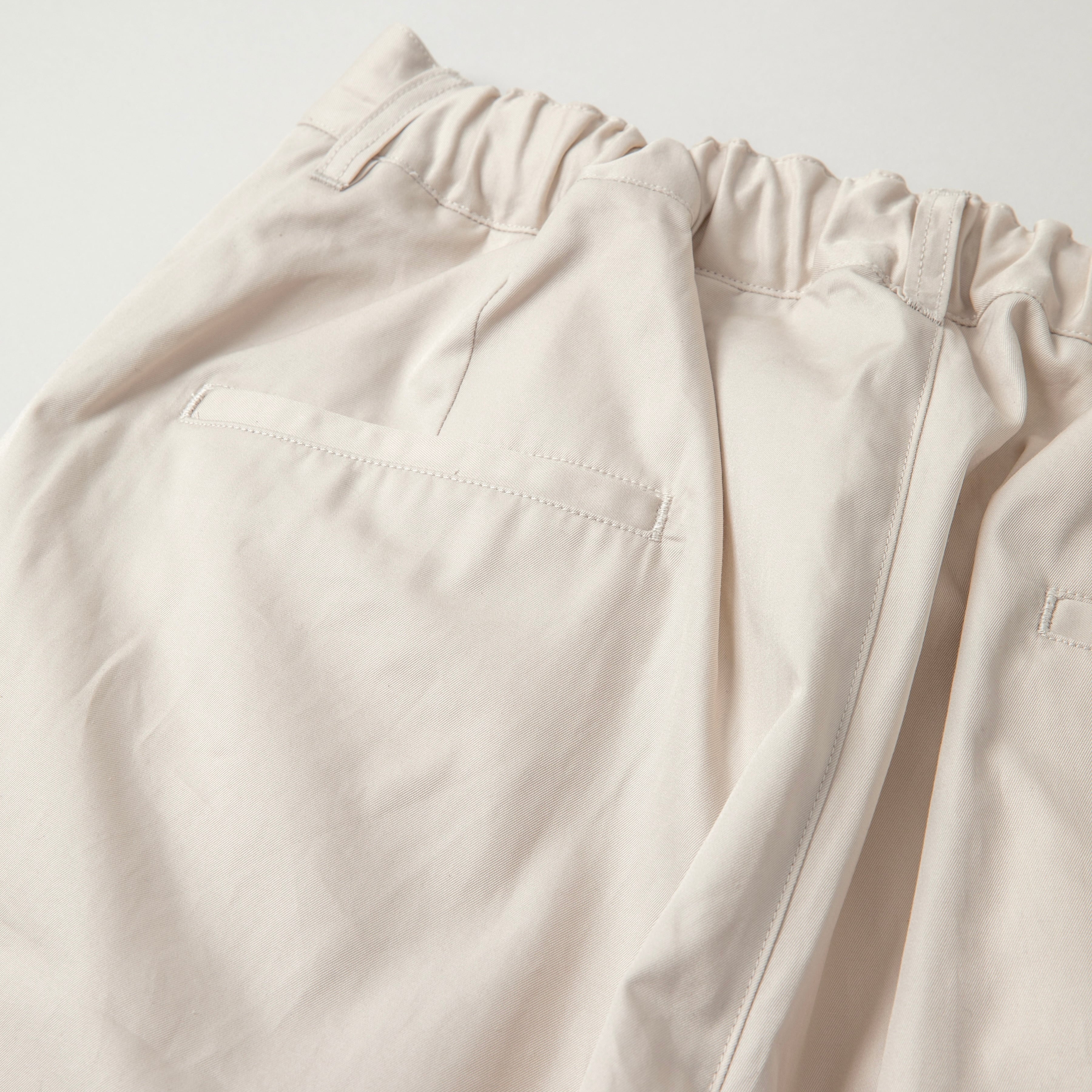 ベルトループ、ウエスト裏ゴム、ドローコードを備えた仕様。