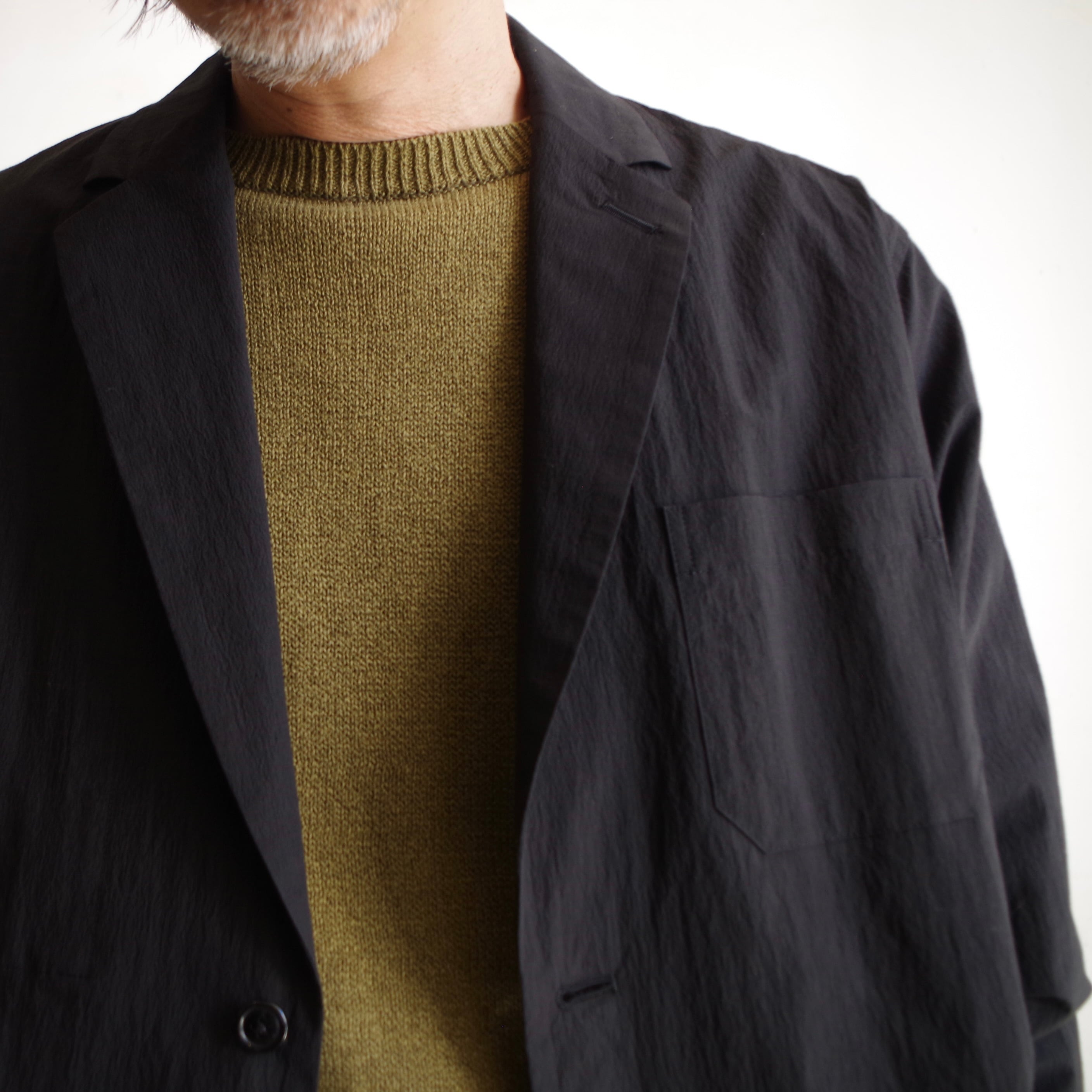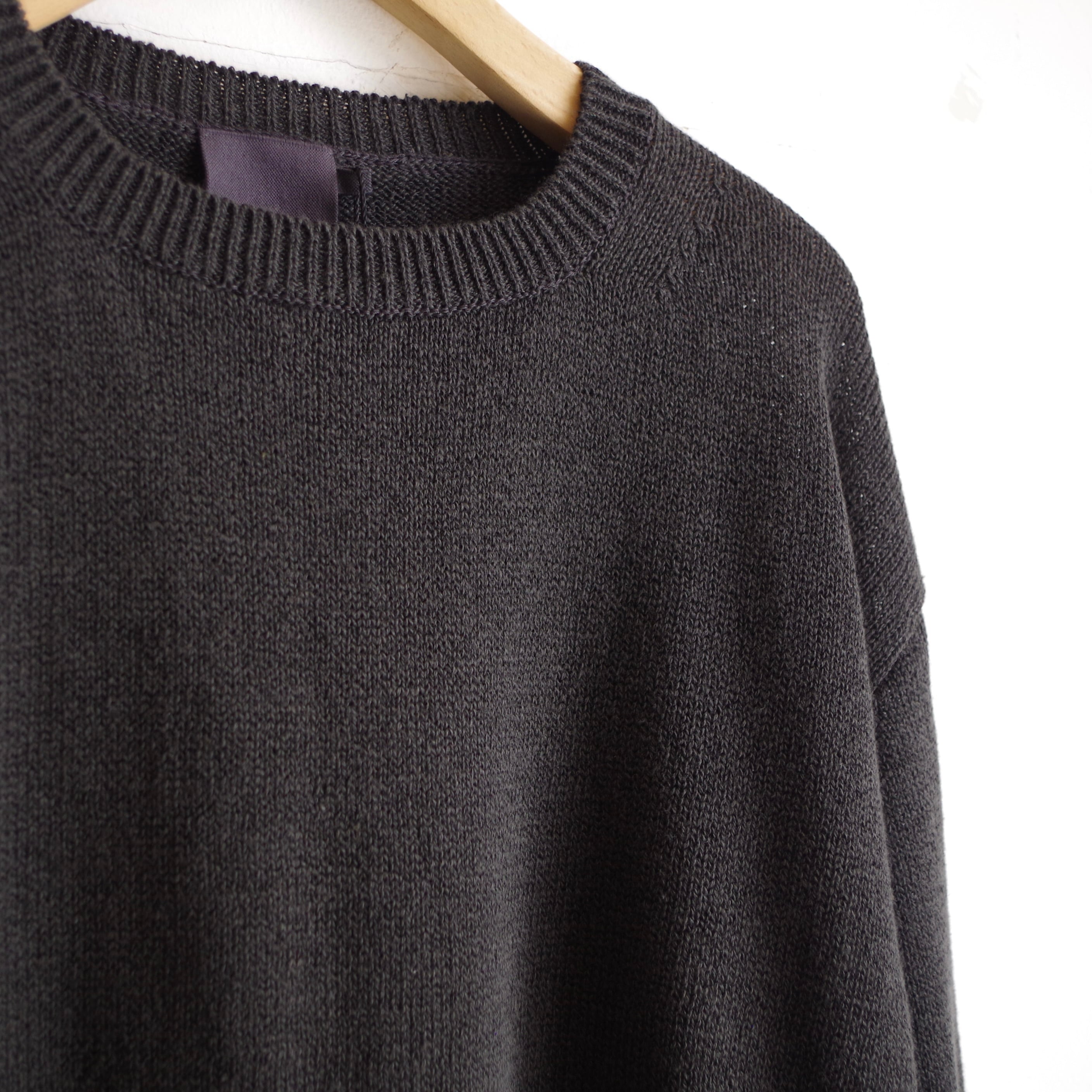 高級リネン特有の上品な光沢とシャリ感をそのまま保ちつつ、コットンのドライ感と強さを備わるため、家庭での洗濯も可能です。東北の手横編み機職人に時間をかけて編んでいるアイテムです。