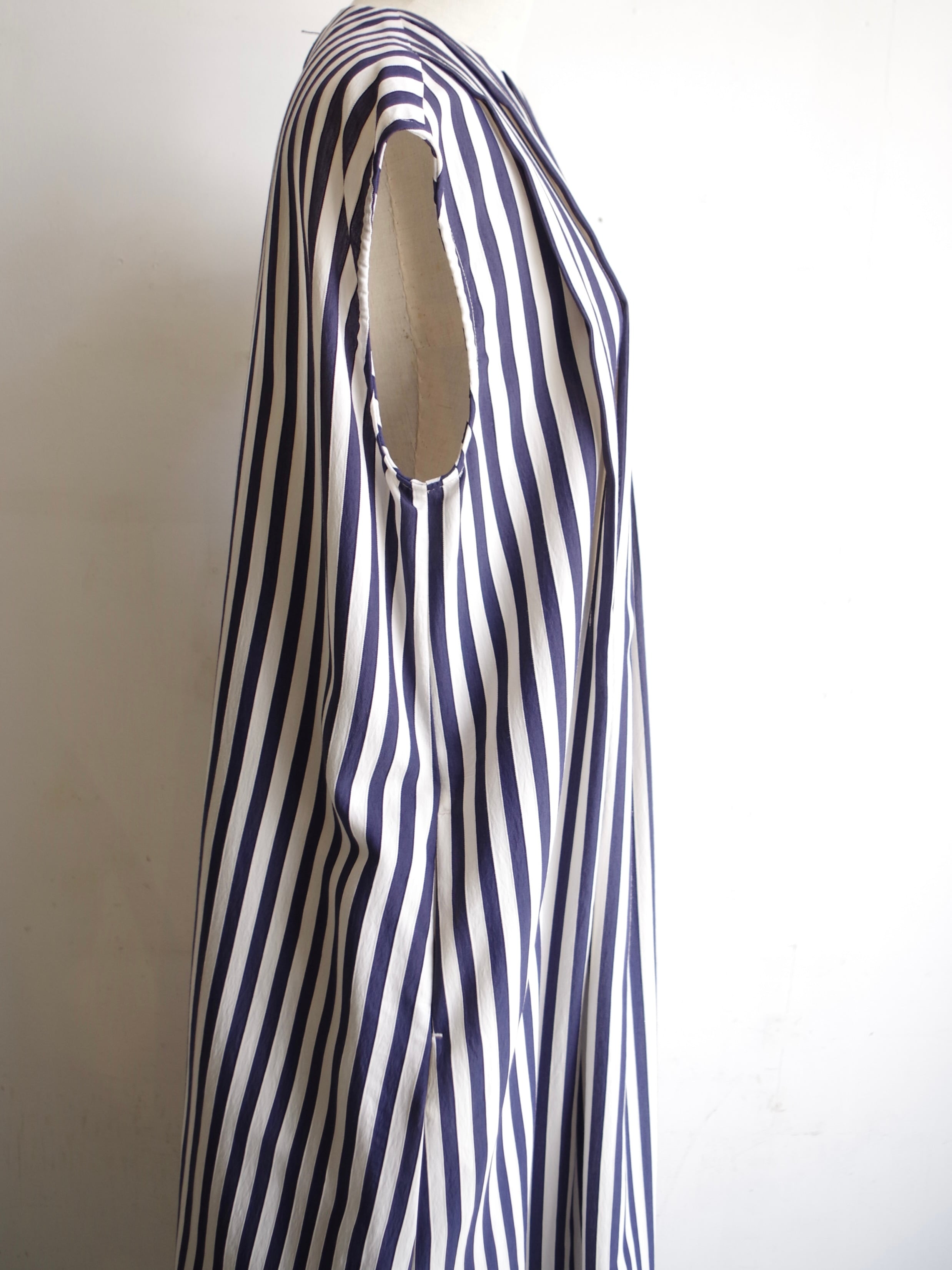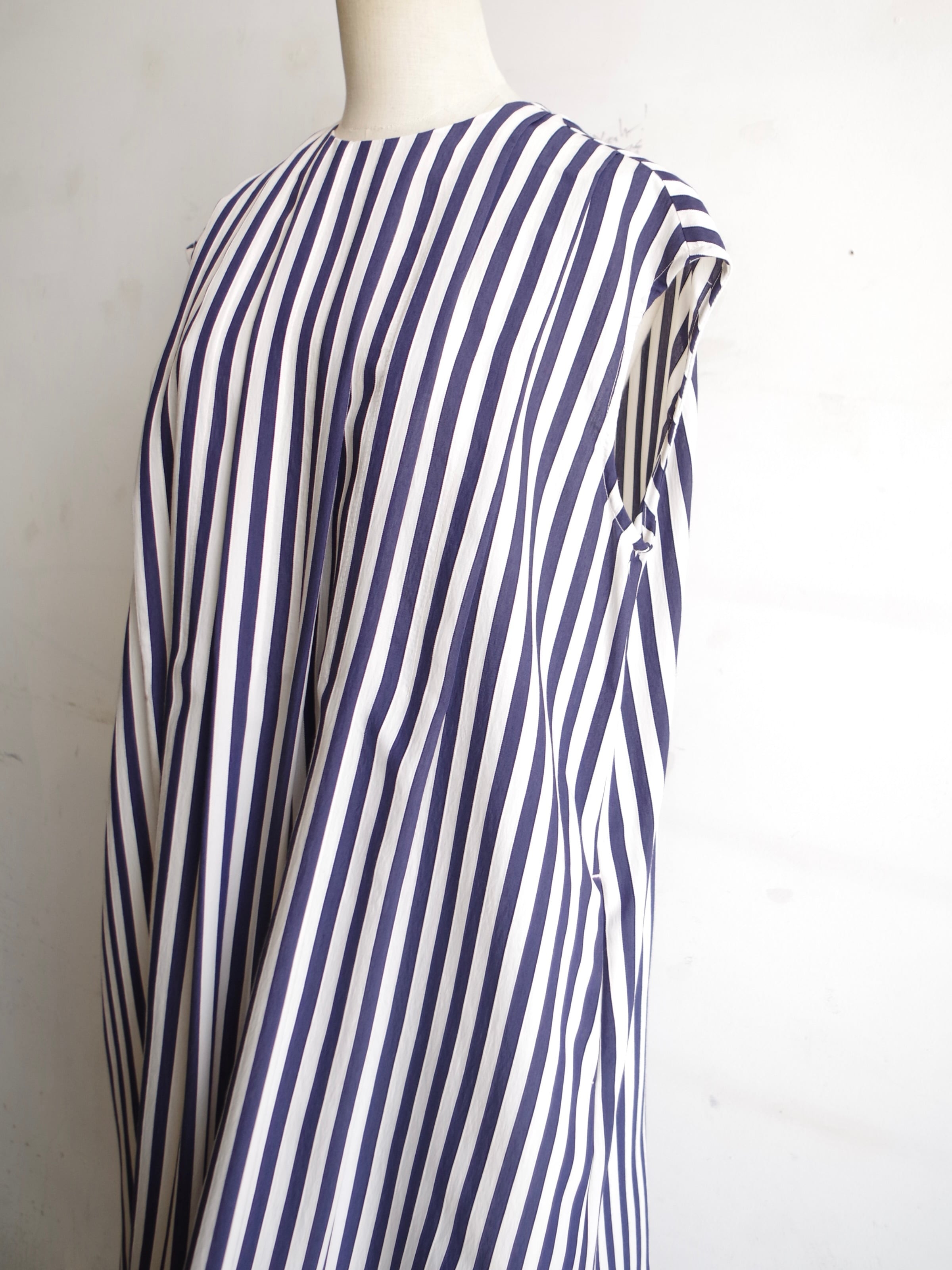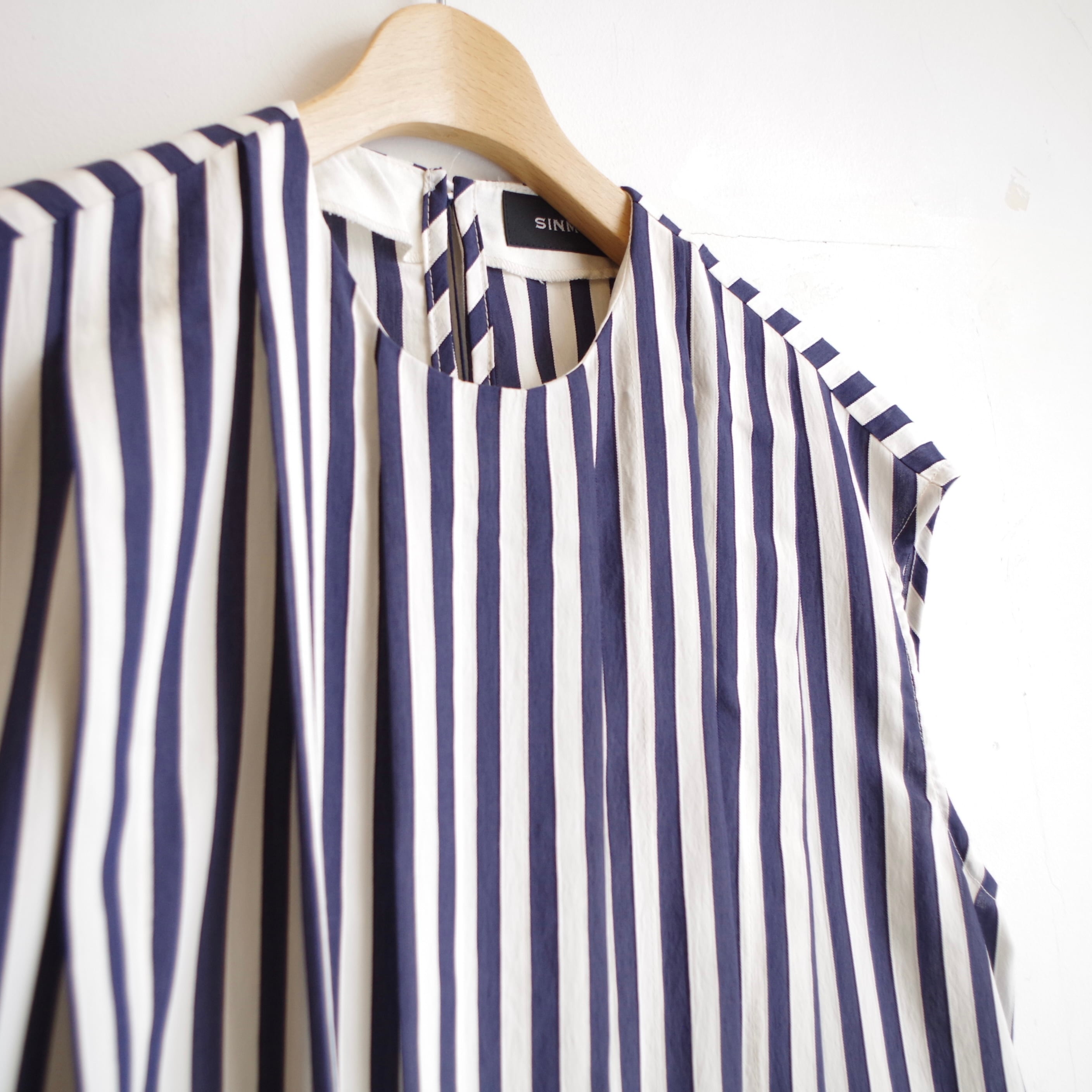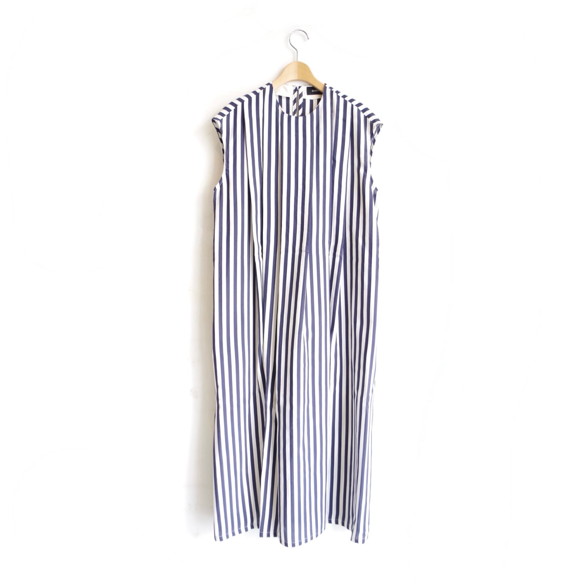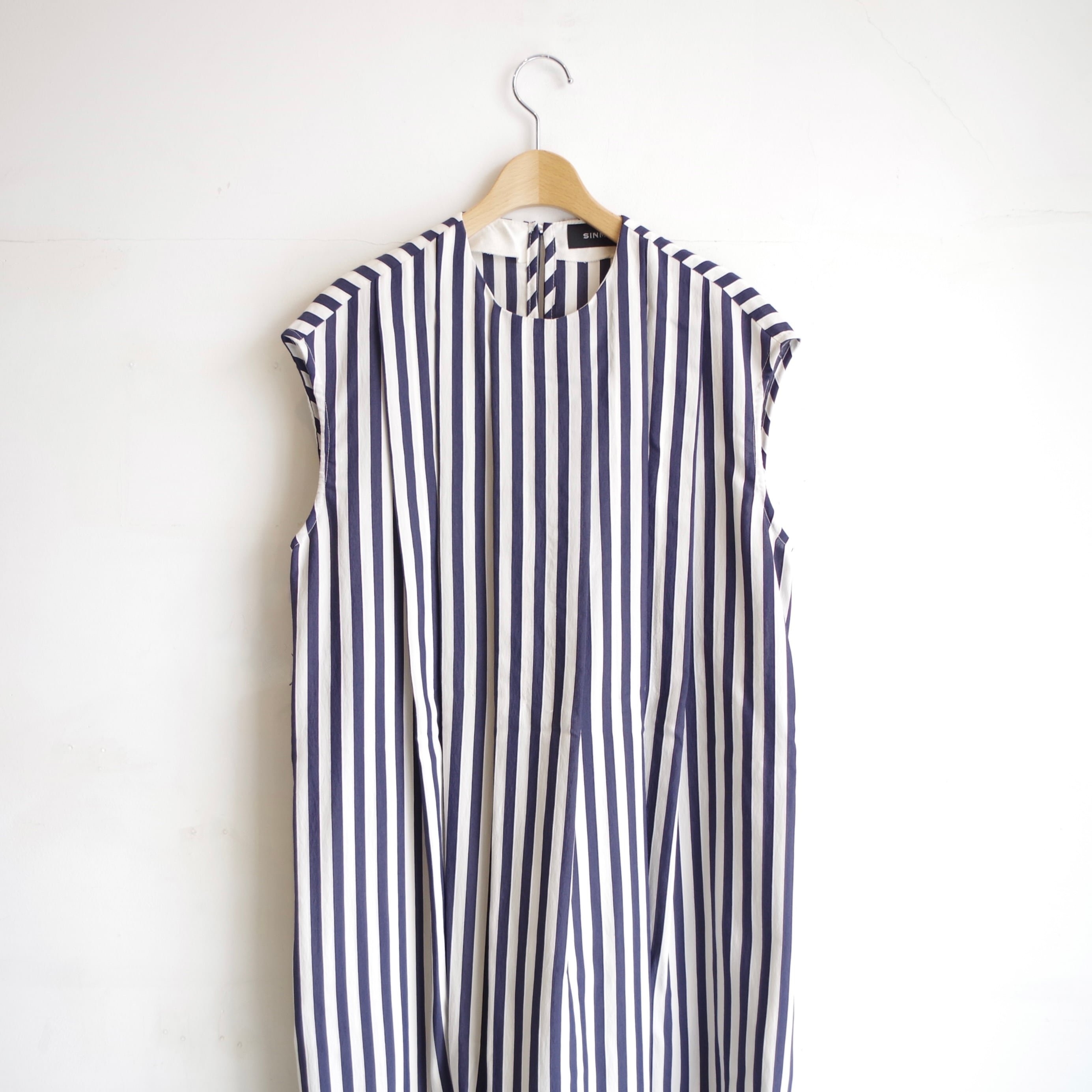 SINME ストライプタックノースリーブワンピース ショート