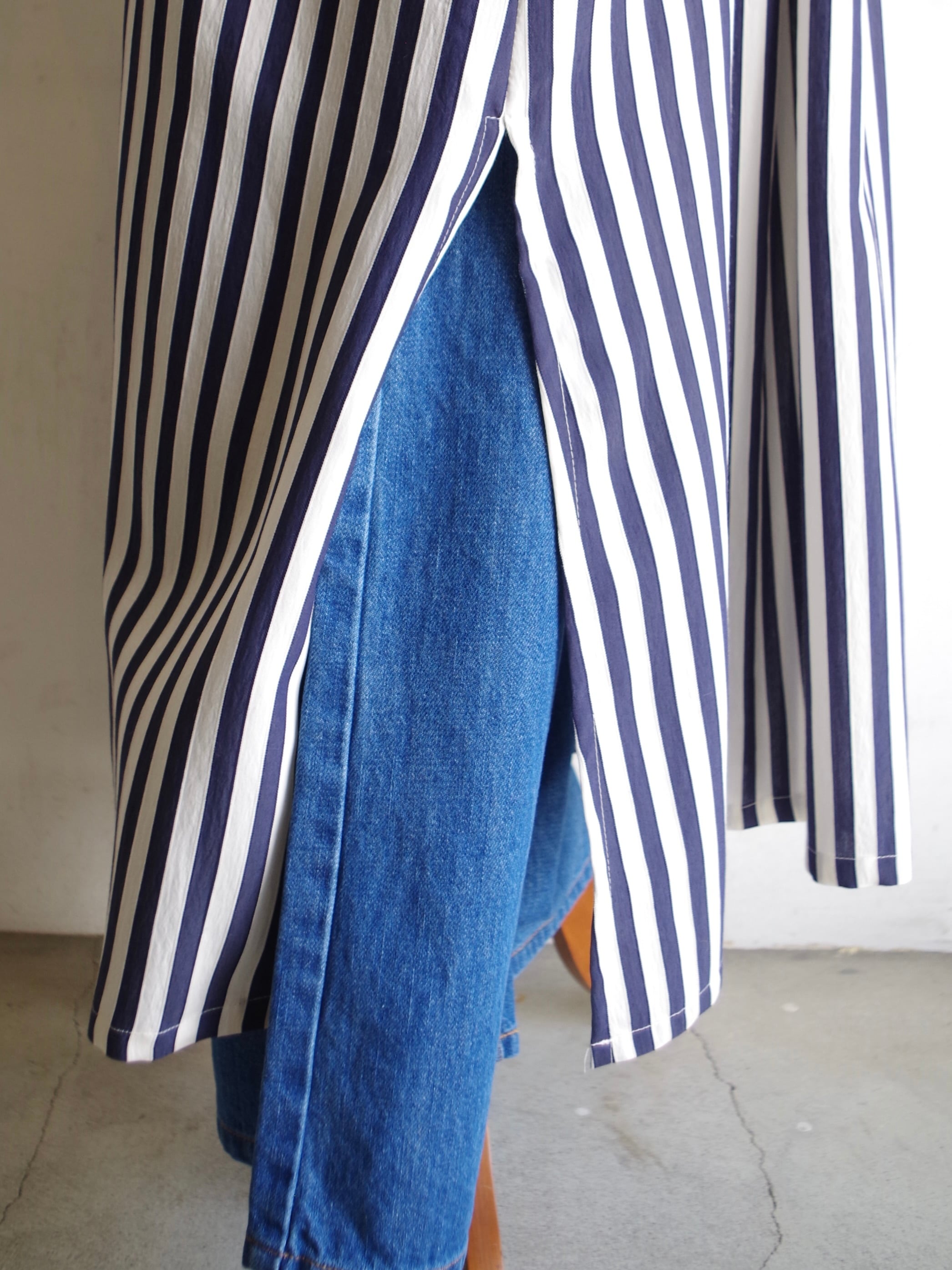 両サイドに約40cmのスリットを入れることで、動きやすさと軽やかな印象に仕上げています。
