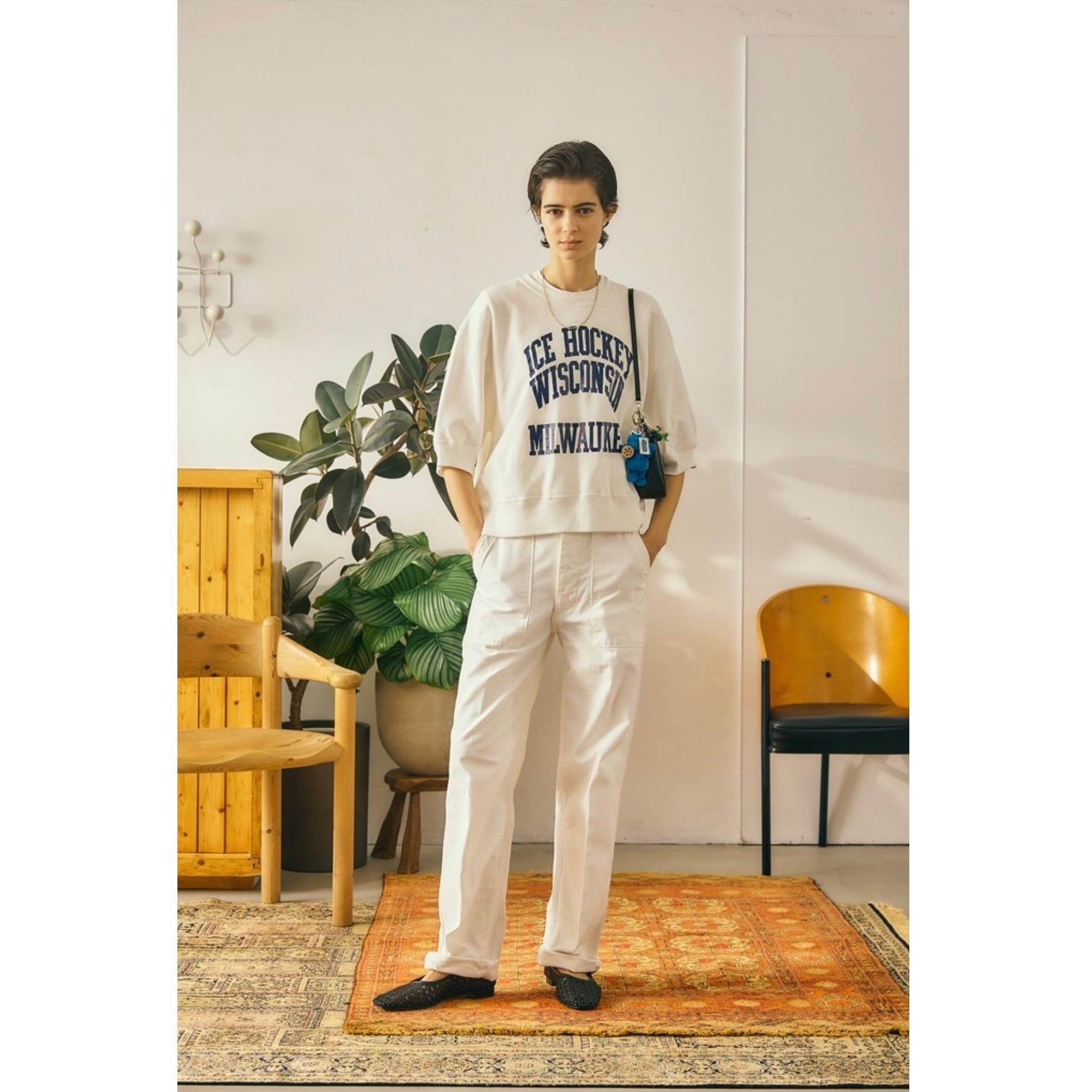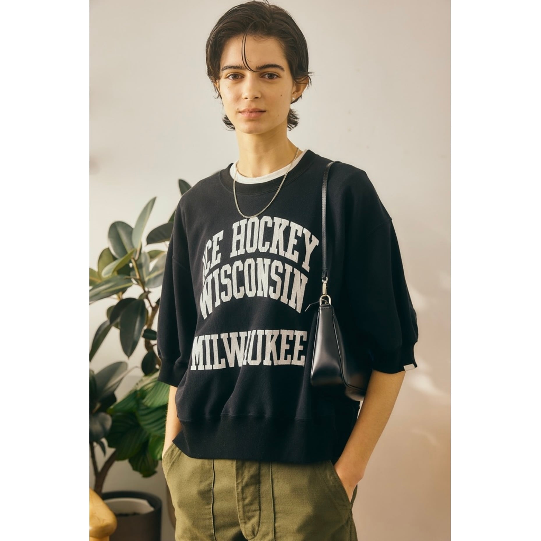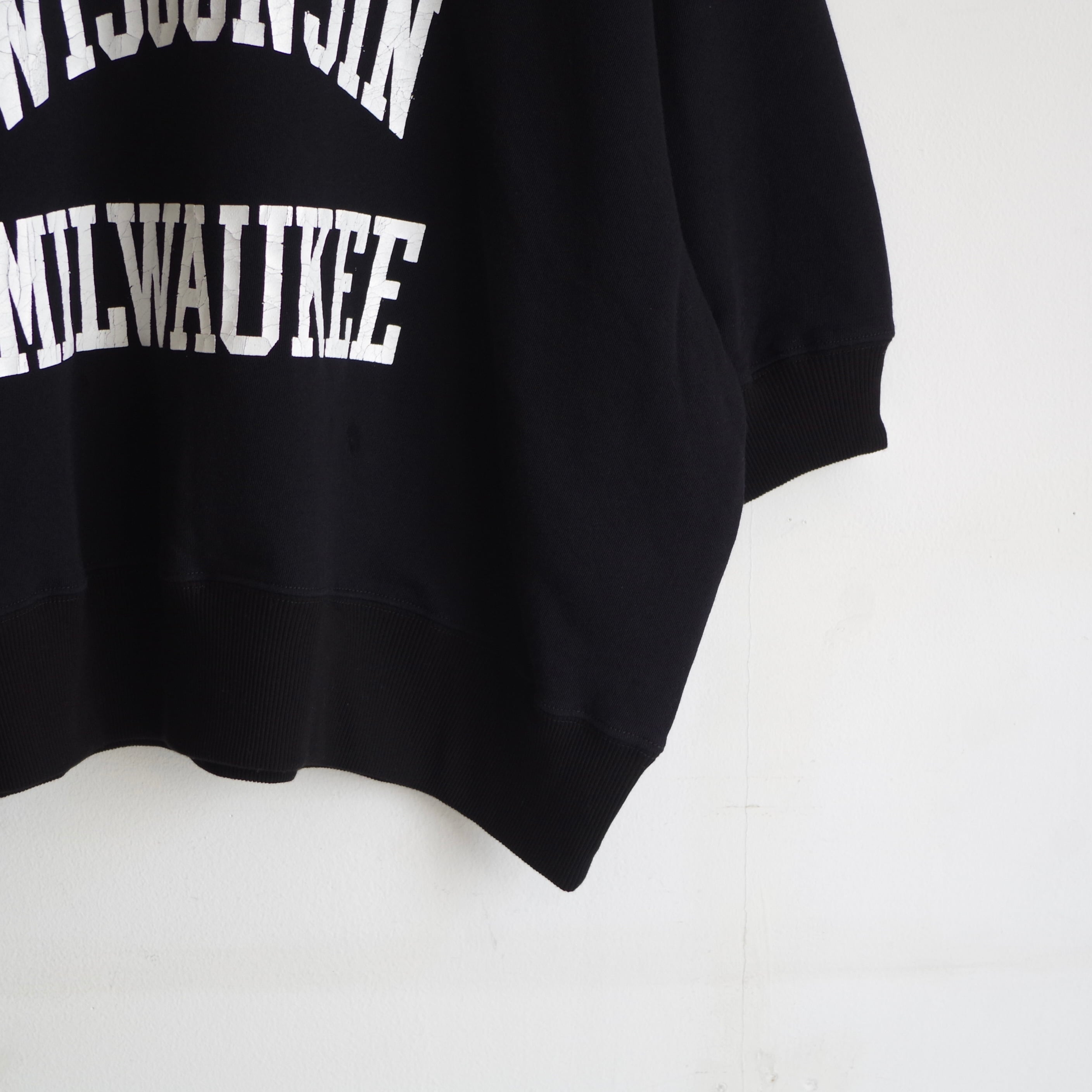 ハーフスリーブスウェットに、クラックプリントでヴィンテージ感をプラス。
