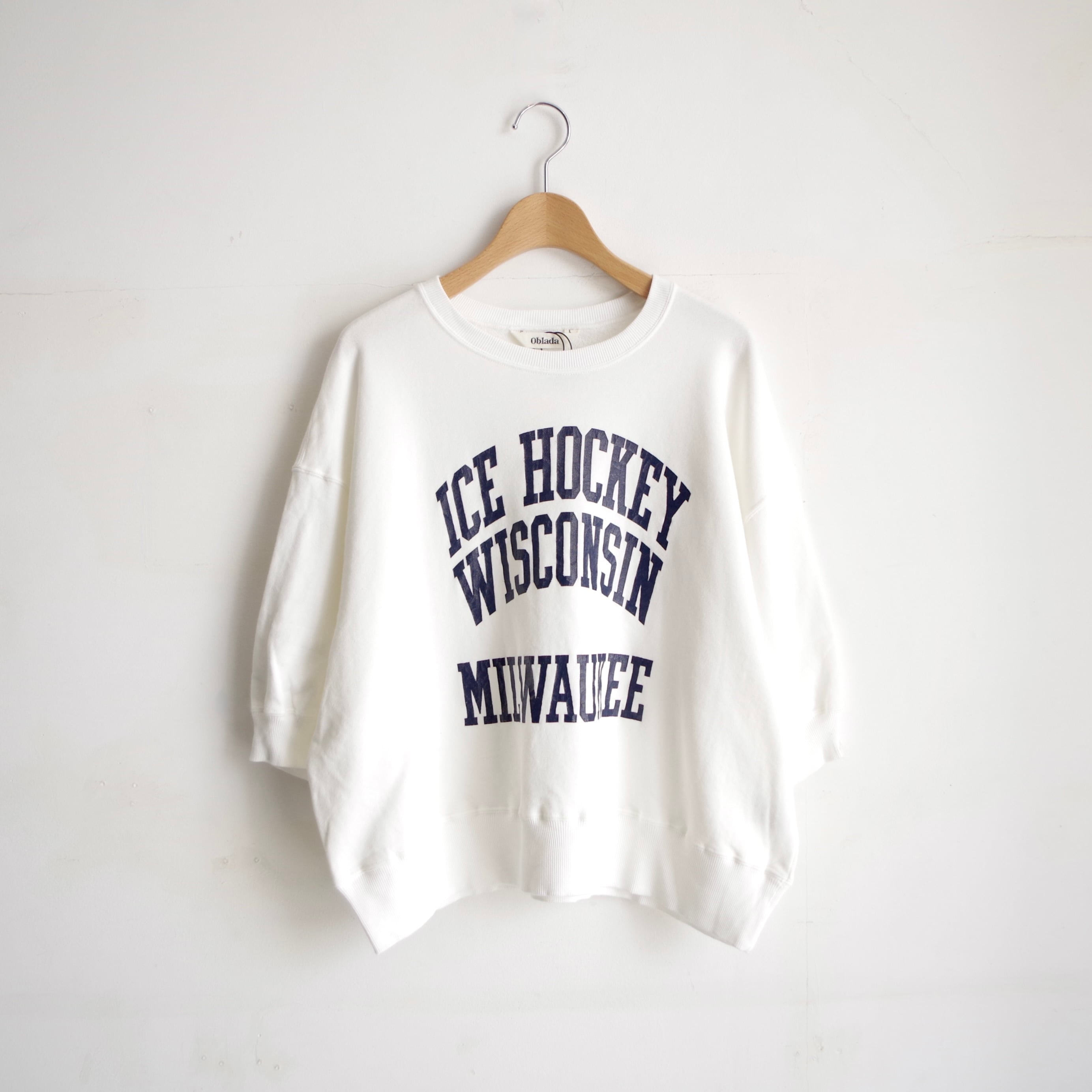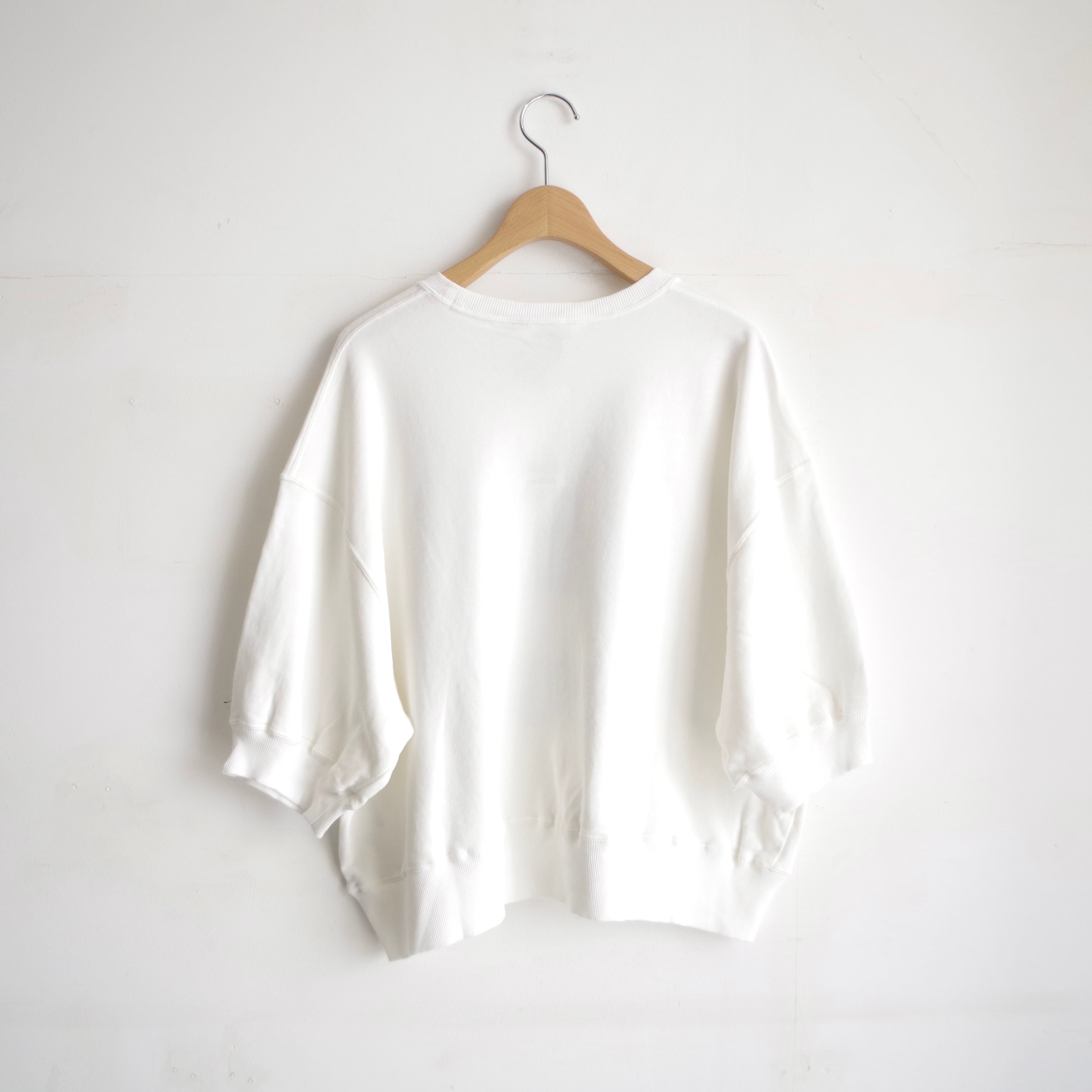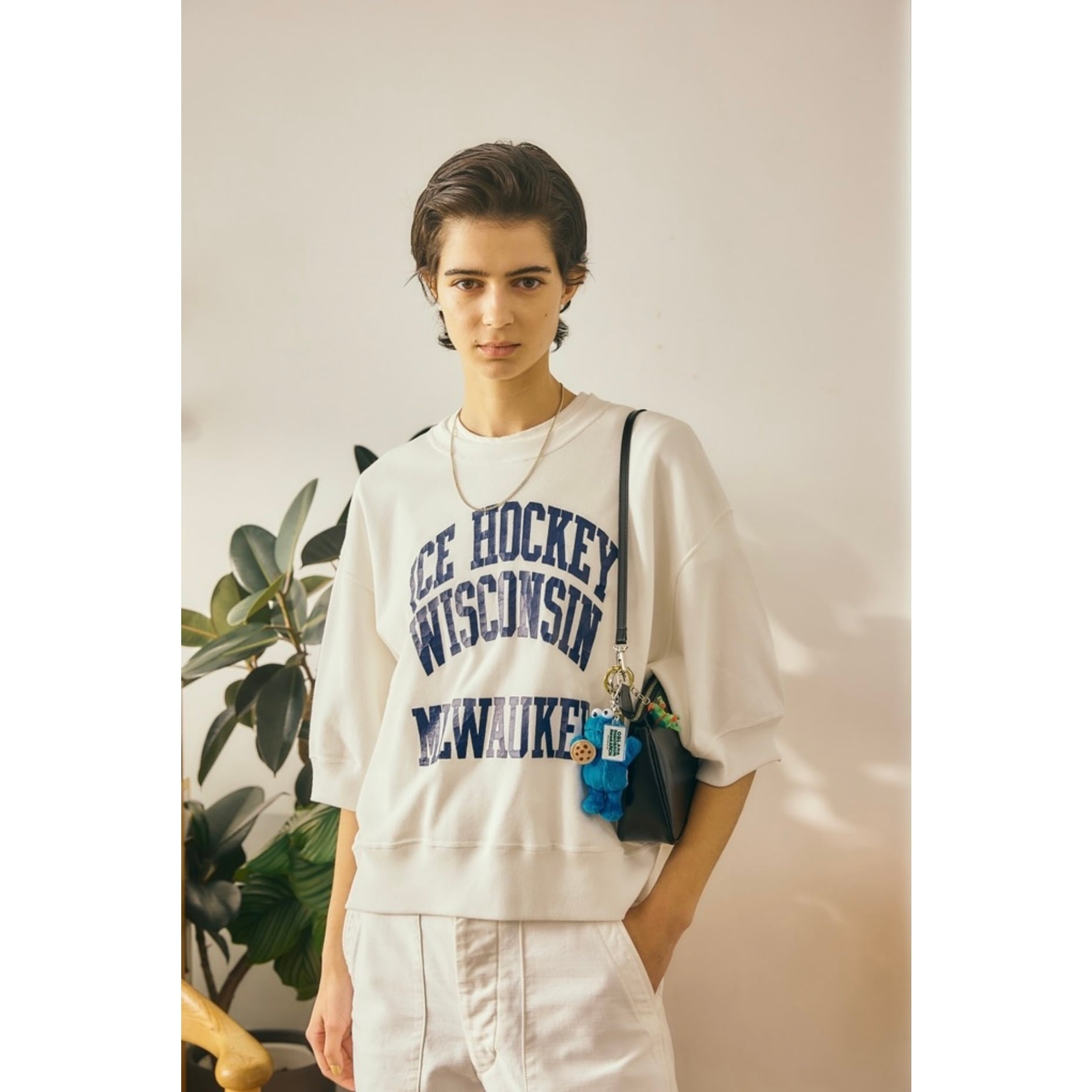 ハーフスリーブスウェットに、クラックプリントでヴィンテージ感をプラス。