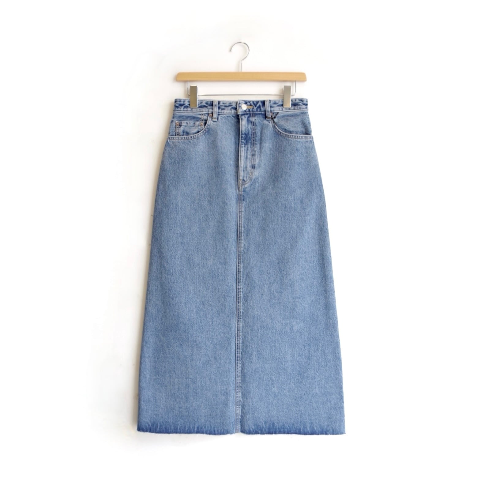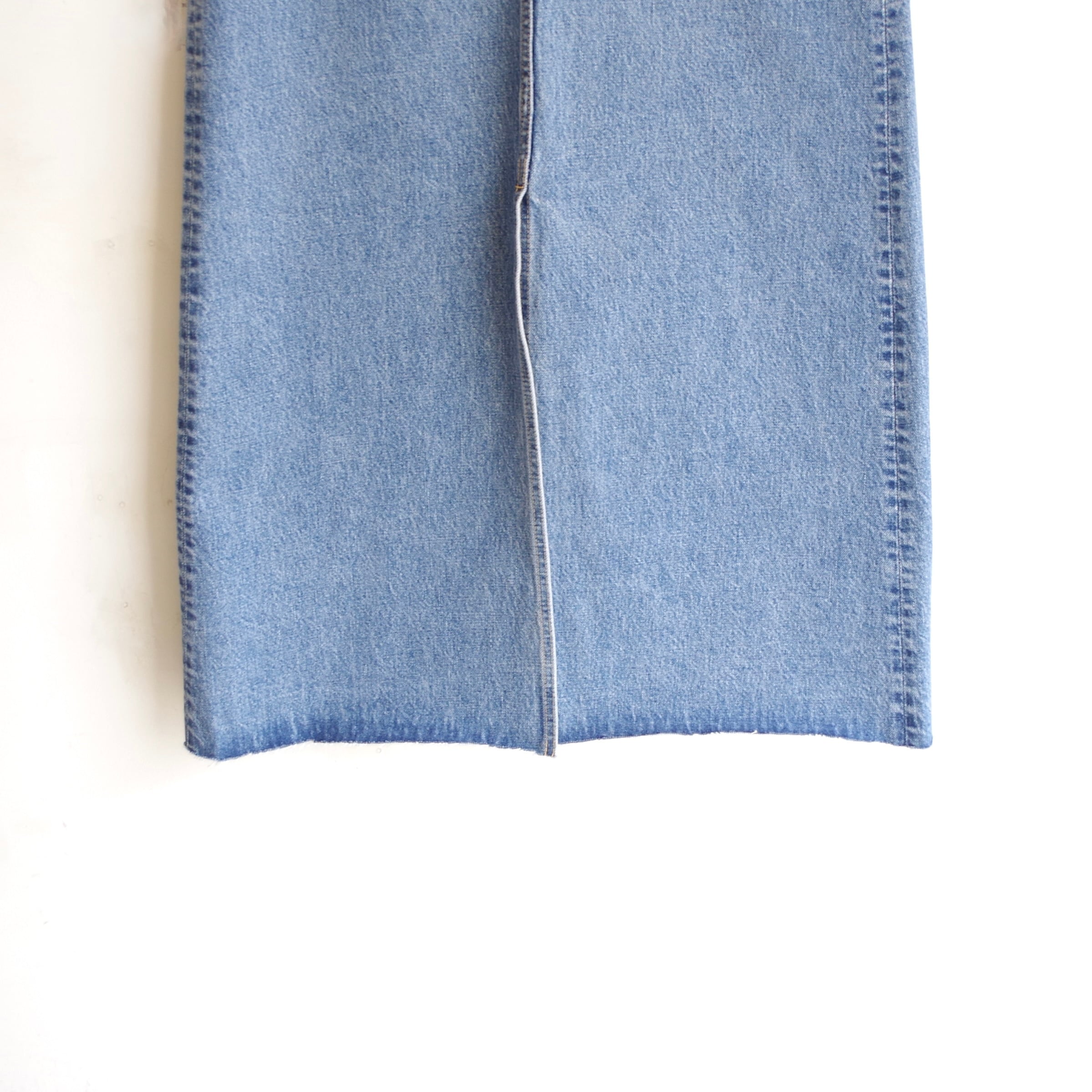 しっかりとしたデニム生地を使用した、シンプルなデニムスカート。