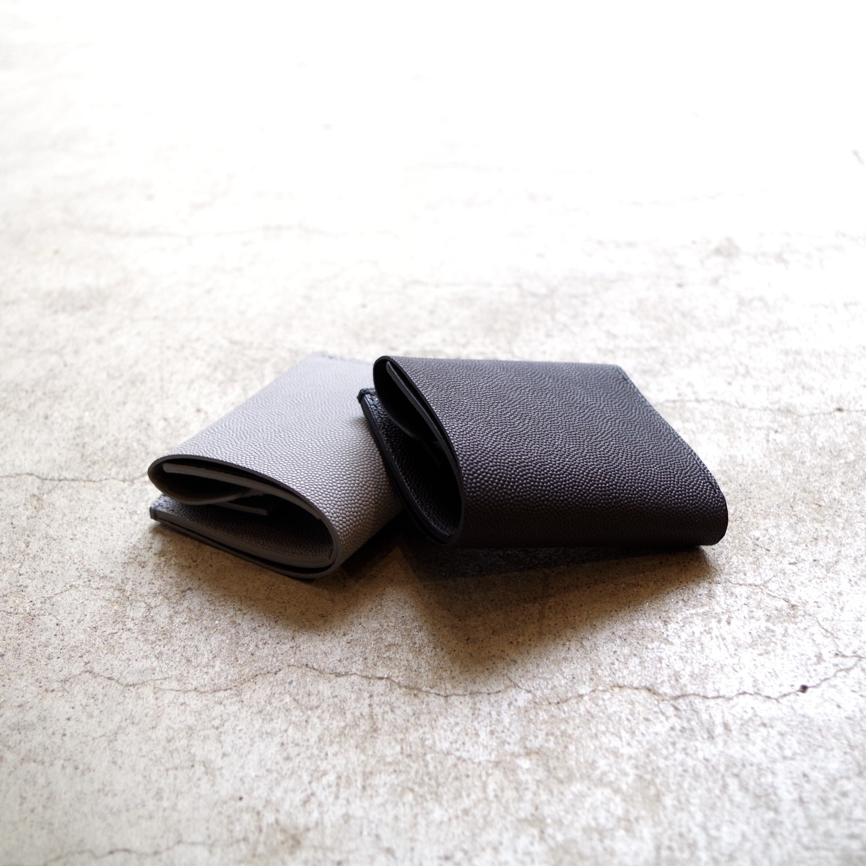 レザーを折り返しただけのような、正面からステッチが1本しか見えないミニマルなデザインの財布。使うシーン・スタイルを選ばない、「ともに、時を行く」というERA.のコンセプトを体現するモデルです。手のひらに収まりのよいサイズですが、お札、カードスリット3室(カード3〜5枚収納可能)、BOX型の小銭入れとバランスのよい仕様です。
