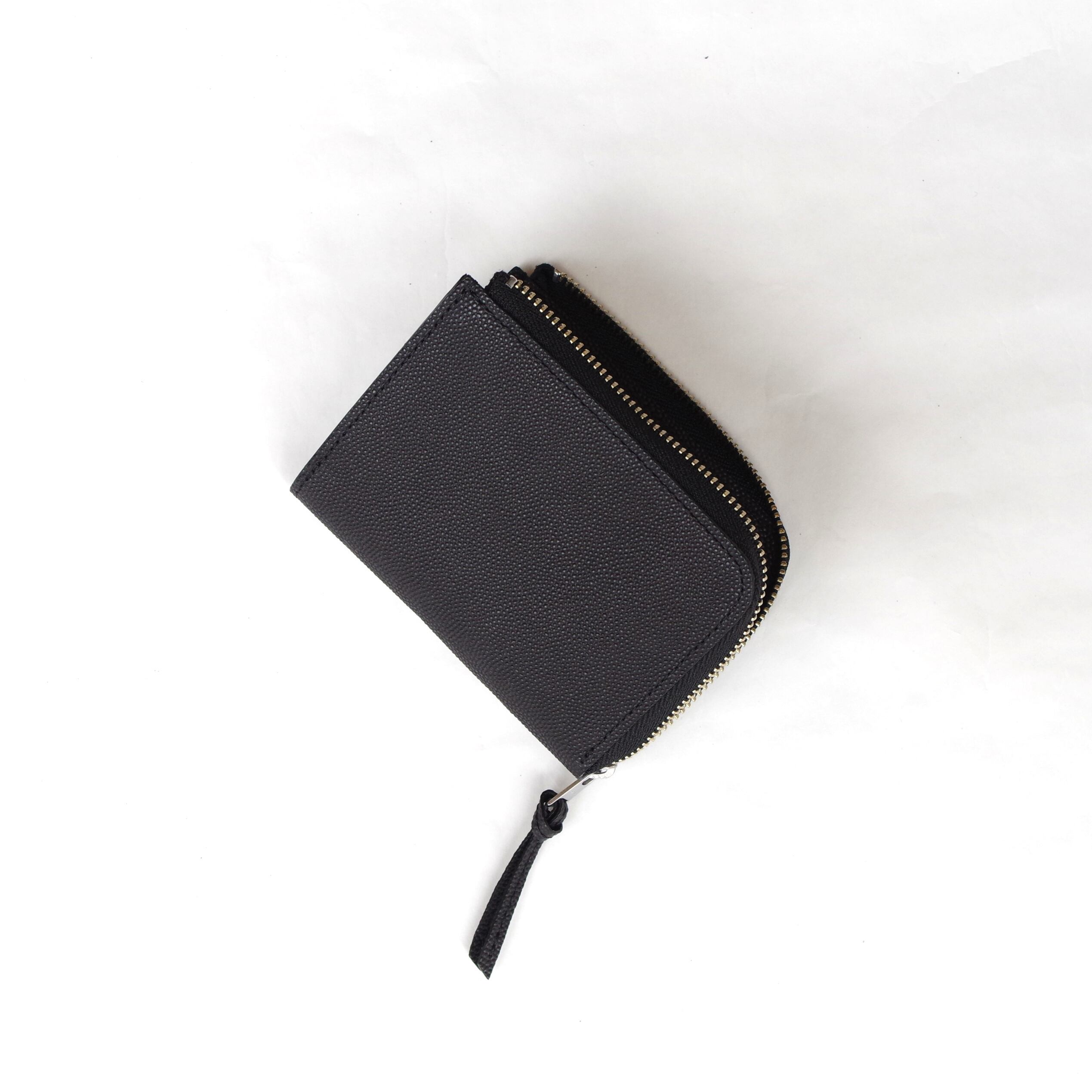お札を折って、カードを重ねて、小銭も入れて、ギュッと挟んで持ち歩く仕様です。ワンアクションで開くL型ファスナー、左右両側にマチが付いた使いやすい小銭入れ、大事なカードを1枚収納できるスリットと、お札の種類や領収書を区別できるレザーパーテーションもあり、コンパクトながら使い勝手のいい財布です。