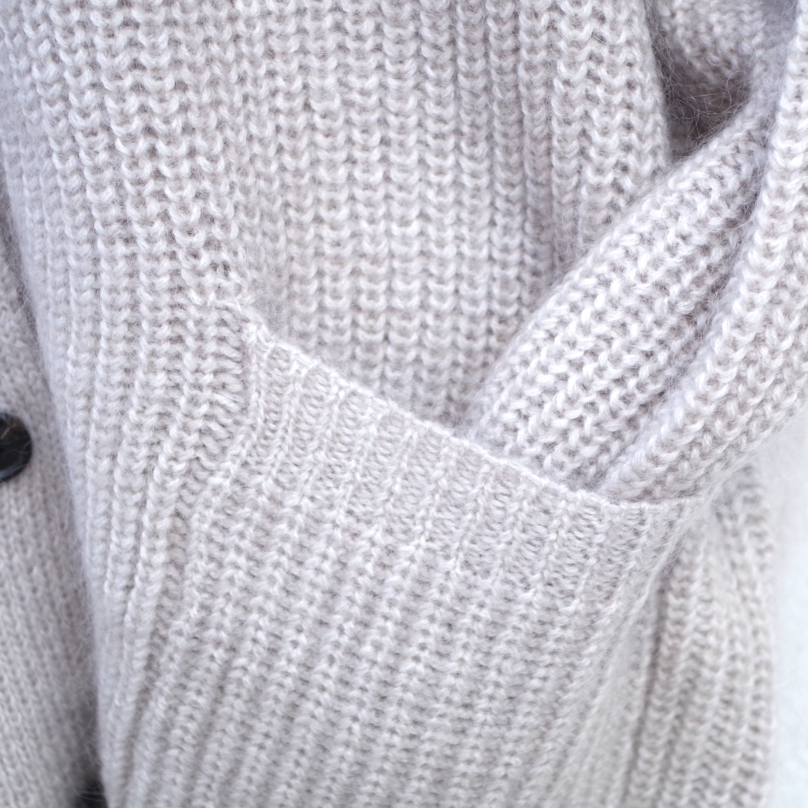 毛足の長いキッドモヘア混ウールを使用したカーディガン。