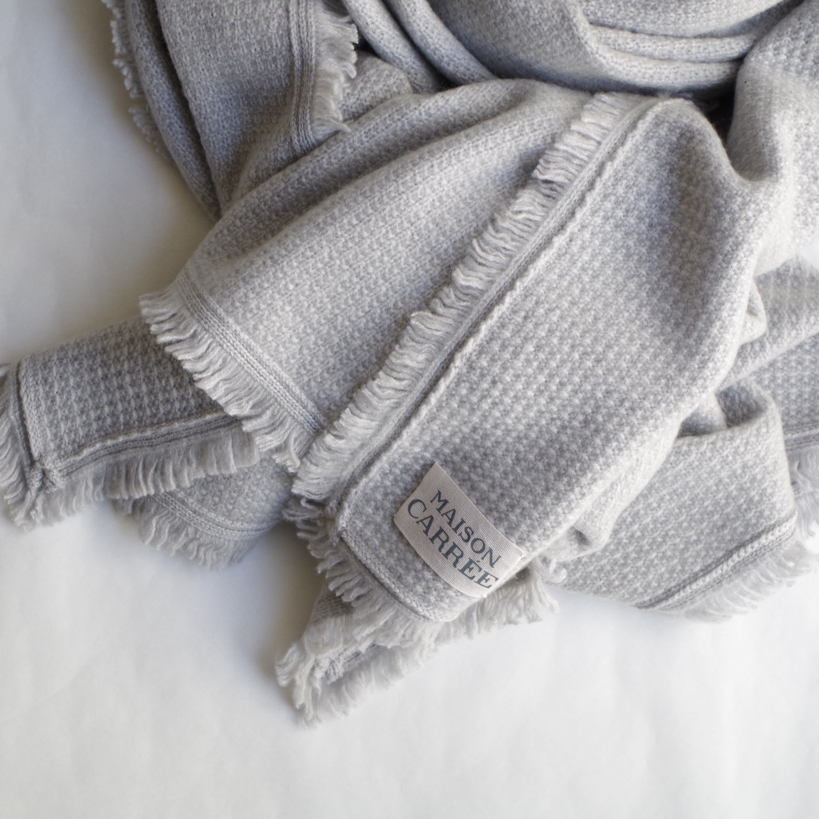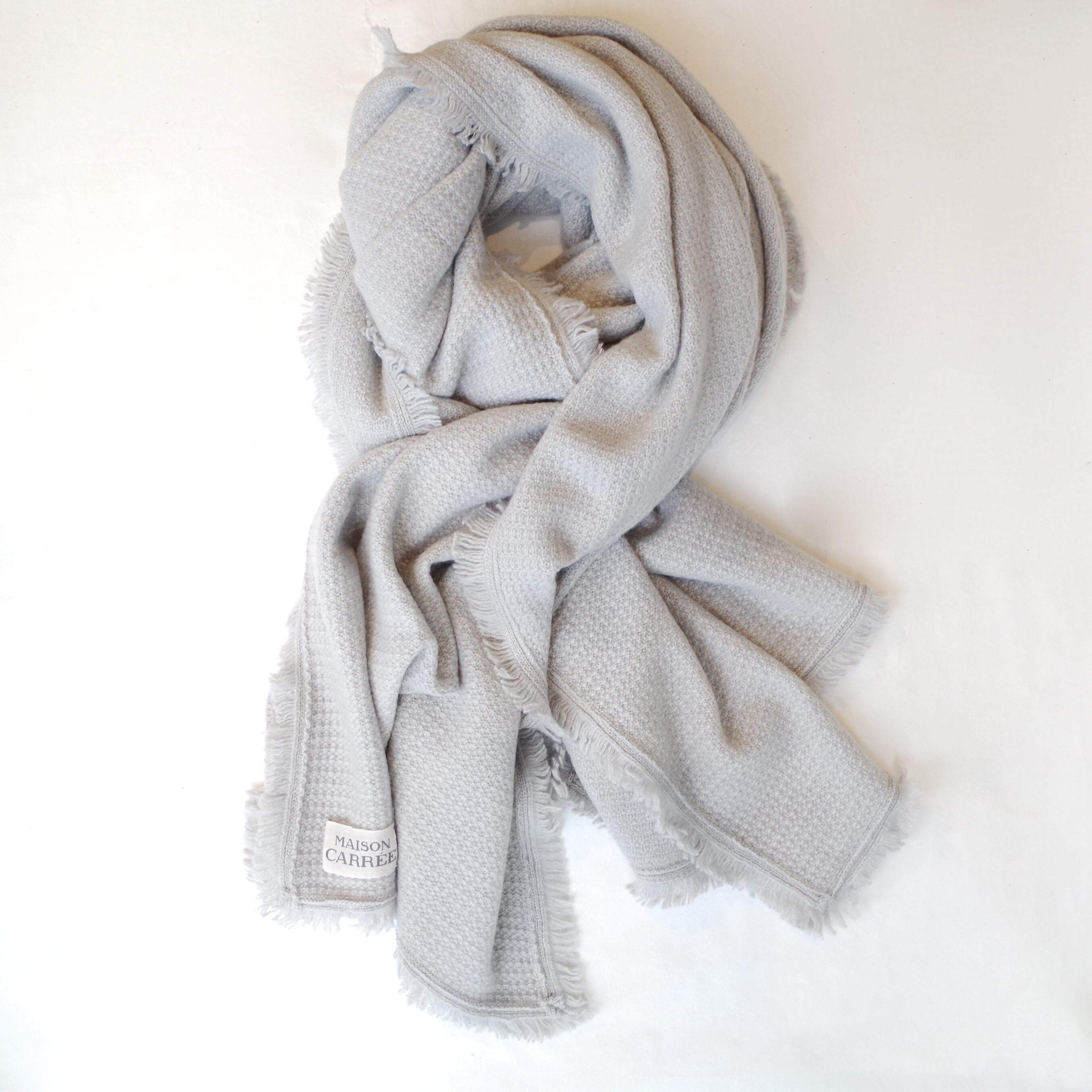 MAISON CARRÉE CASHMERE Fringe STOLE "LIGHT GRAY"