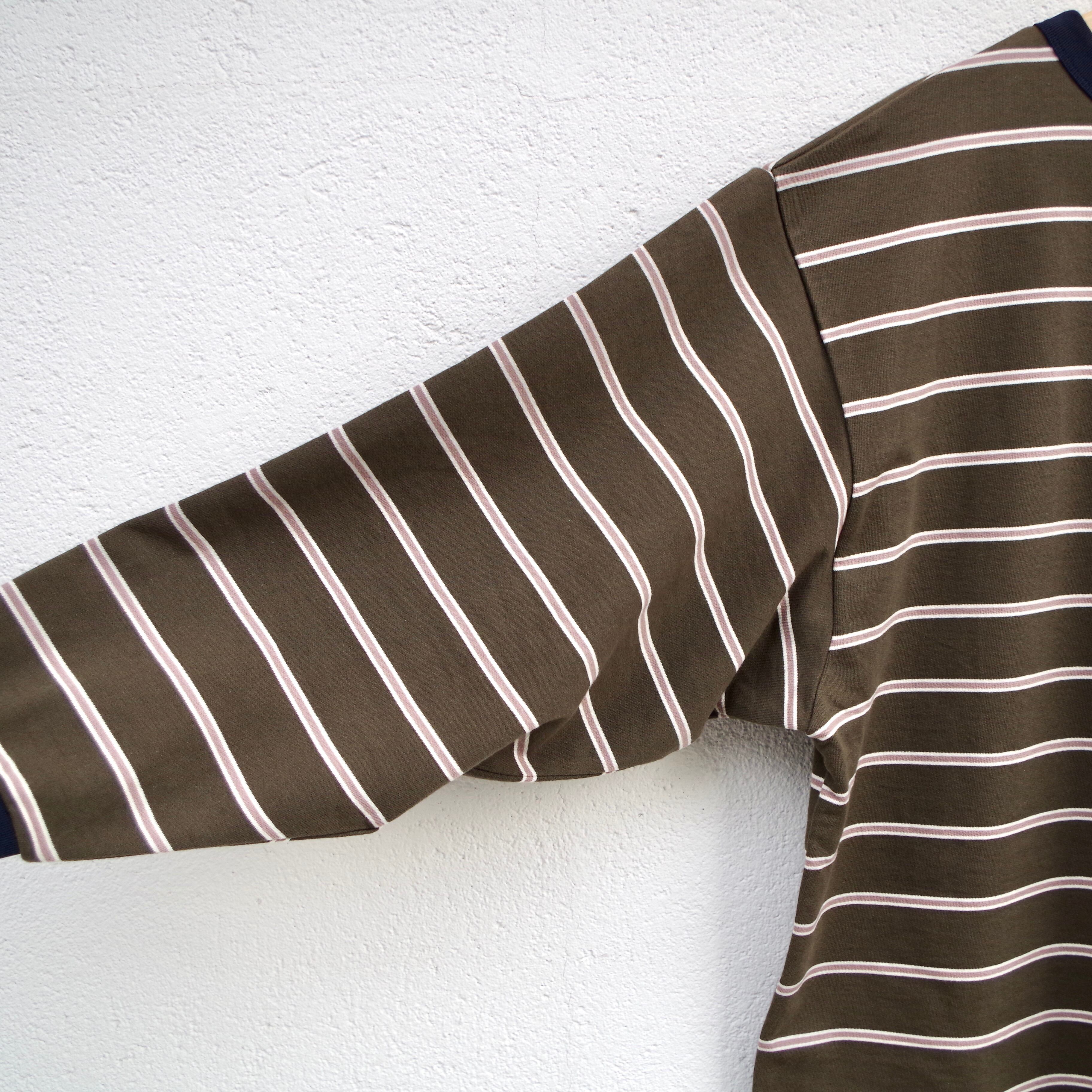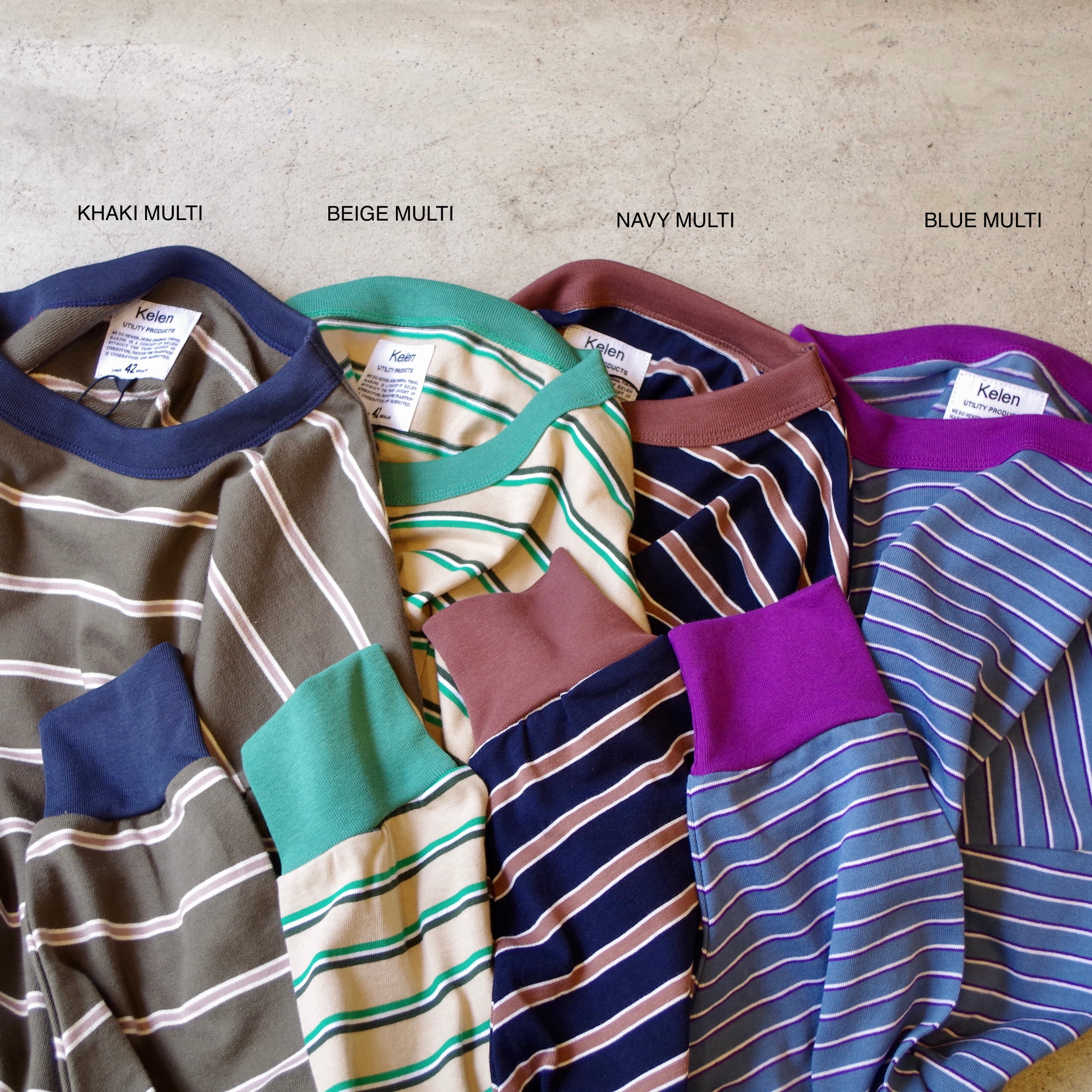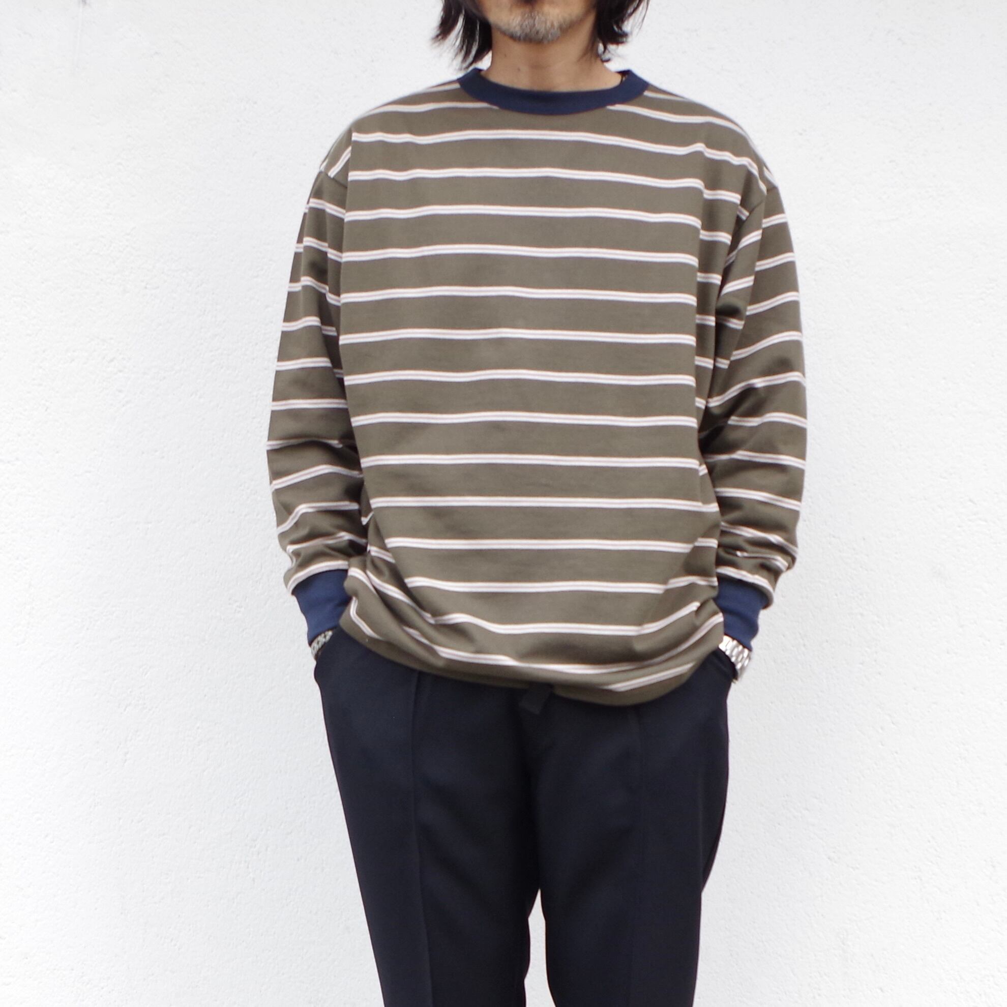 適度な厚みのマルチピッチボーダーとリブの配色が印象的なL/Sカットソー。