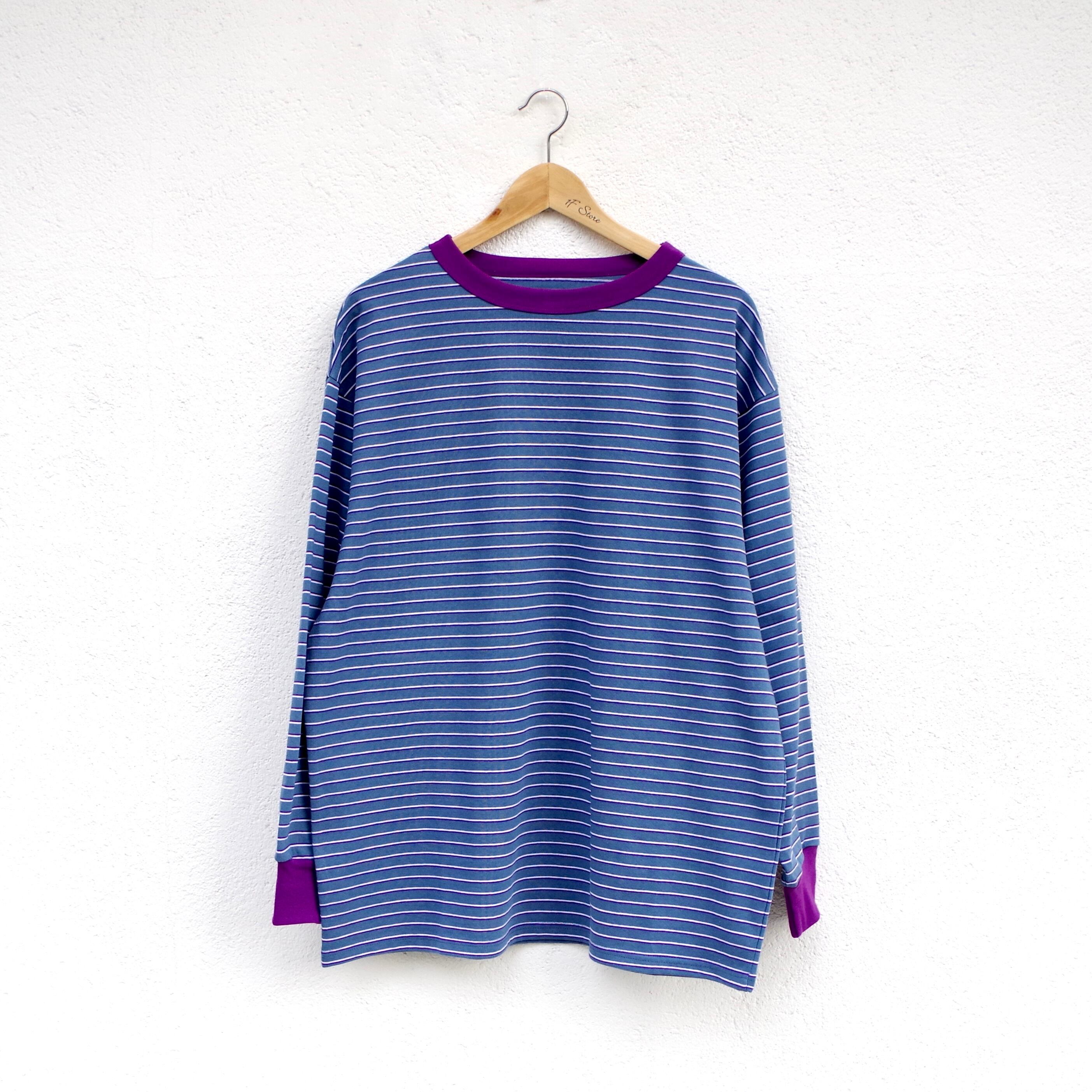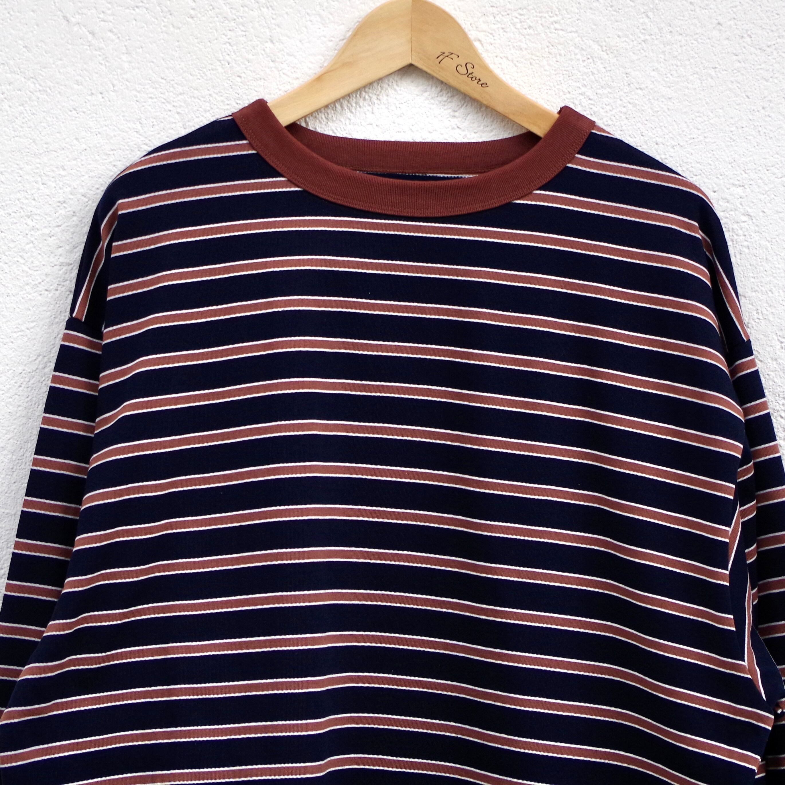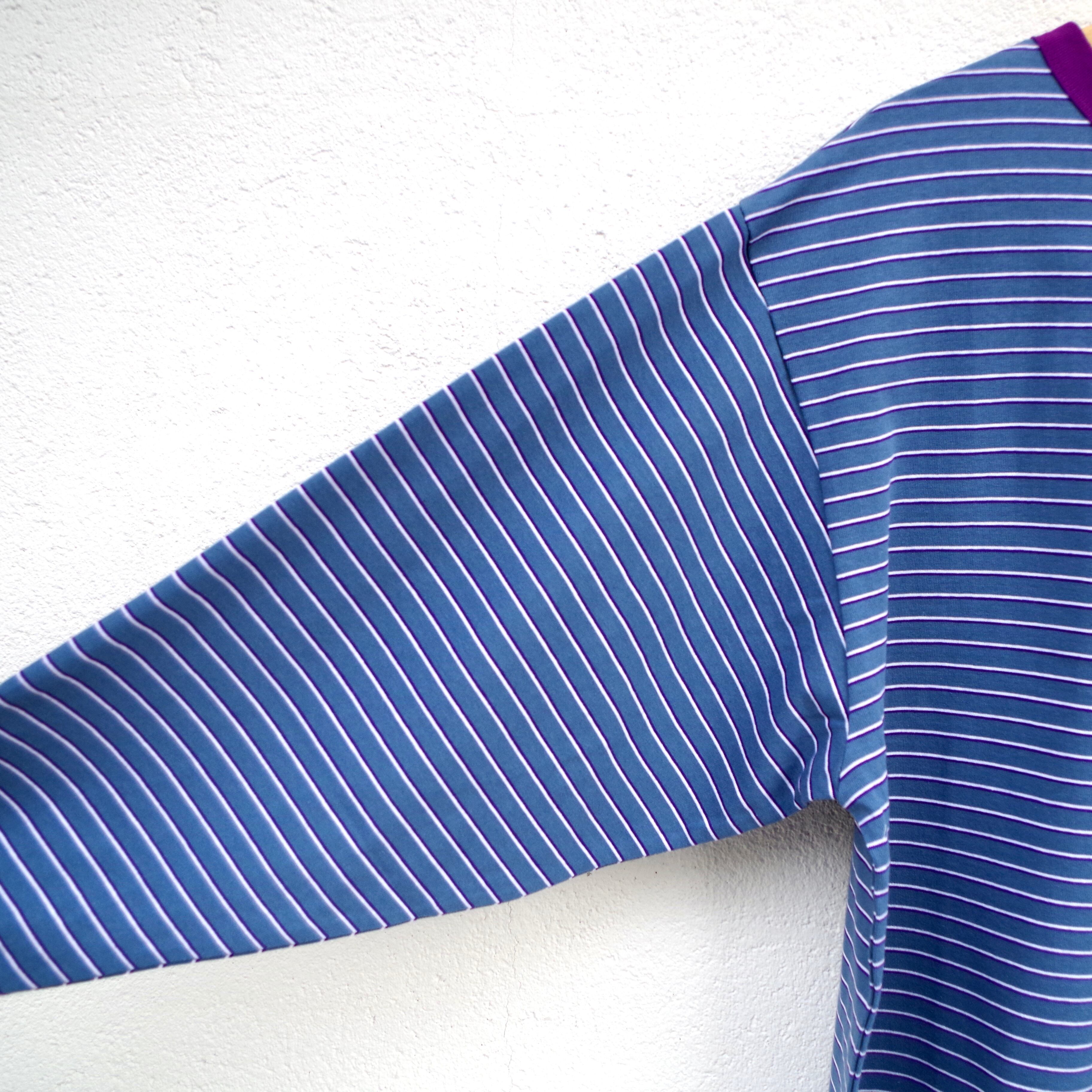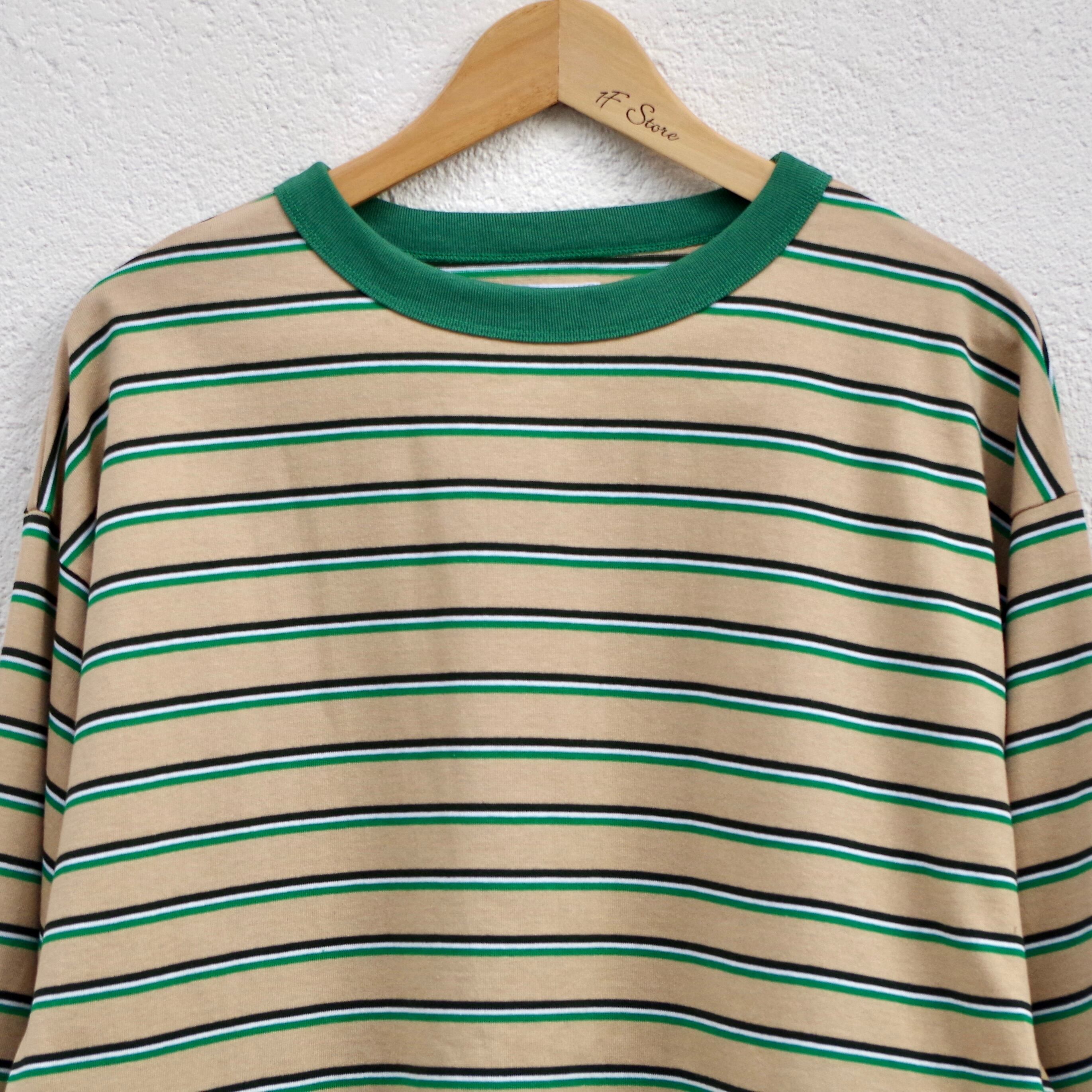 適度な厚みのマルチピッチボーダーとリブの配色が印象的なL/Sカットソー。