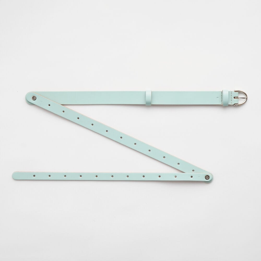ベルトを折りたたむと3枚のレザーの断面が階段状に重なりコンパクトに収納することができます。