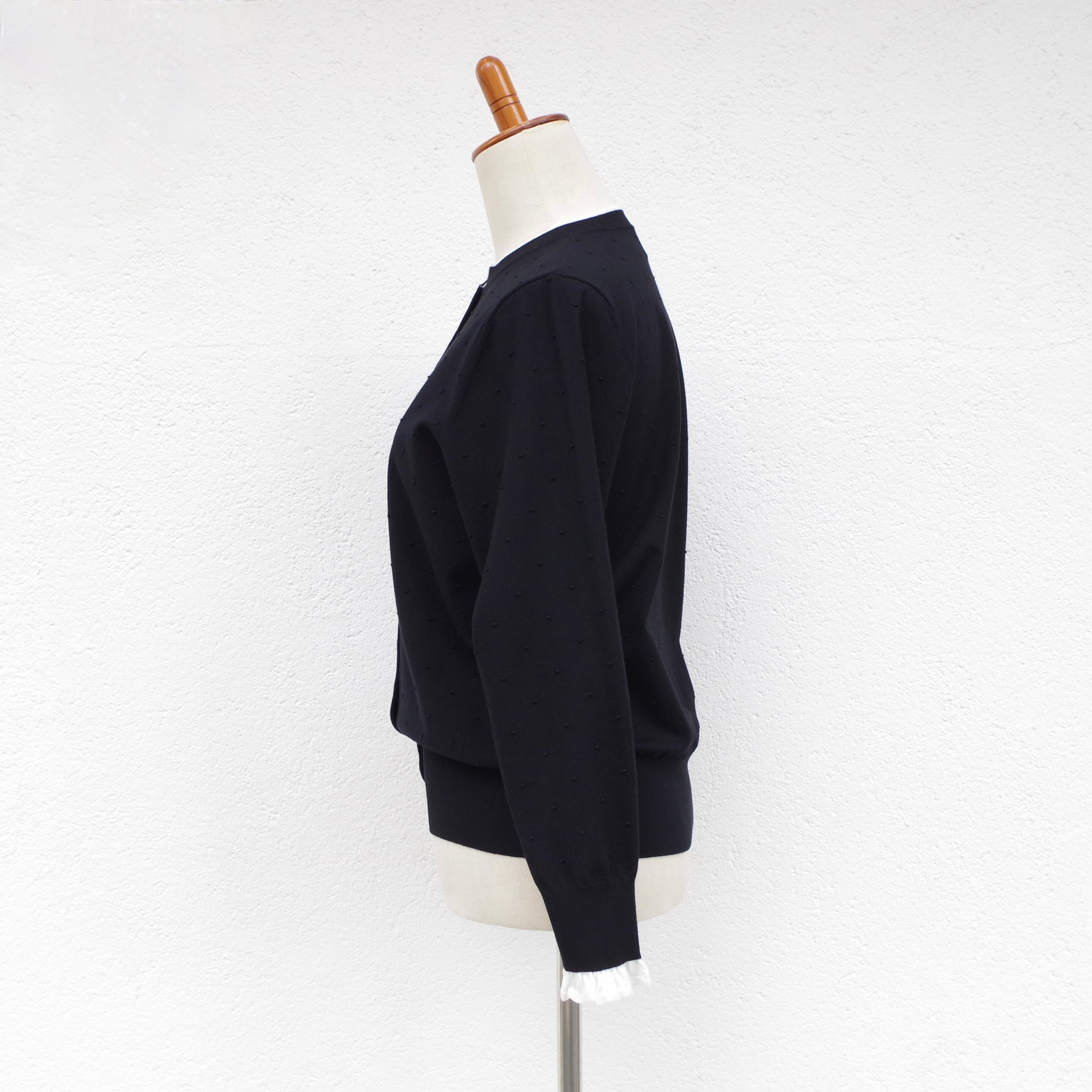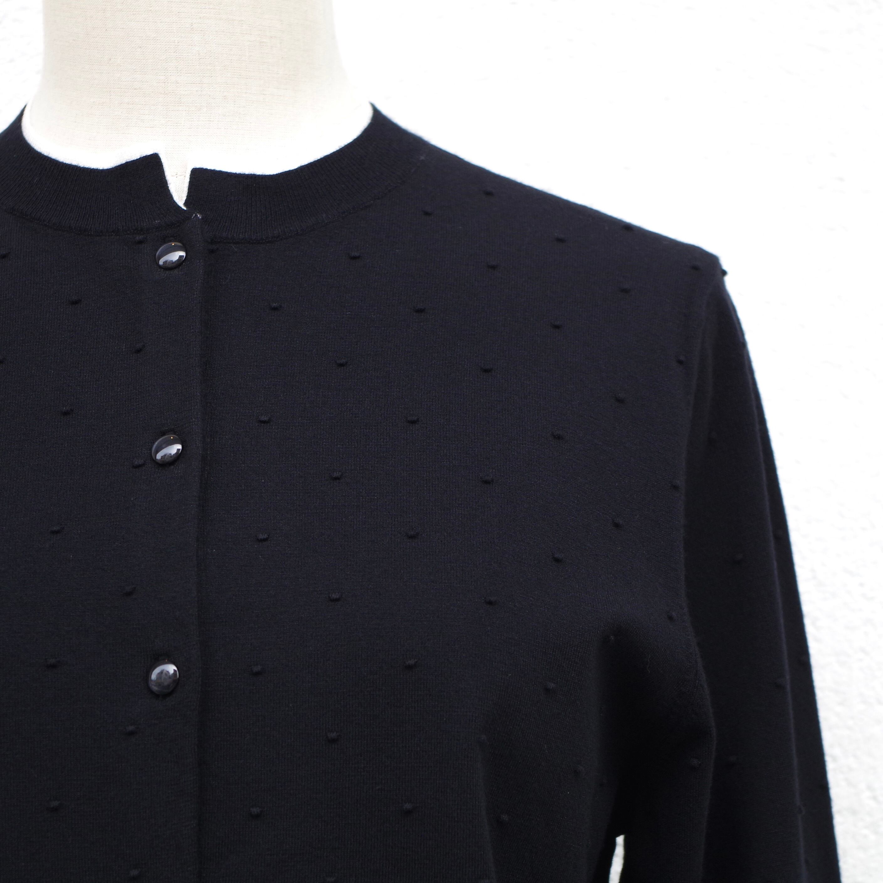 ニットの表面に立体的なドットが浮き出ているペールジュートのカーディガン。