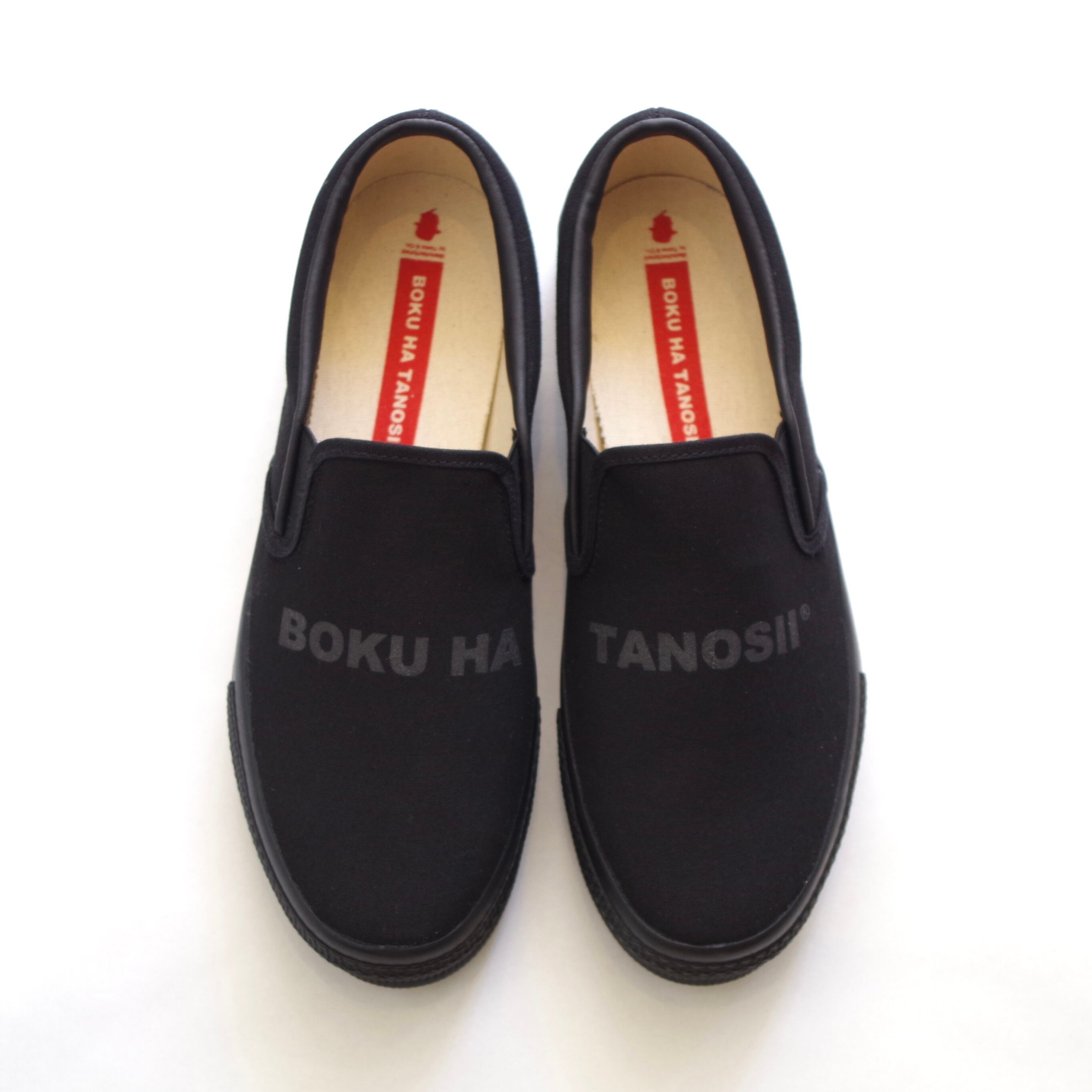 BLACKキャンバスに『BOKU HA TANOSII』のBLACKプリントで『JITU HA TANOSII』