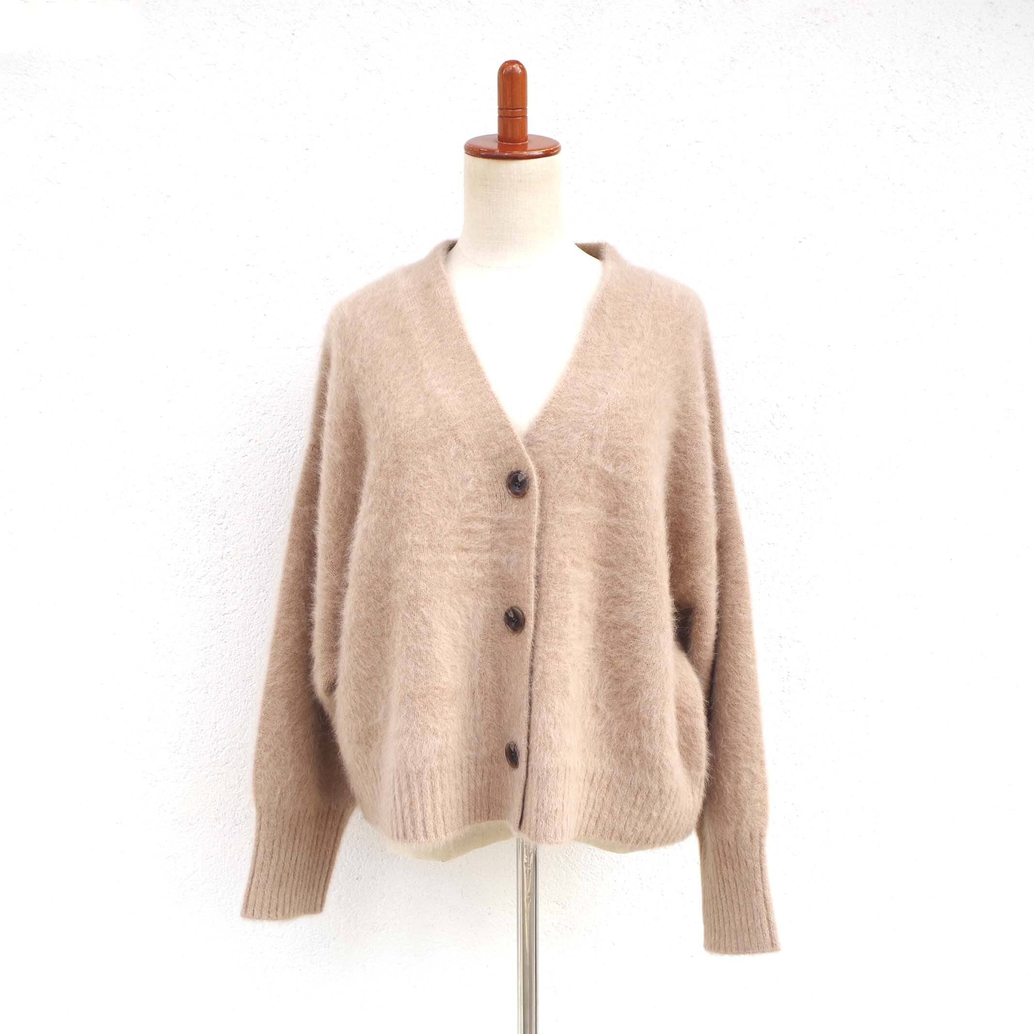 素材を引き立てるシンプルなデザインは、Vカーディガンをややワイドシルエットで、ストレスフリーな着心地をプラス。