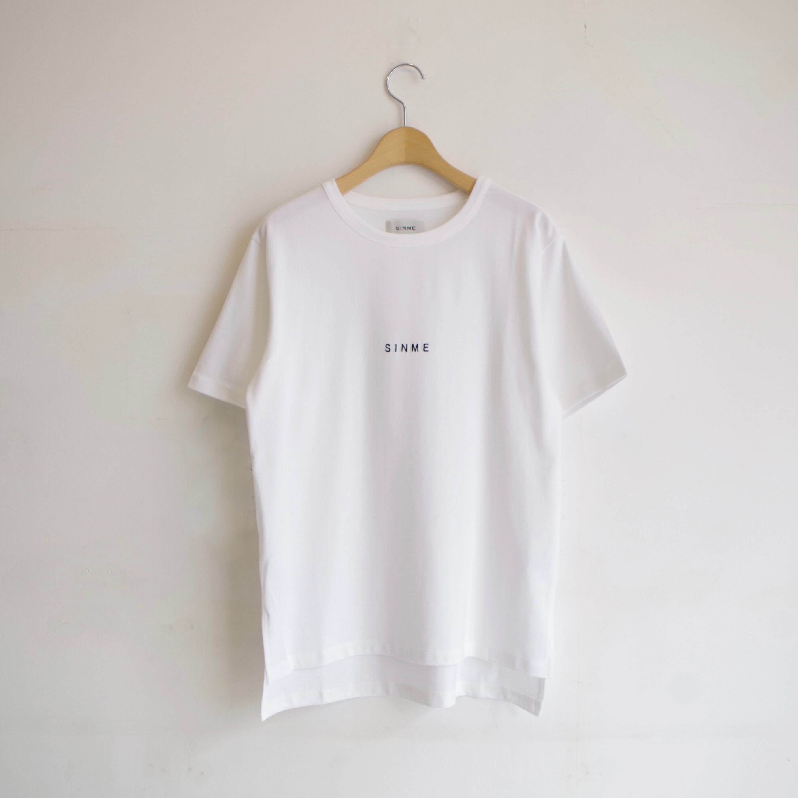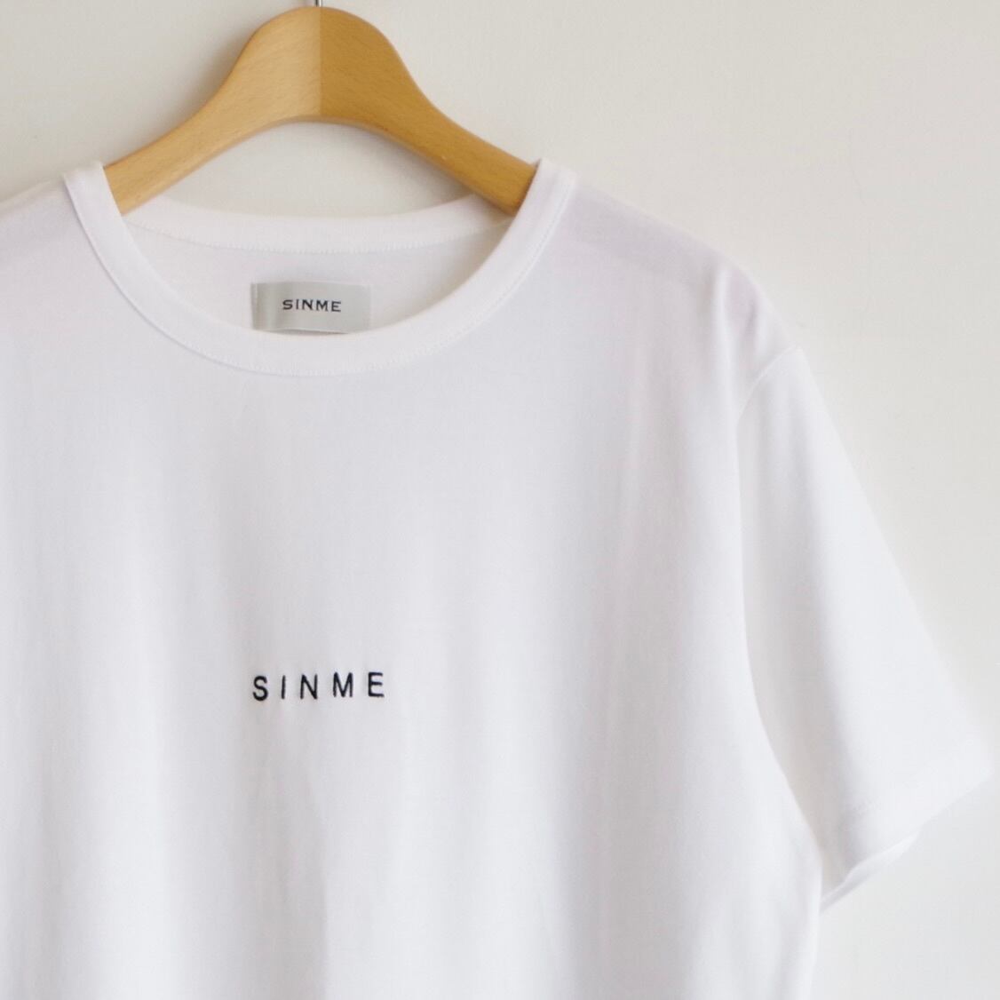 センターにSINMEのロゴが刺繍が施されたTシャツ。