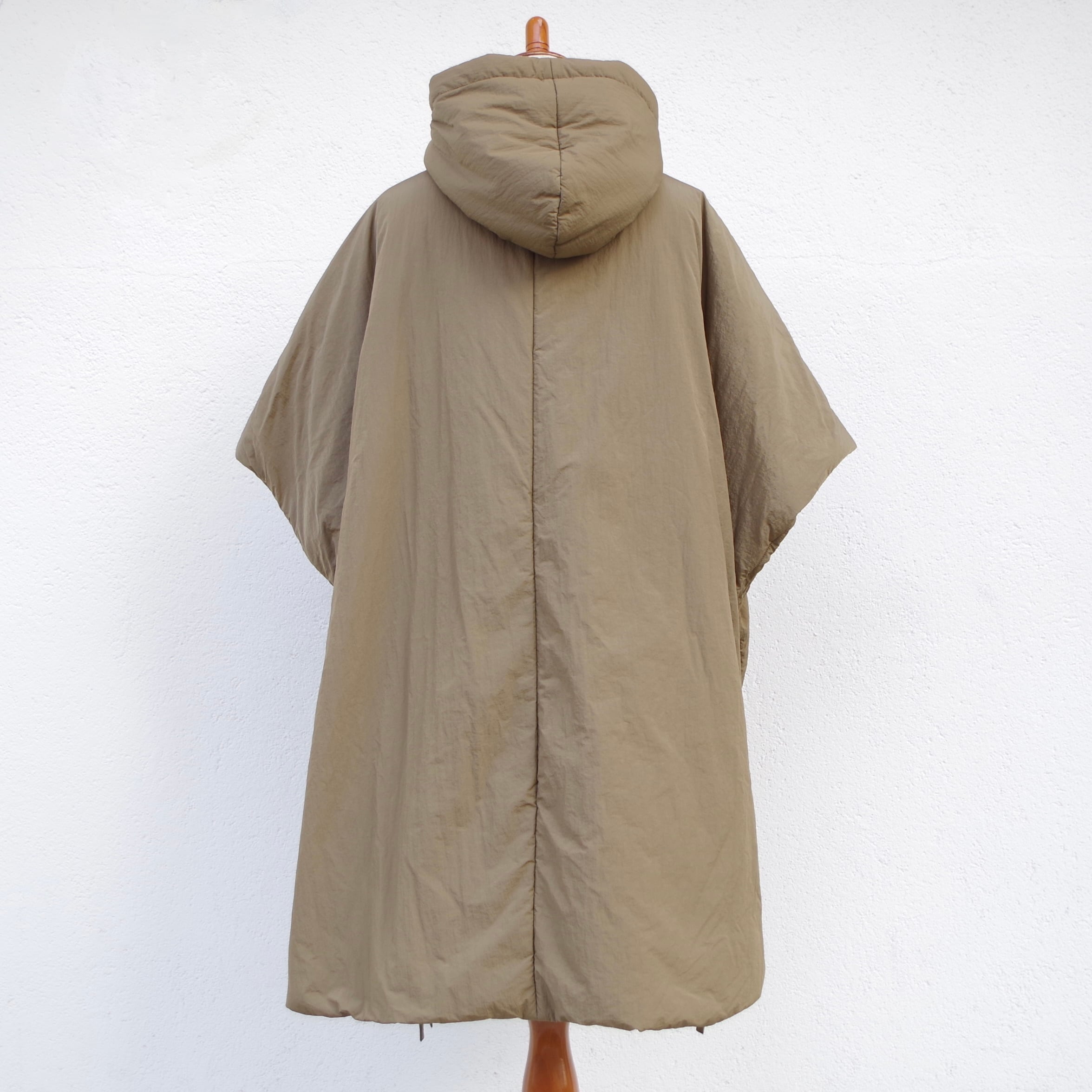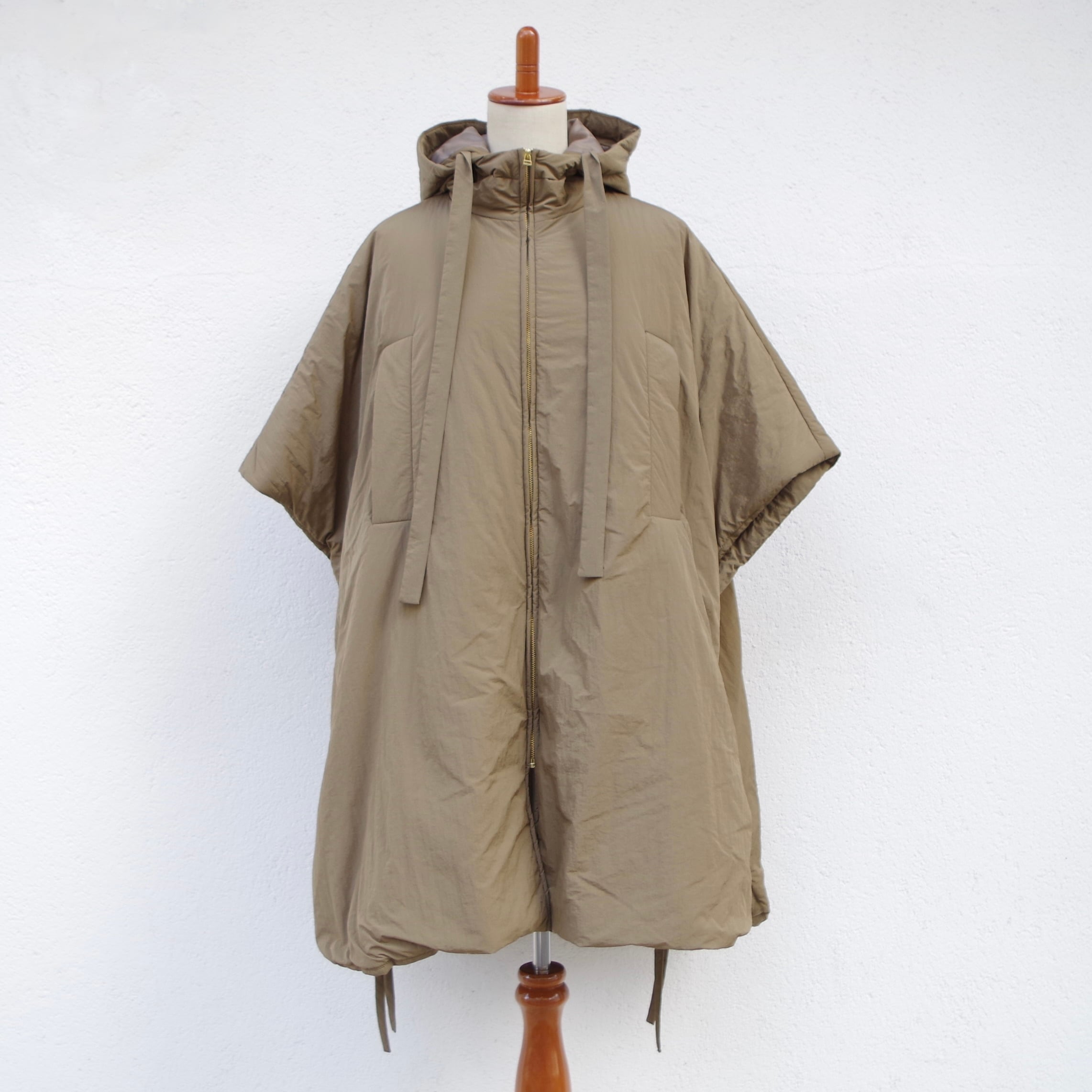 レイヤードスタイルを楽しめるポンチョ型のアウター。