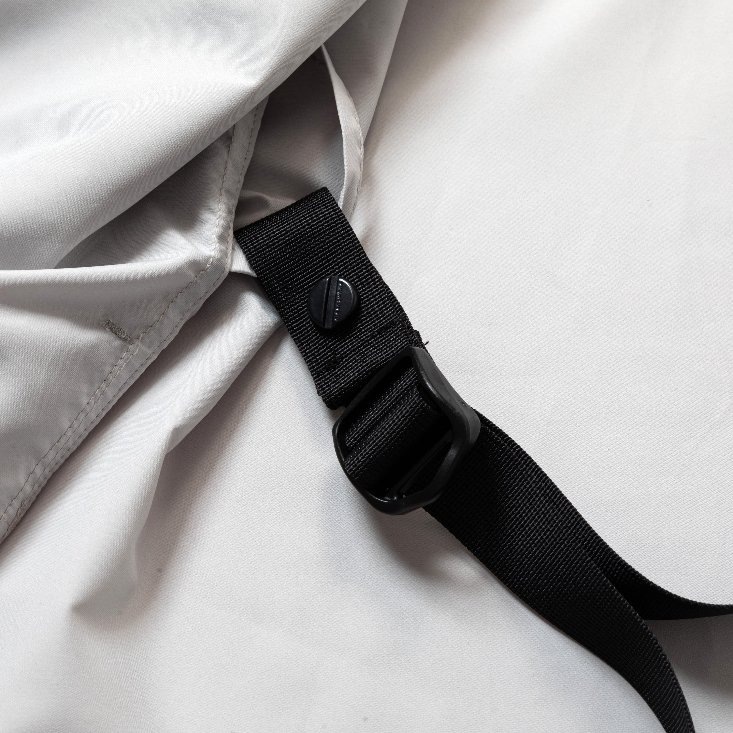 シャツとしてもコーチジャケットの様なライトアウターとしても着用でき、内部にはスリングベルトも完備。