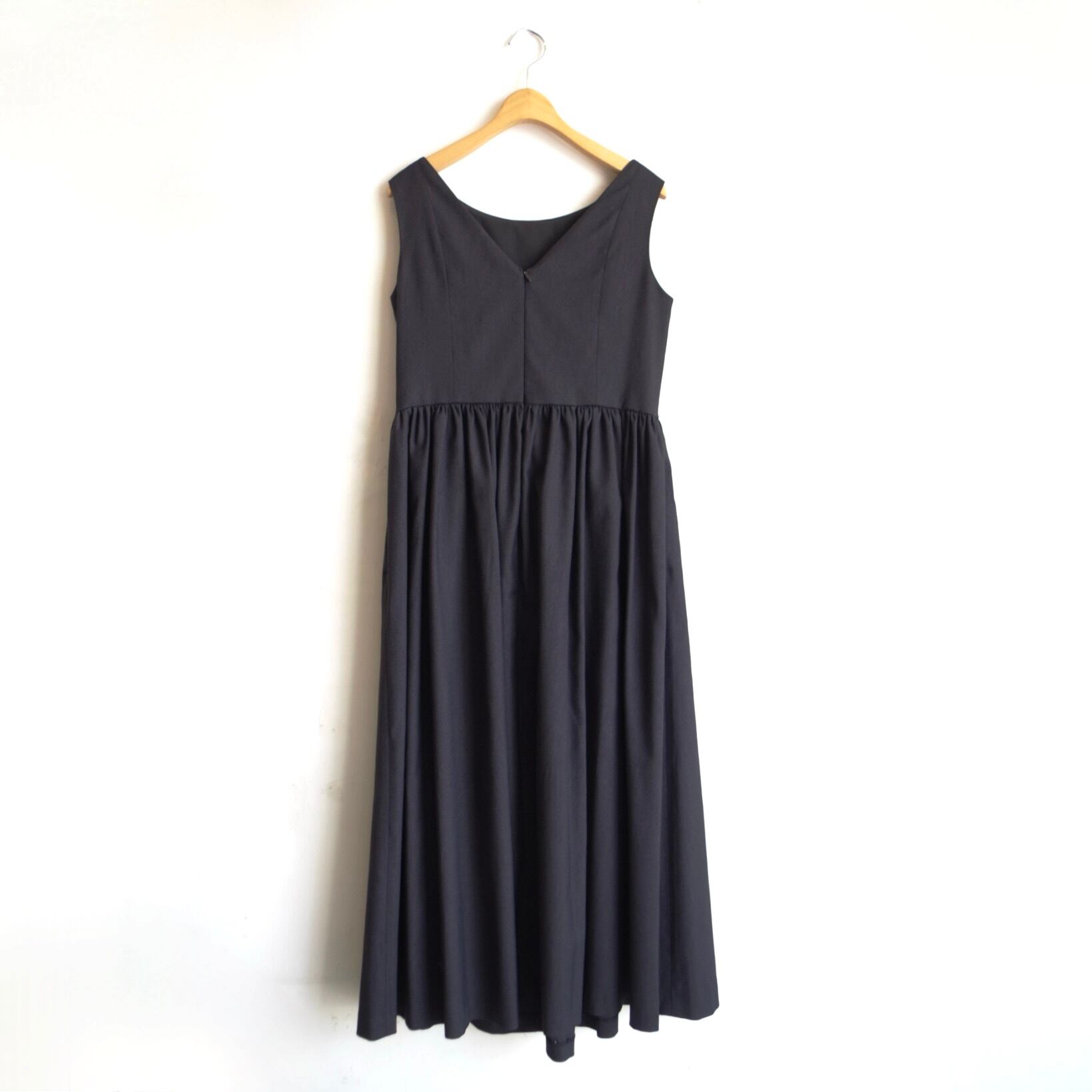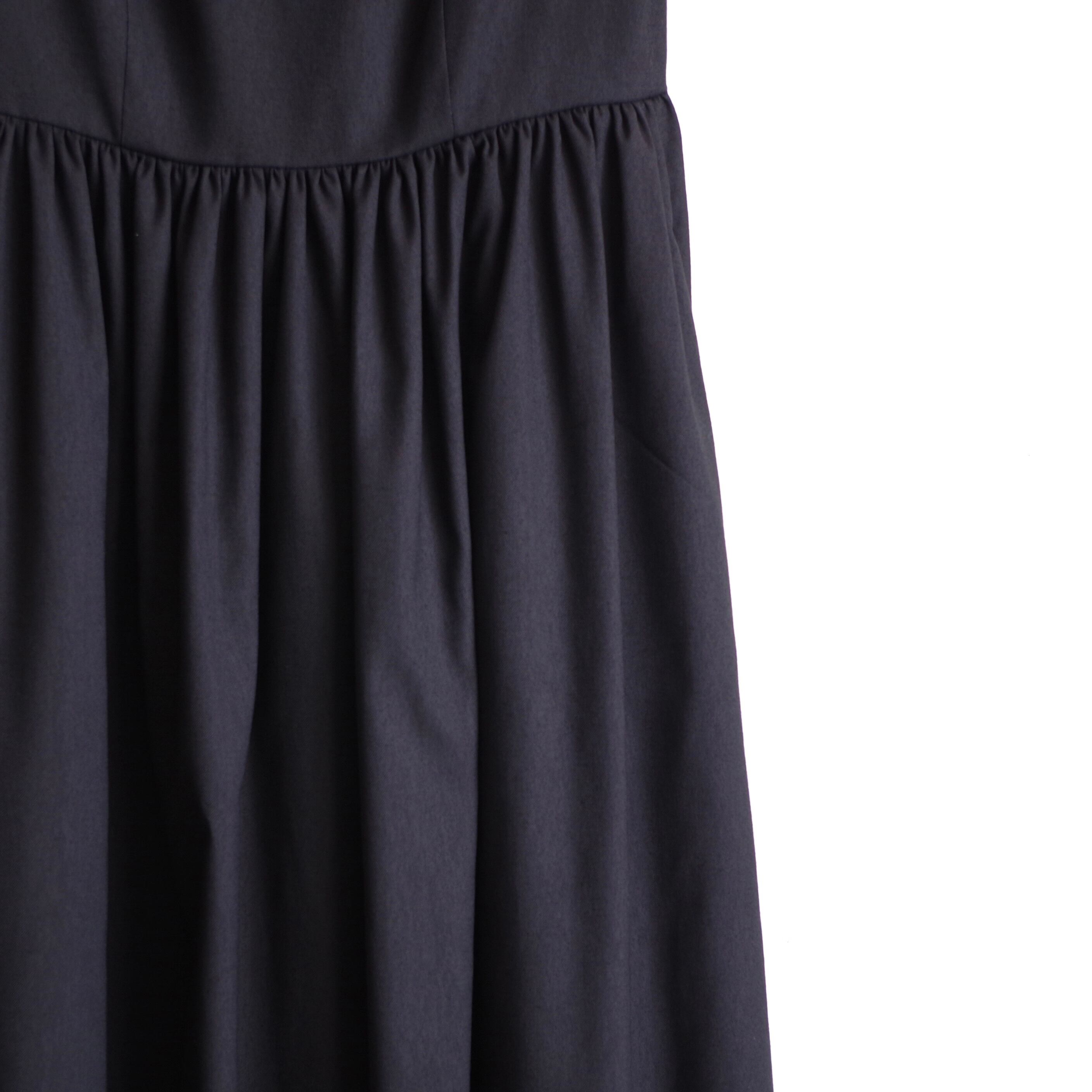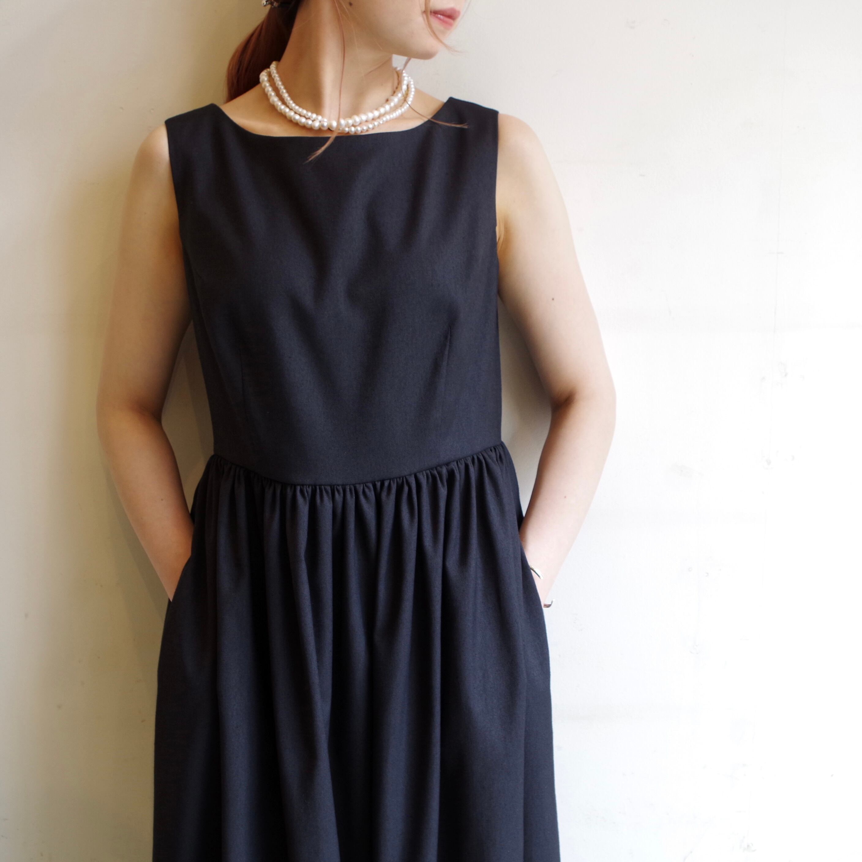 ウエストの切り替え位置からギャザーを入れたノースリーブワンピースです。