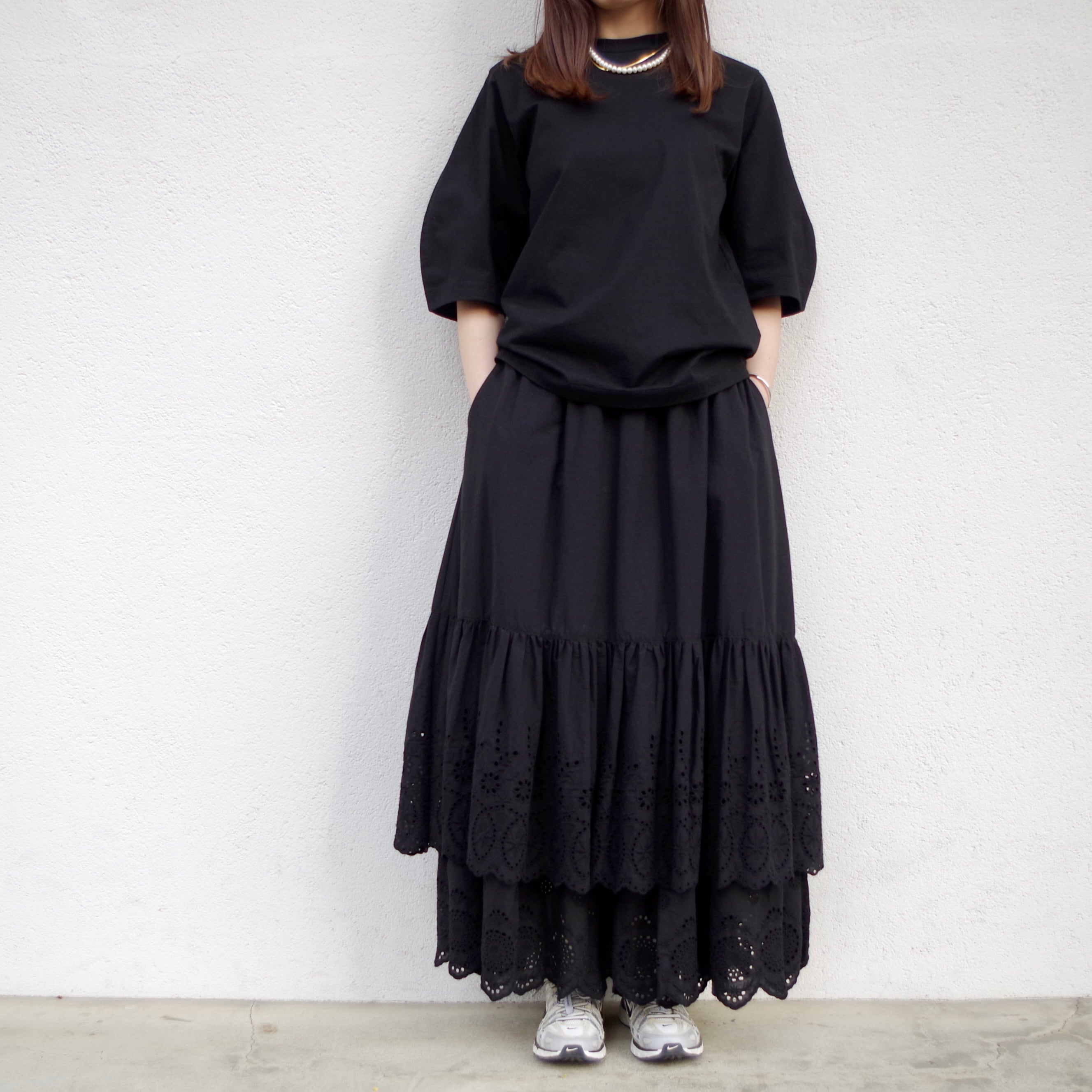 腰回りはスッキリ、膝下にかけて2週類のレース使い。