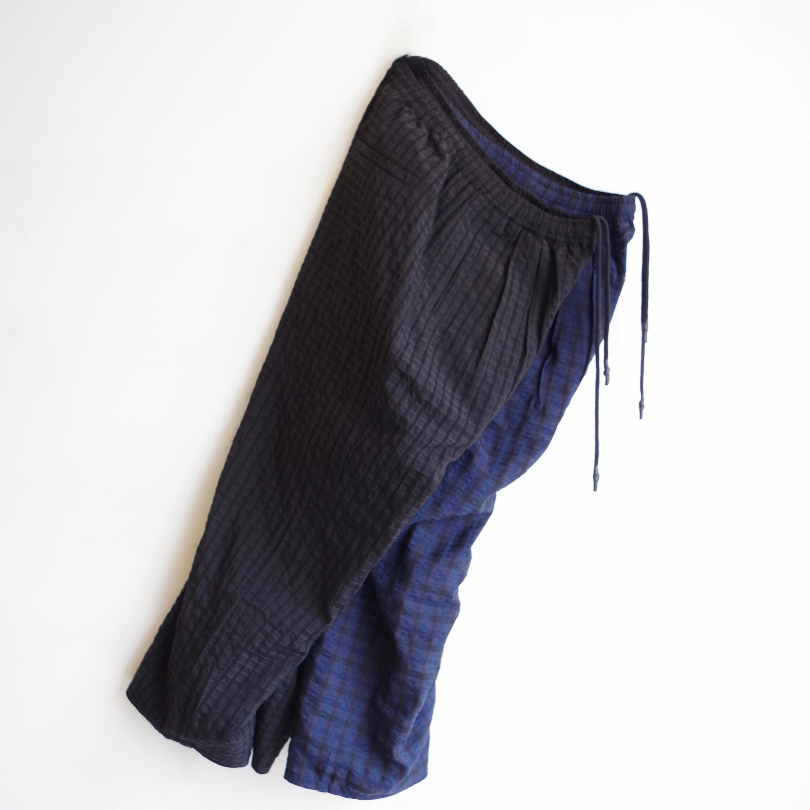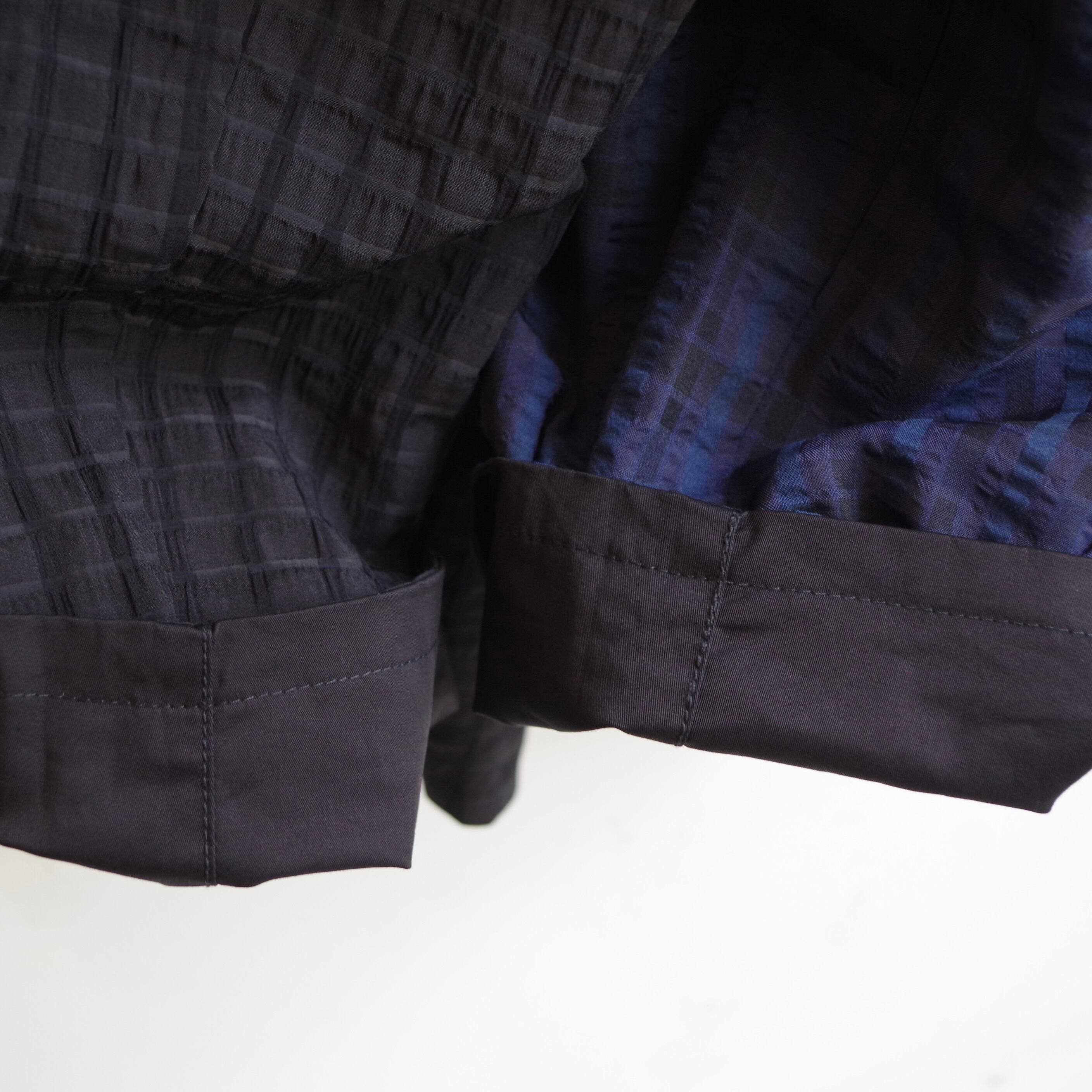 チェック柄と無地 (各色共通の黒色 )のリバーシブルで着用が可能なアイテ ム。
