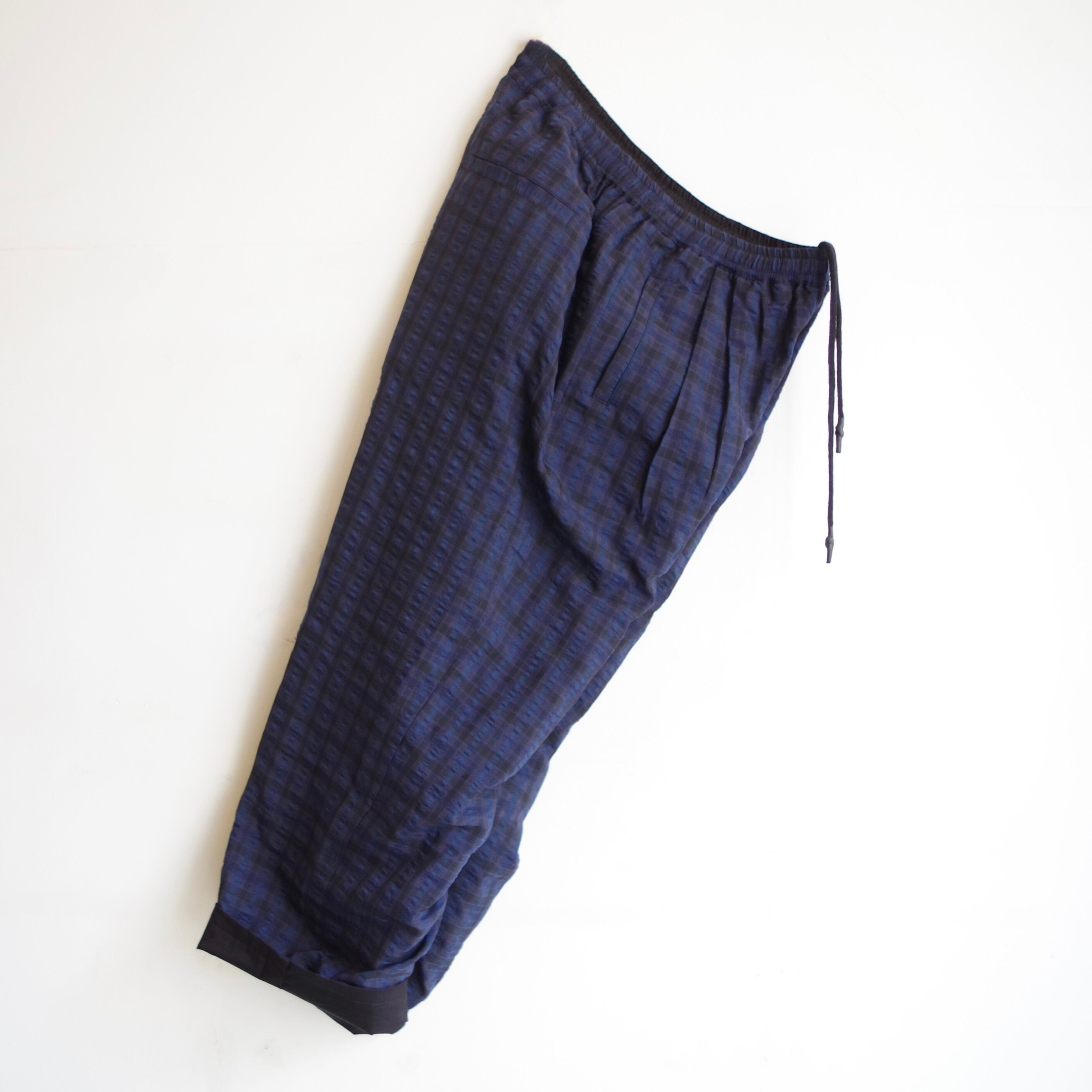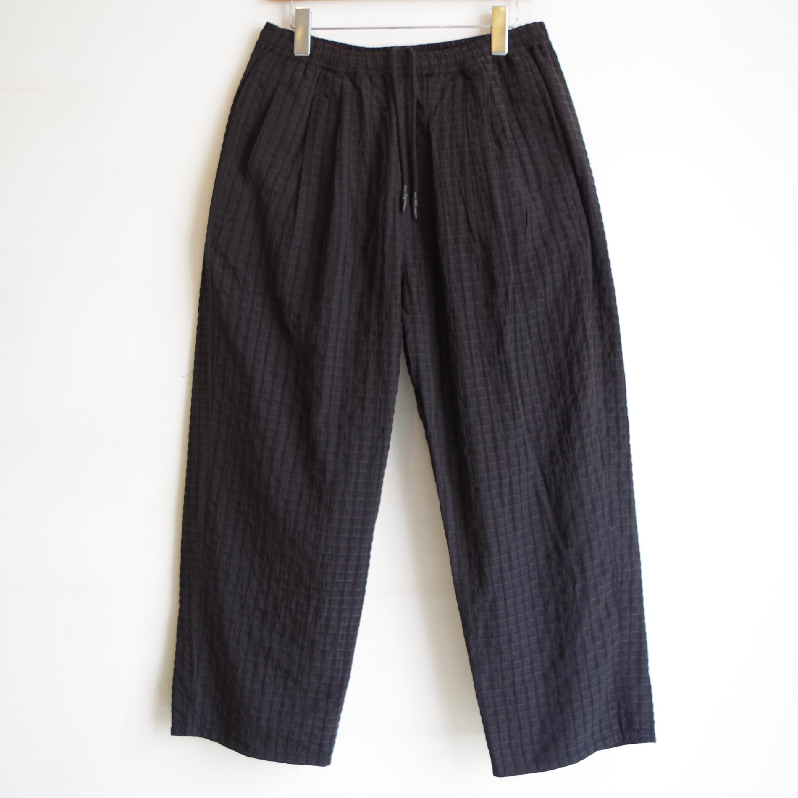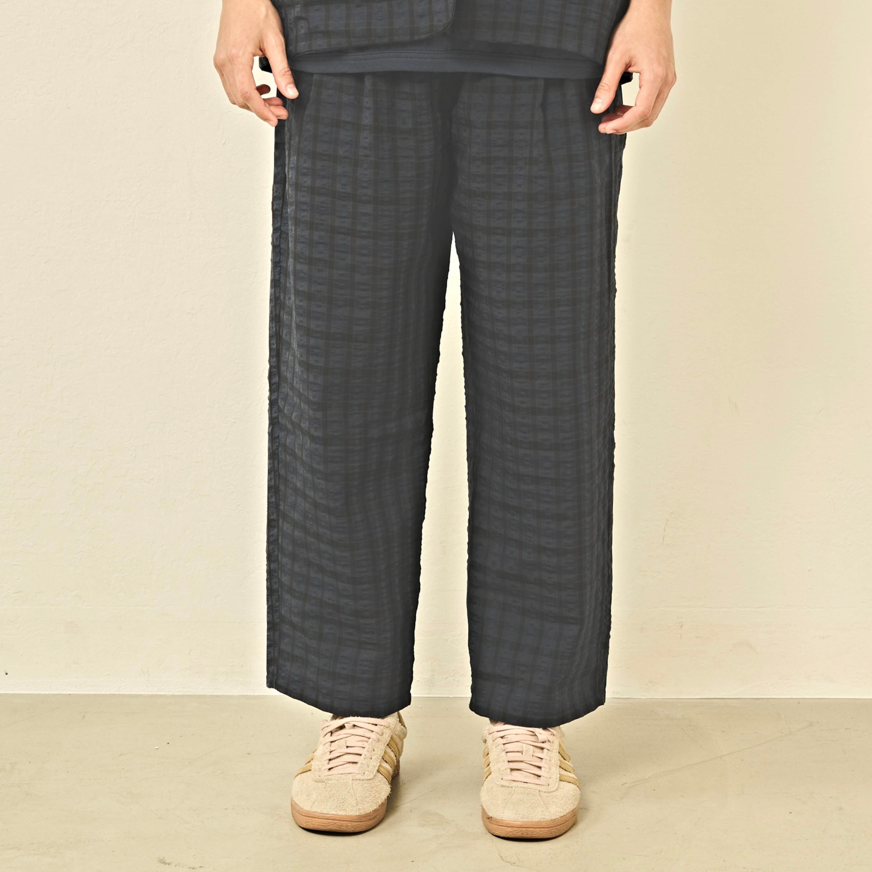 微光沢のあるチェックの素材感でスタイリングの外しにもおすすめです。