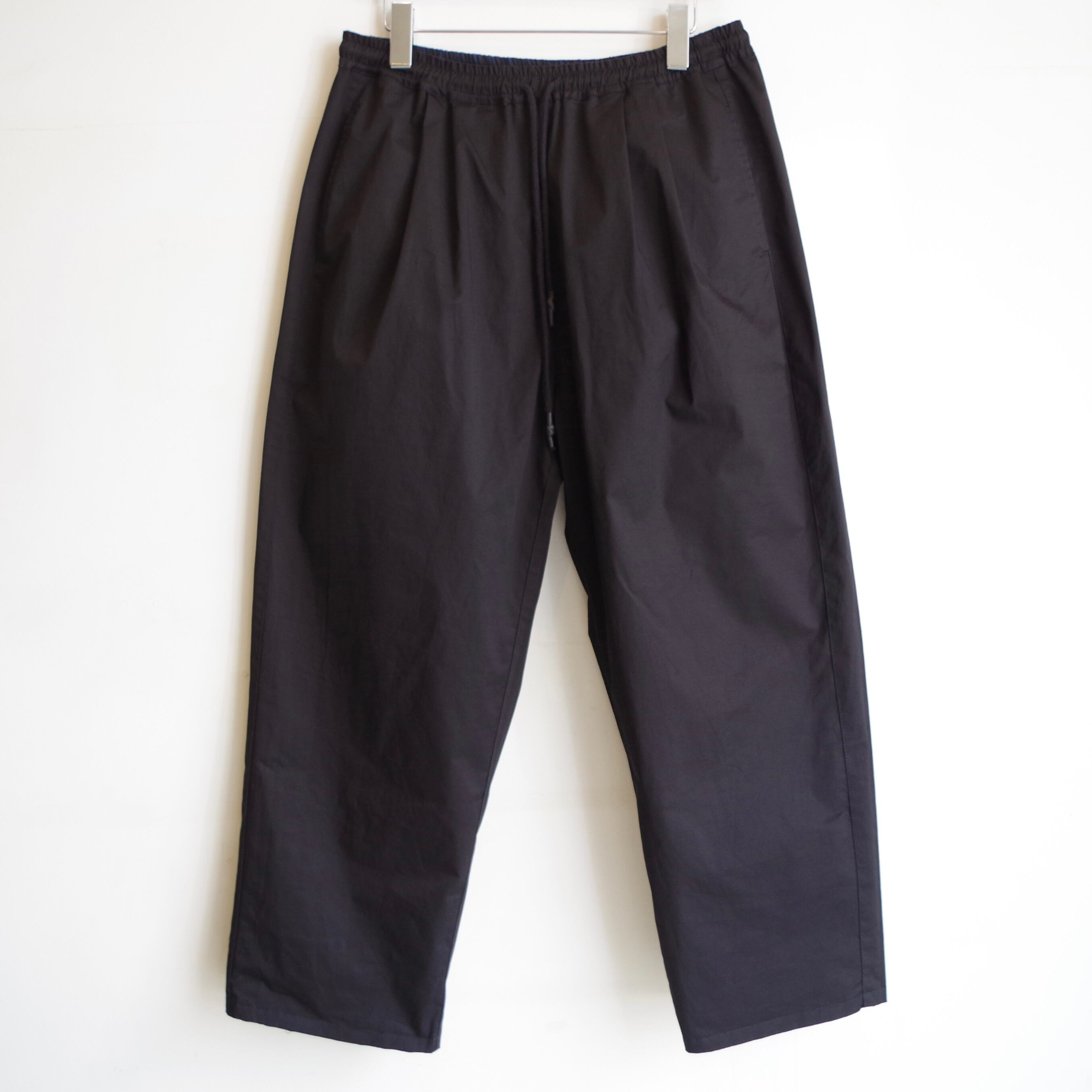 2 タックのイージーな着用が可能なウエストのテーパードトラウザー。