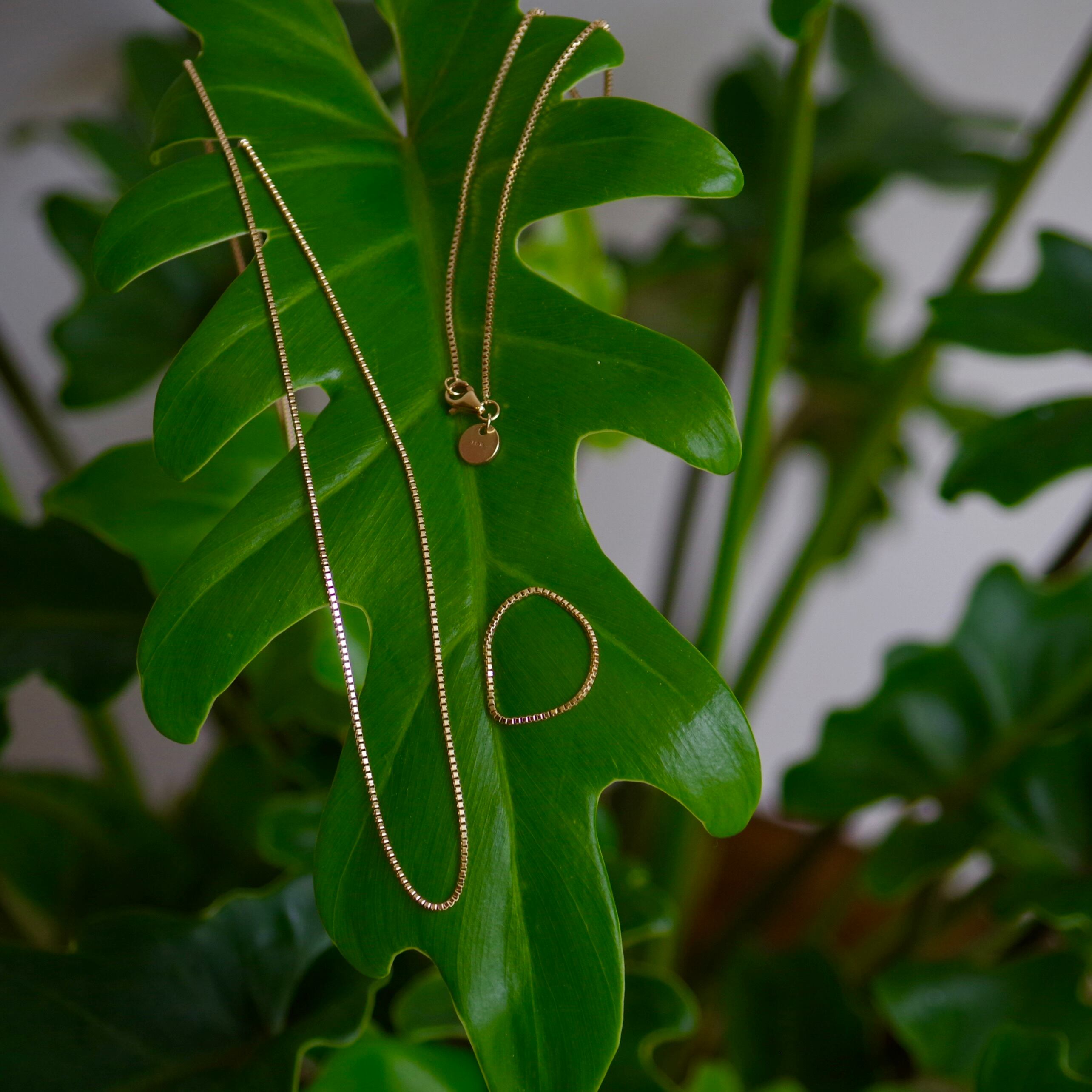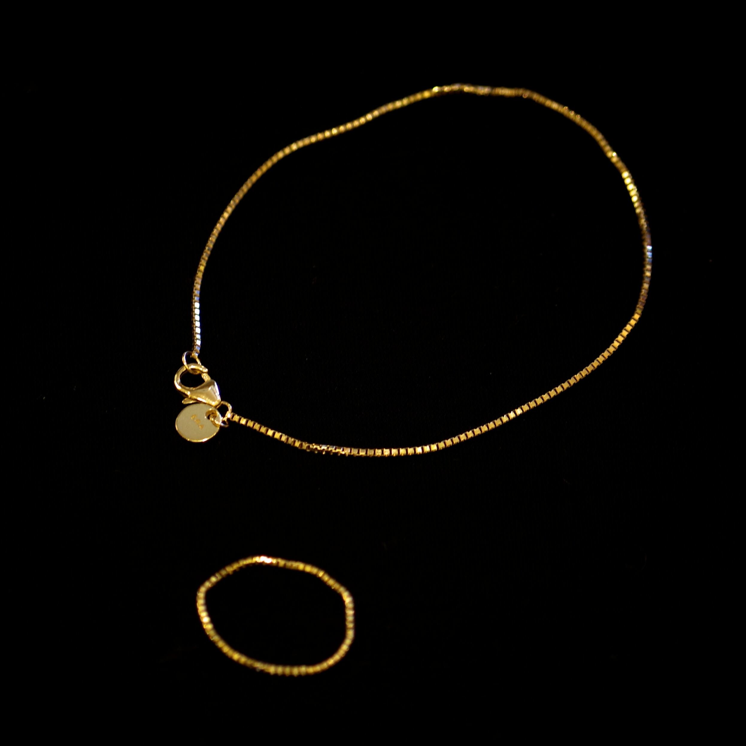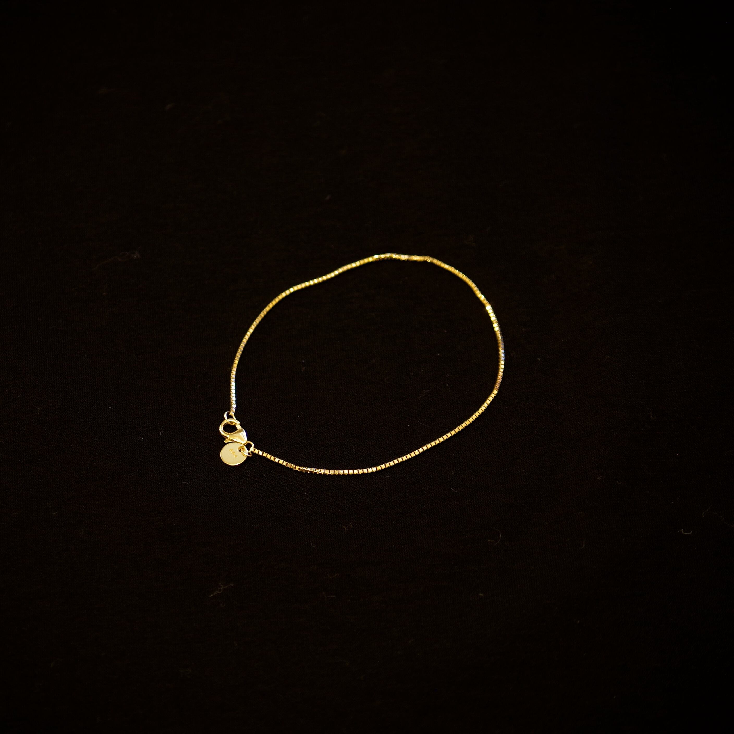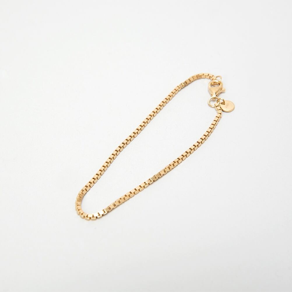 1mm幅の繊細なゴールドチェーンで作ったミニマルなブレスレット。